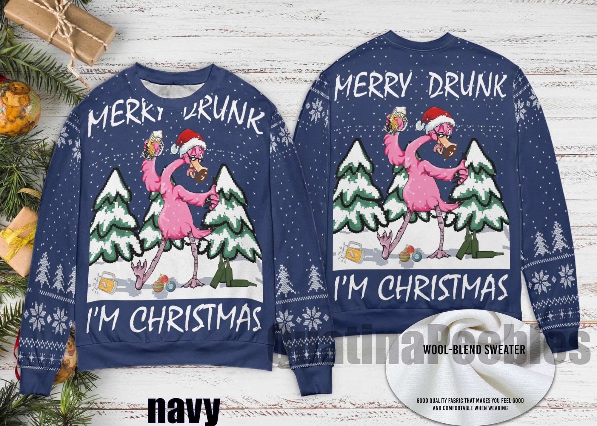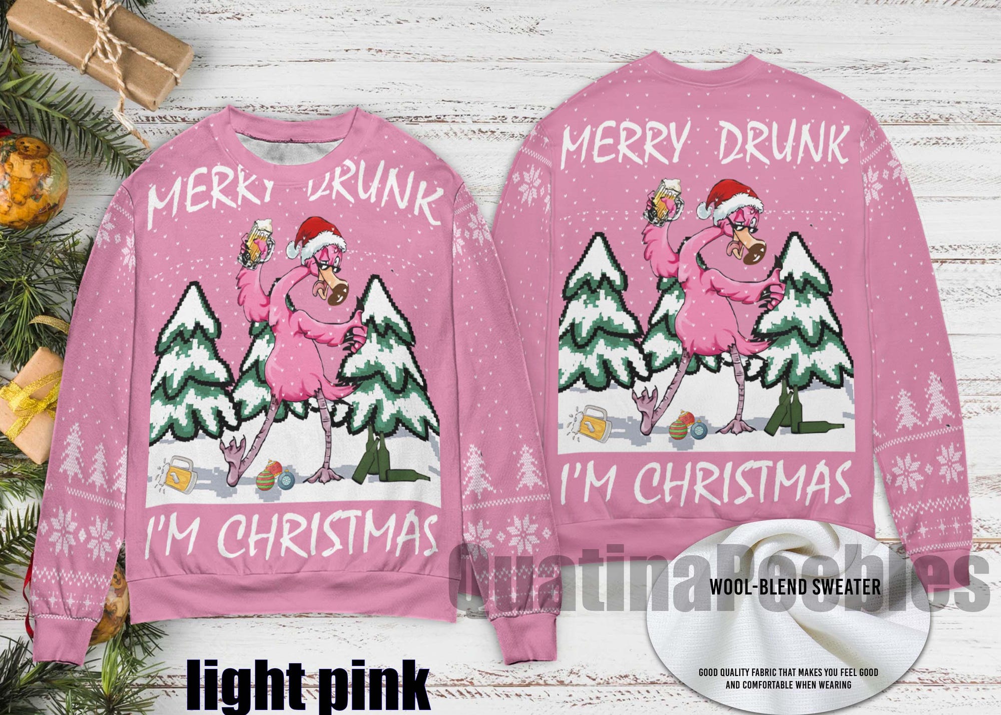 Merry Drunk Flamingo Ugly Christmas Sweater, Merry Drunk Christmas Sweater, Xmas Sweater, Gift For Men Women, Ugly Christmas Sweater