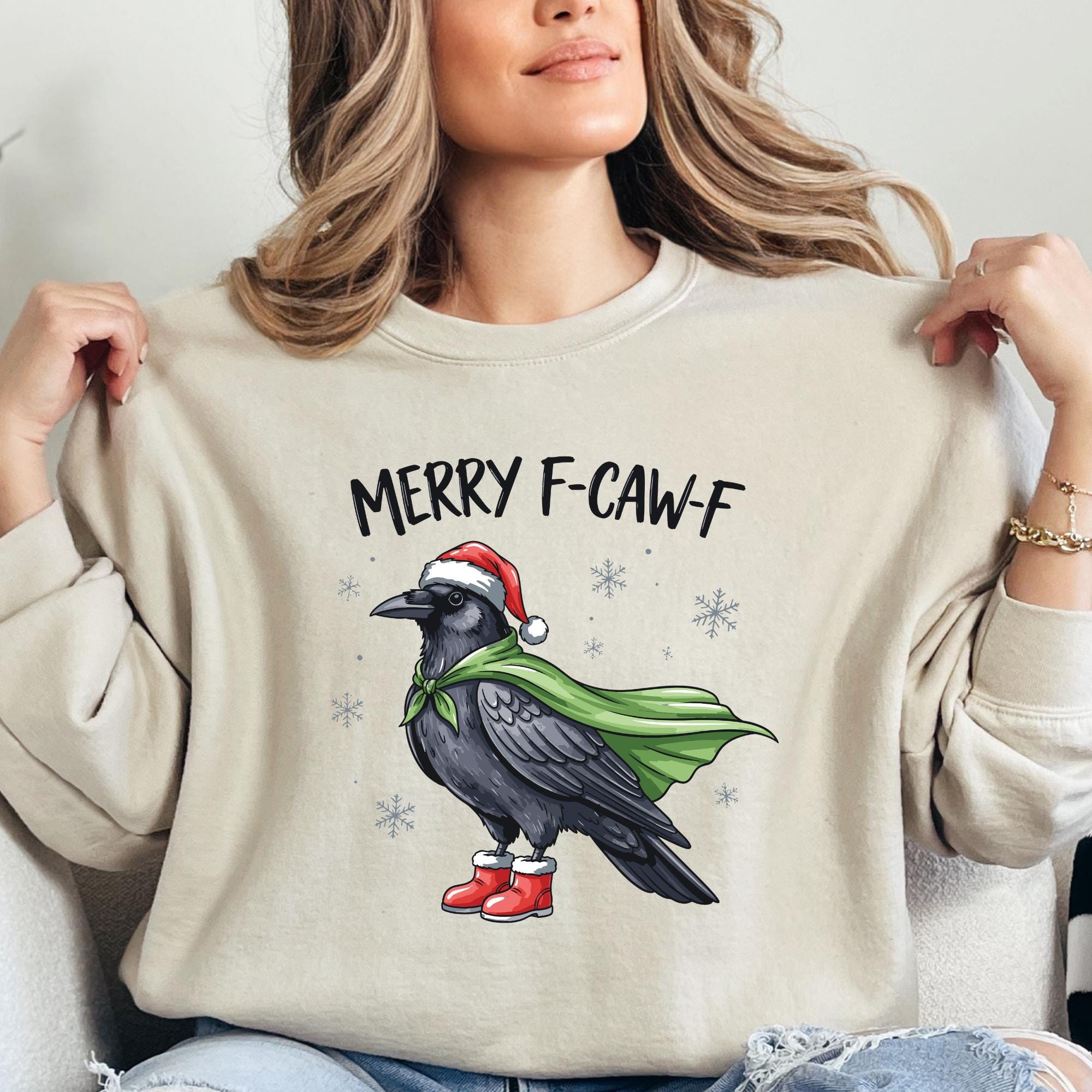 I’ll be happy to help you with any custom requests or missing options. ????✨Merry F-Caw-F Raven Shirt, Funny Christmas Crow Sweatshirt, Sarcastic Holiday Graphic Tee, Santa Hat Bird Xmas Pajama Top