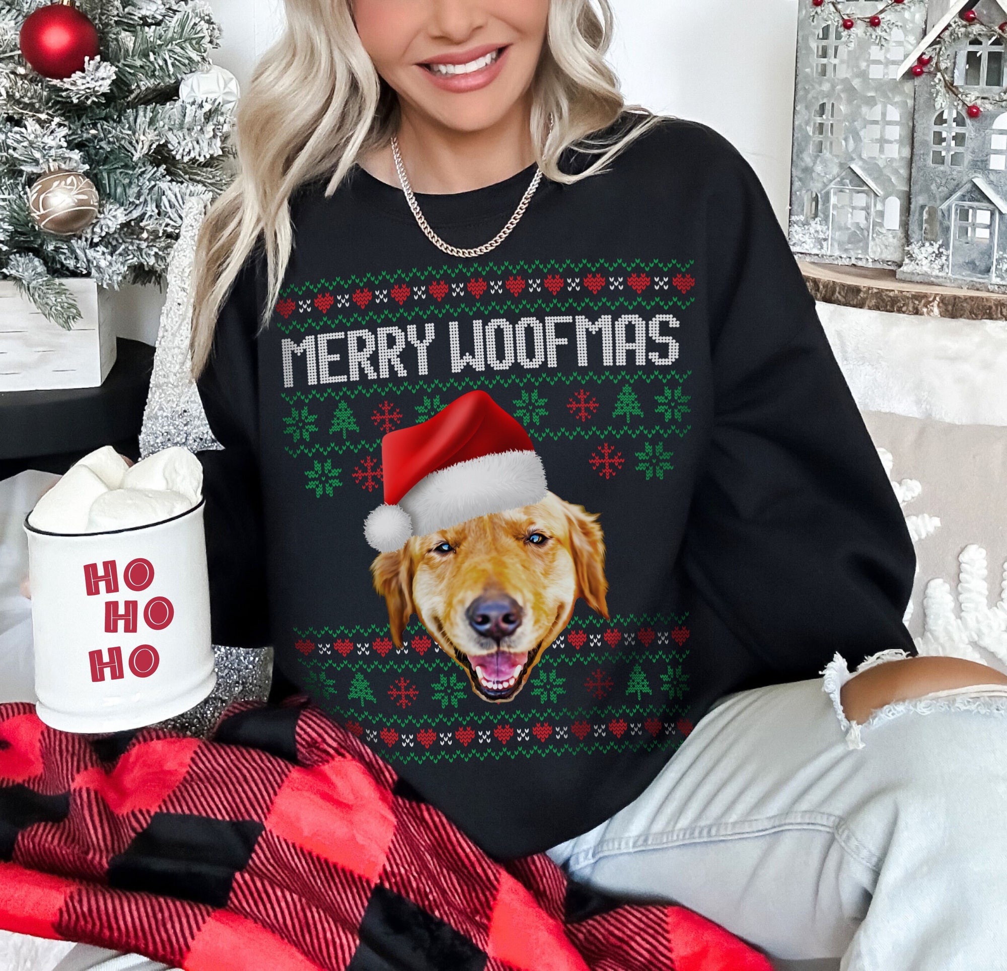 Merry Woofmas Personalized Ugly Christmas Sweater with Dog Photo, Custom Christmas Gift for Dog Owners, funny ugly christmas sweater 2025