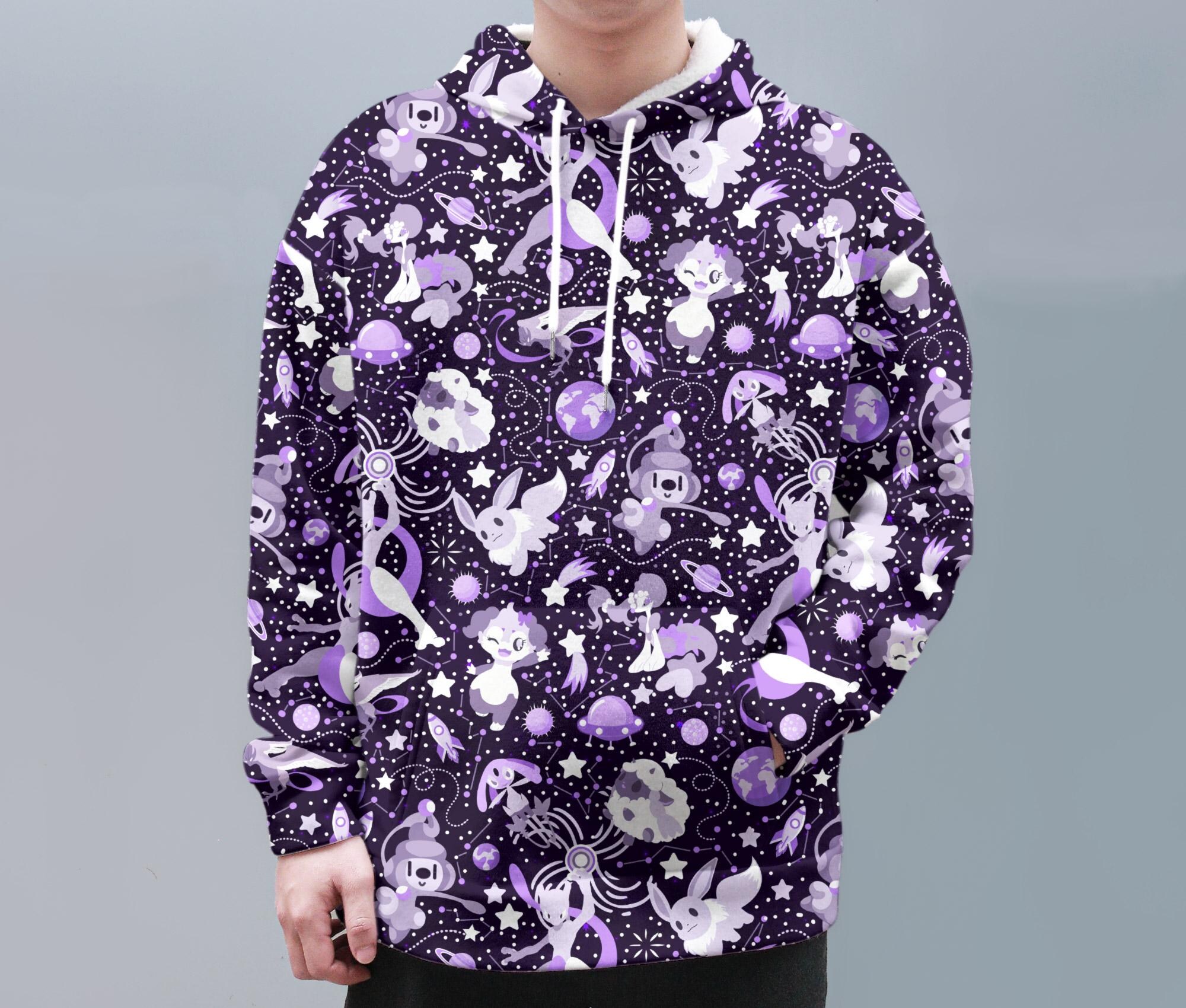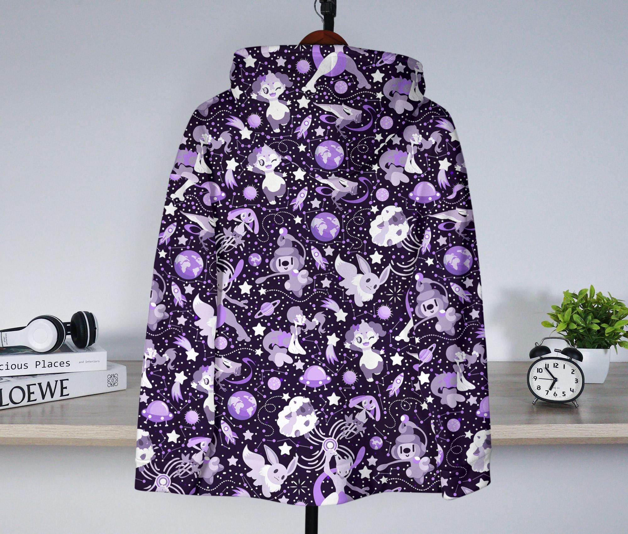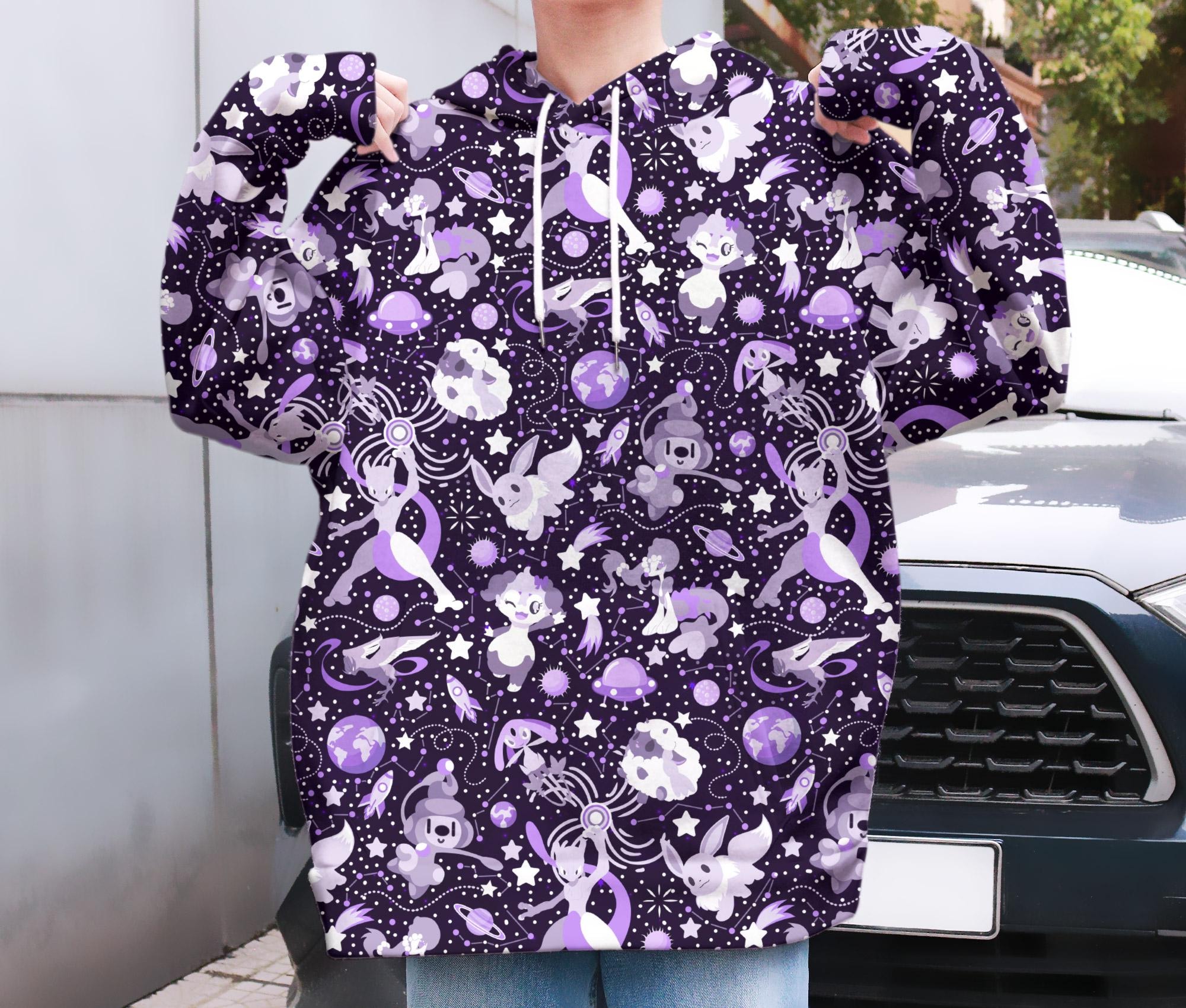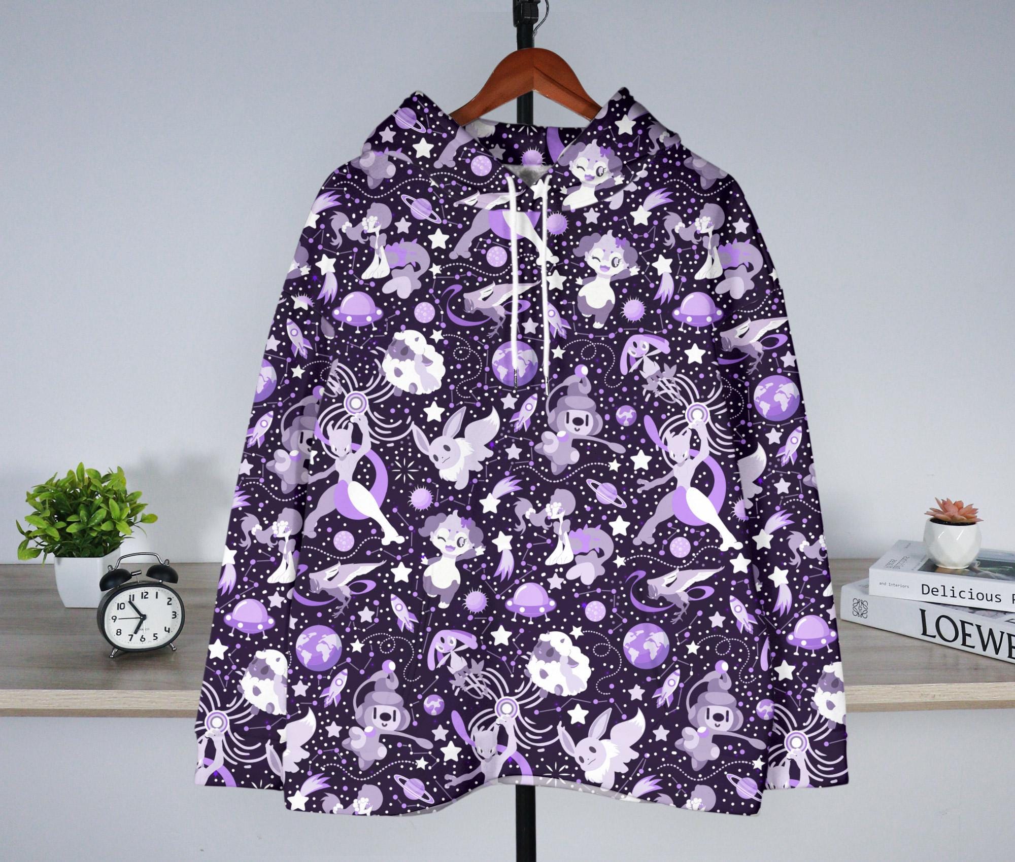 Mewtwo Hoodie, Galaxy Eevee Hoodie, Cute Kawaii Space Hoodie, Emote Hoodie for Him Her, Unisex Cozy Sweatshirt Gift