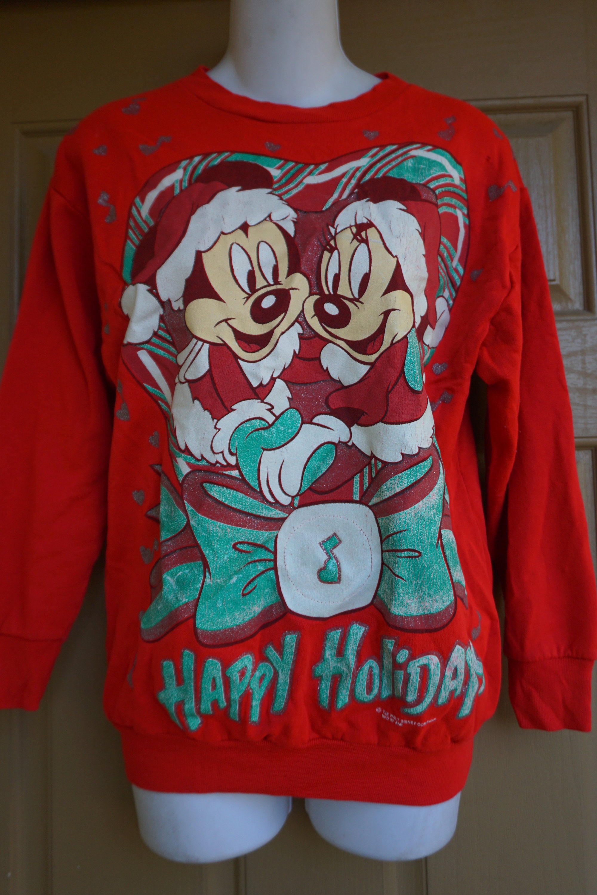 Mickey and Minnie Mouse Christmas sweater S Made in USA Happy Holidays Walt Disney Co