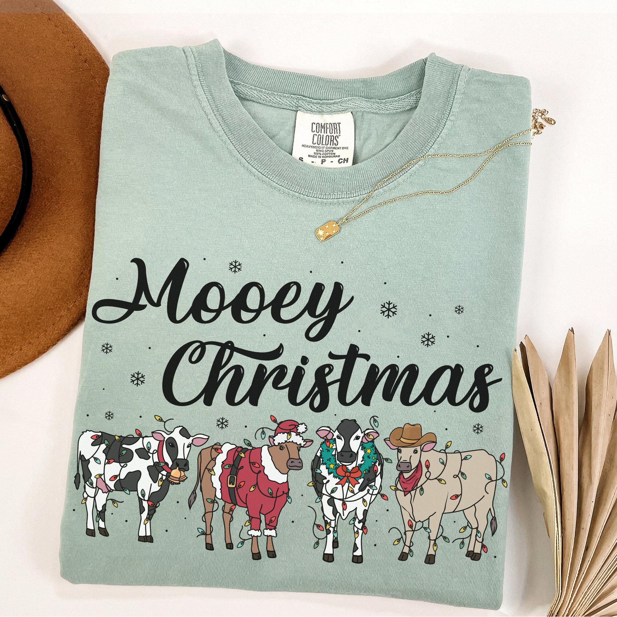 Mooey Christmas Comfort Colors Shirt, Cow Christmas Sweatshirt, Farm Christmas Cow Shirt, Cow Lover Gift, Christmas Farm Animals Shirt Gift