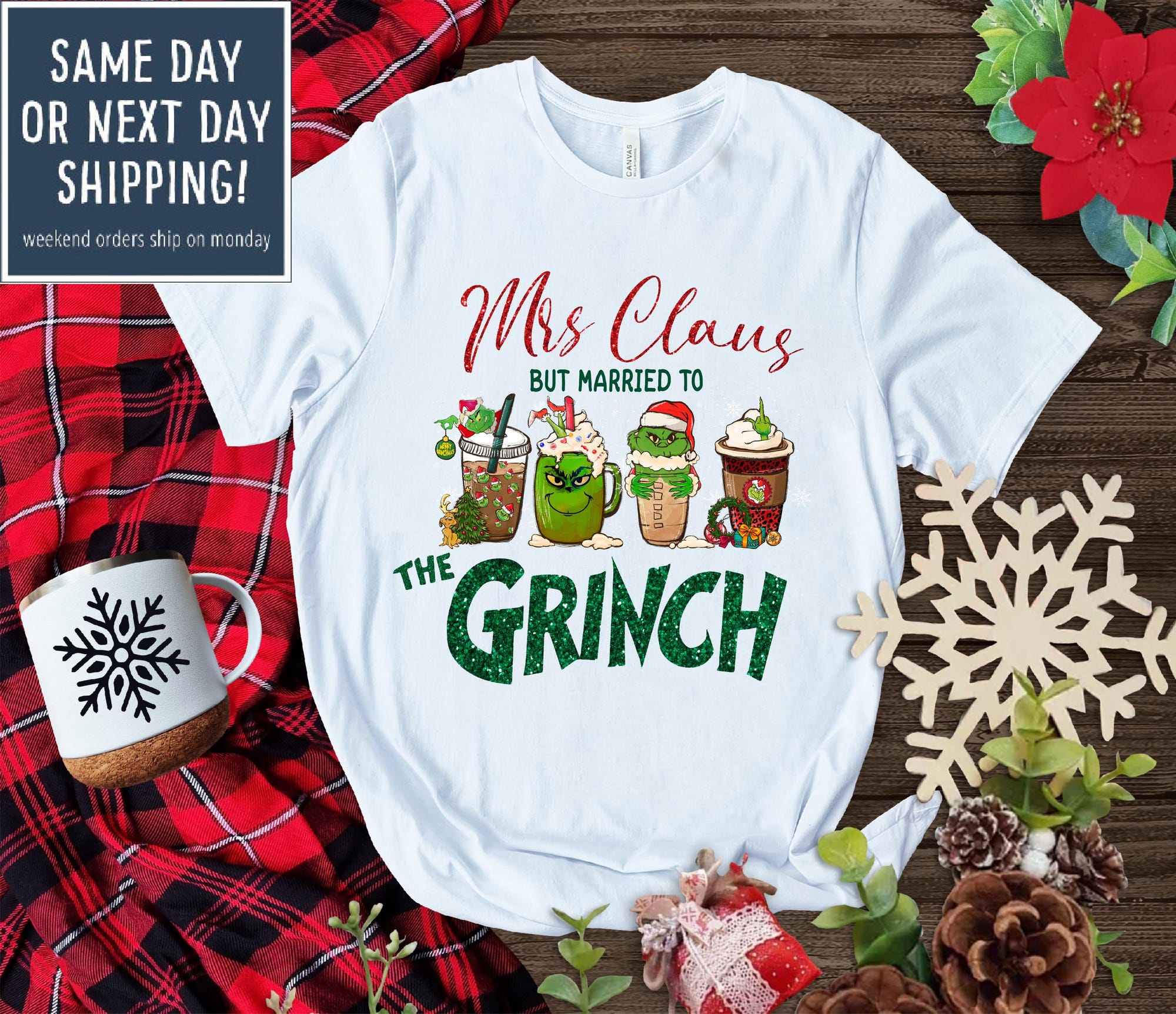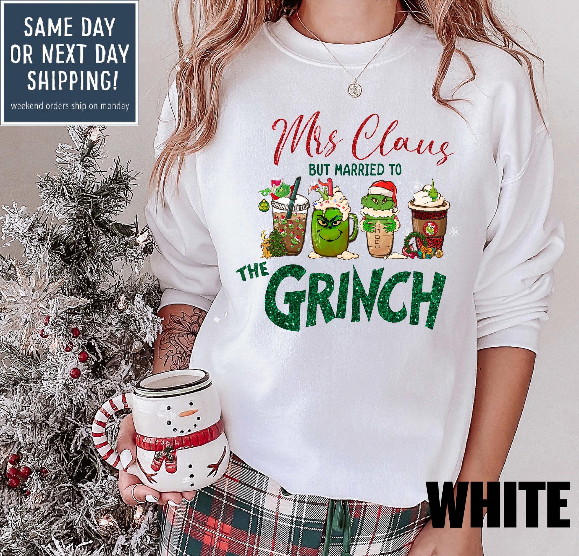 Mrs Claus But Married to Grinch Sweatshirt, Christmas Gift Tee, Holiday Gift Shirt, X-mas Gift Tee, Christmas Grinch Tee, Christmas Shirt