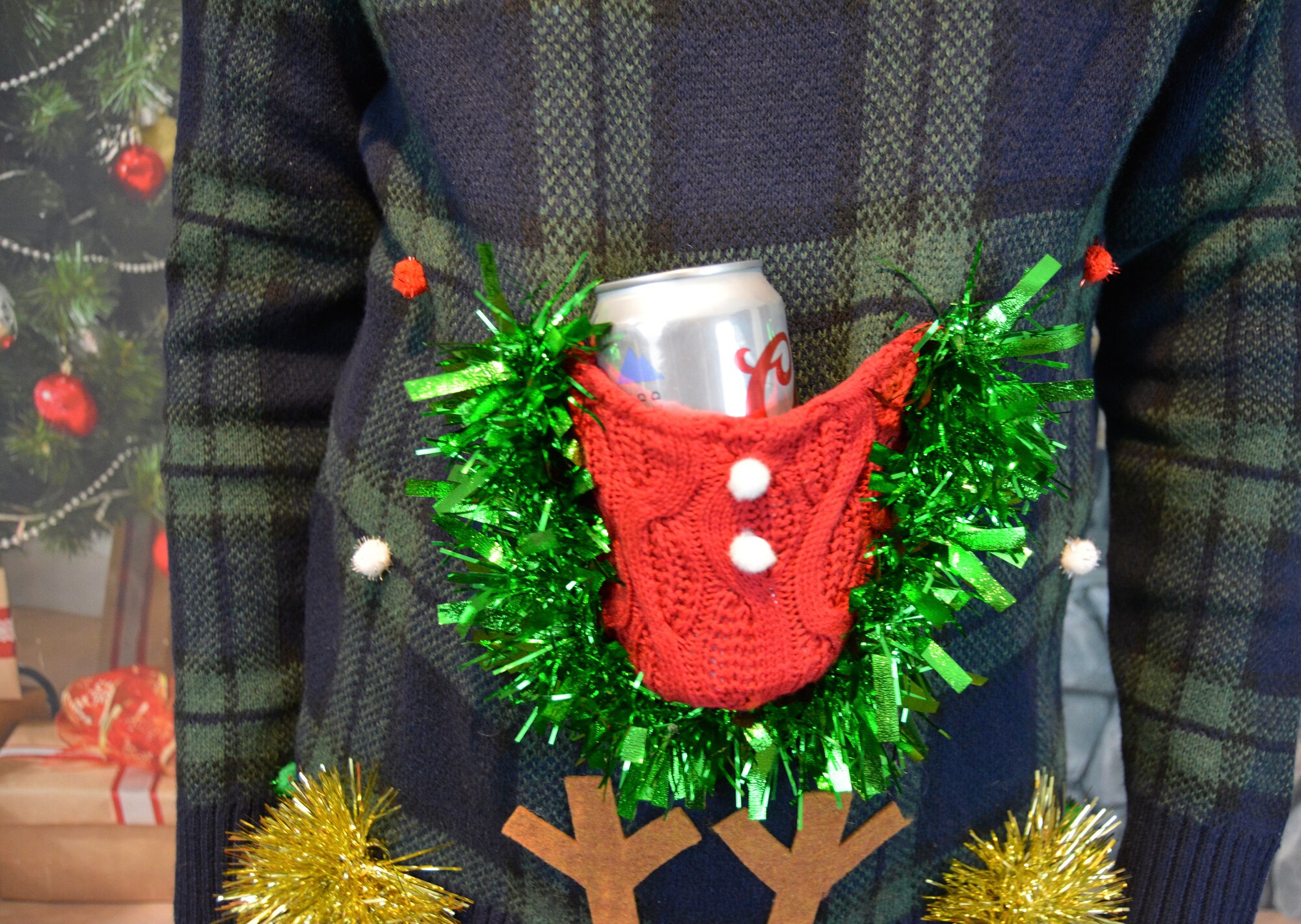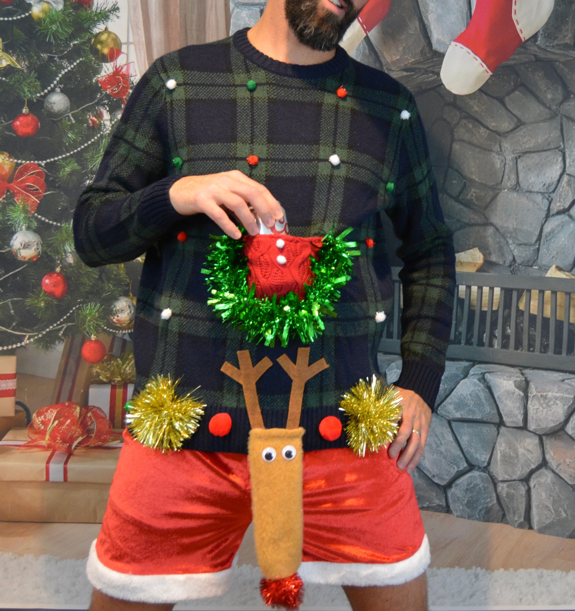 Multi size, Ugly Christmas Sweater, Mens, Liquor holder, Beer holder, alcohol, reindick, party pocket, reindeer crotch, contest winner