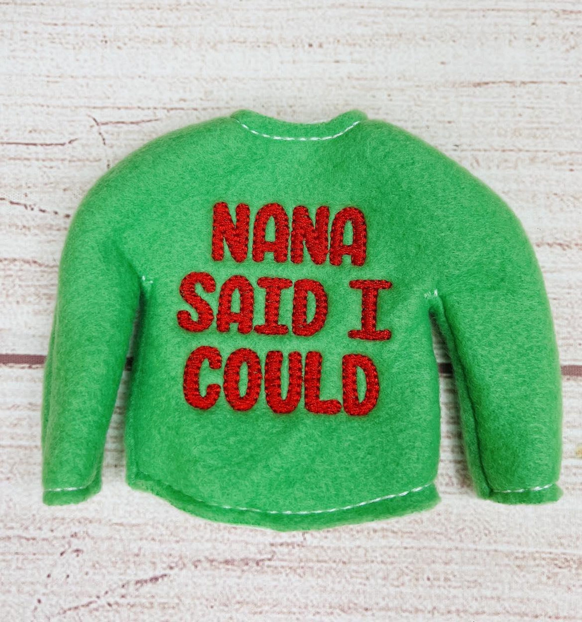 Nana and Papa said I could Elf Sweaters -Sweaters for Elves-Christmas Fun-Elf Doll Sweater-Elf Doll-Clothes for Elf-elf prop- Elf Sweater