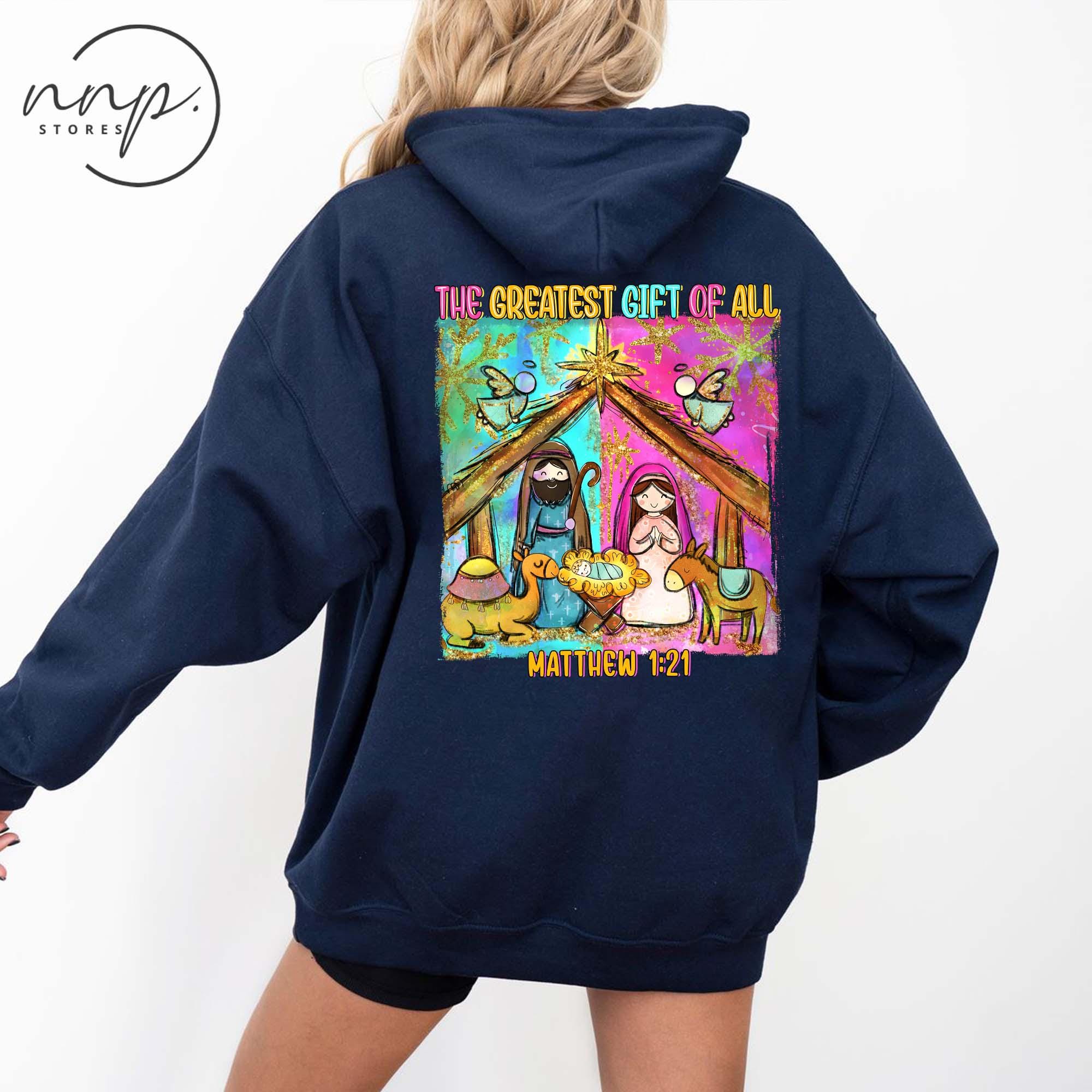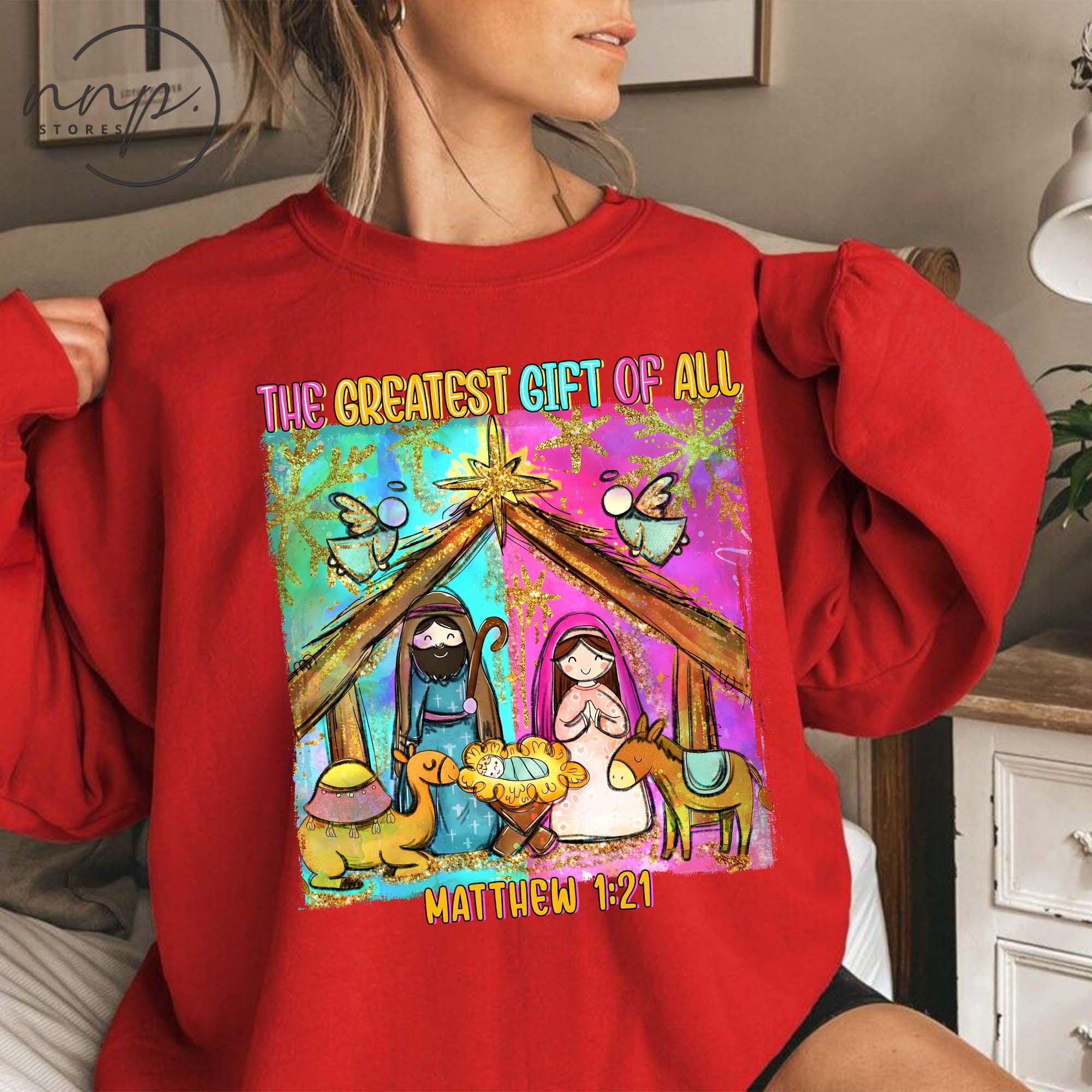 Nativity Christian Christmas The Greatest Gift Of All Sweatshirt, Nativity Hoodie, Christian Christmas T-Shirt, Religious Xmas Long Sleeves