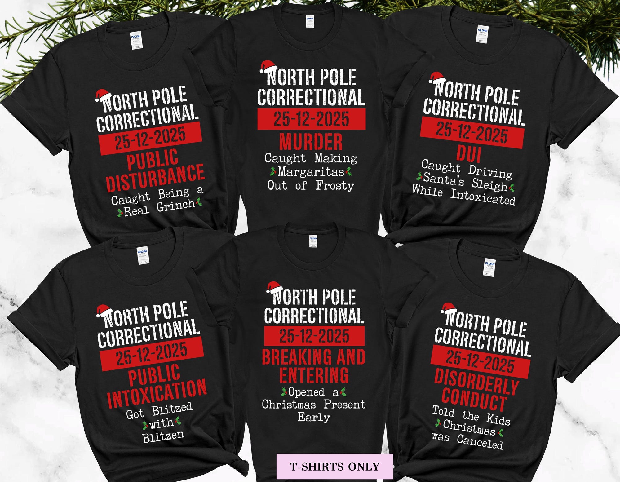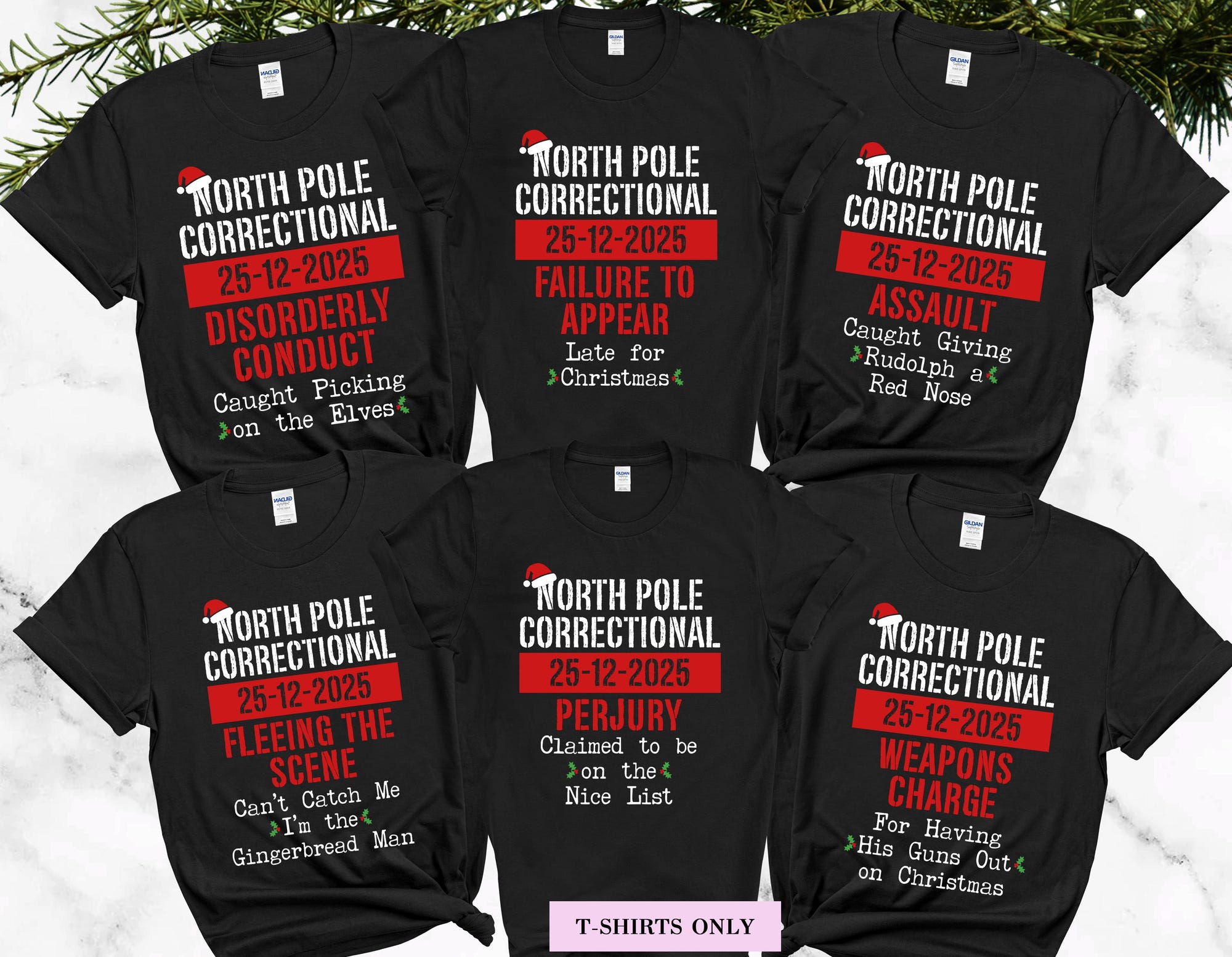 North Pole Correctional Family Christmas Shirts: Funny Matching Xmas Inmate Holiday Tees