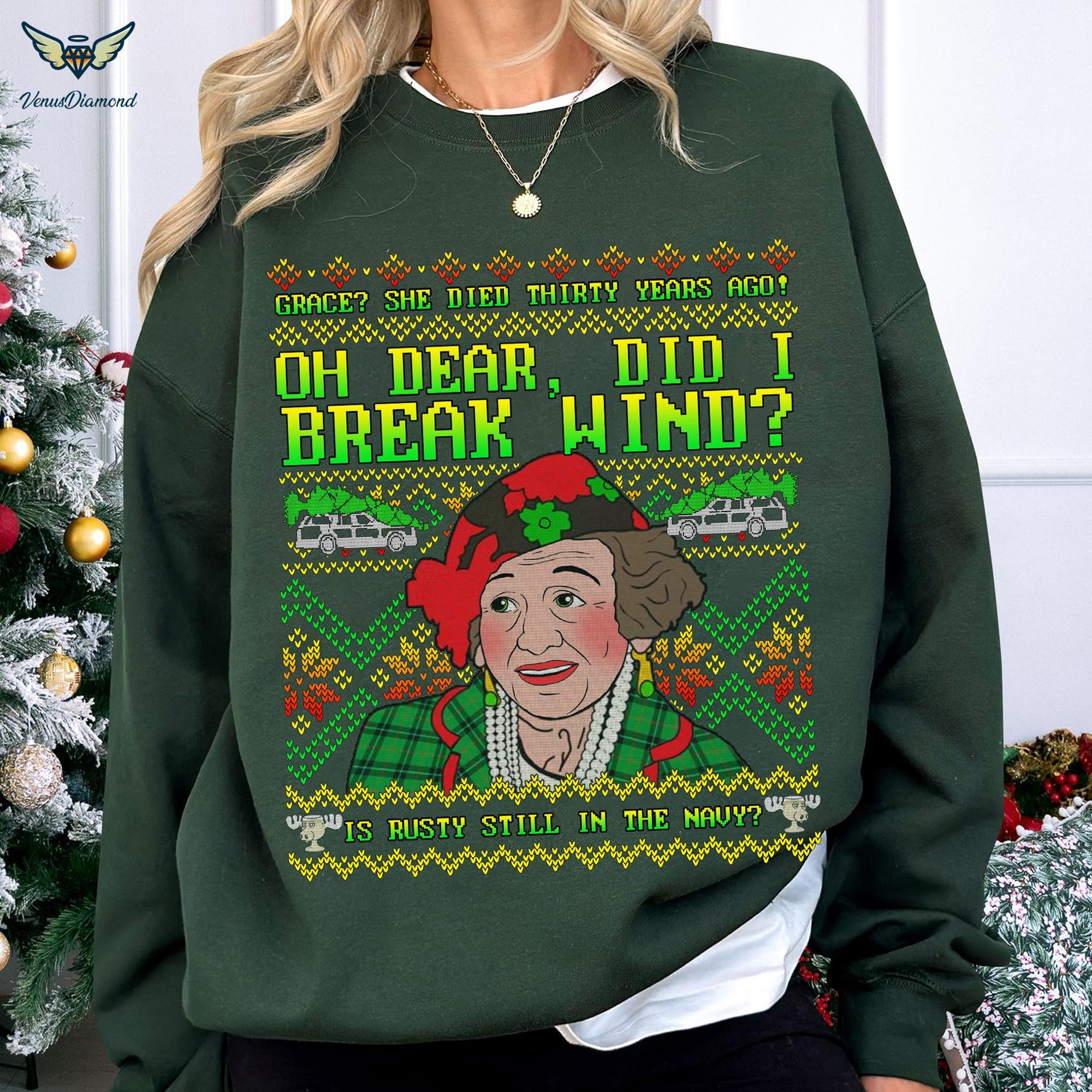 Oh Dear, Did I Break Wind? Ugly Christmas Sweatshirt | National Lampoons Aunt Bethany Ugly Xmas sweatshirt | Christmas Movie Sweatshirt