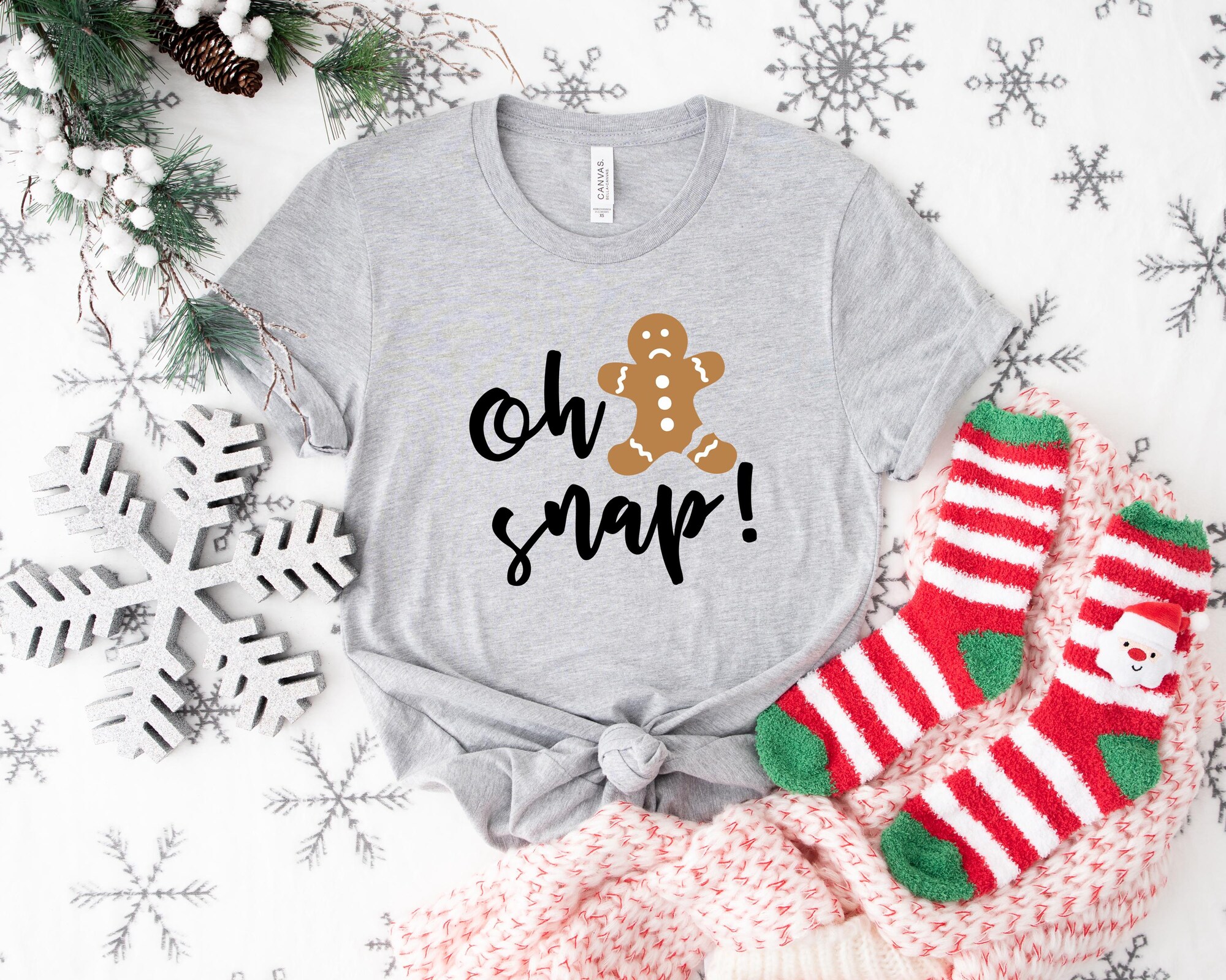 Oh Snap Gingerbread Sweatshirt, Christmas Shirt, Christmas Cookie T-Shirt, Sparkly Christmas Crewneck, Funny Christmas Tee