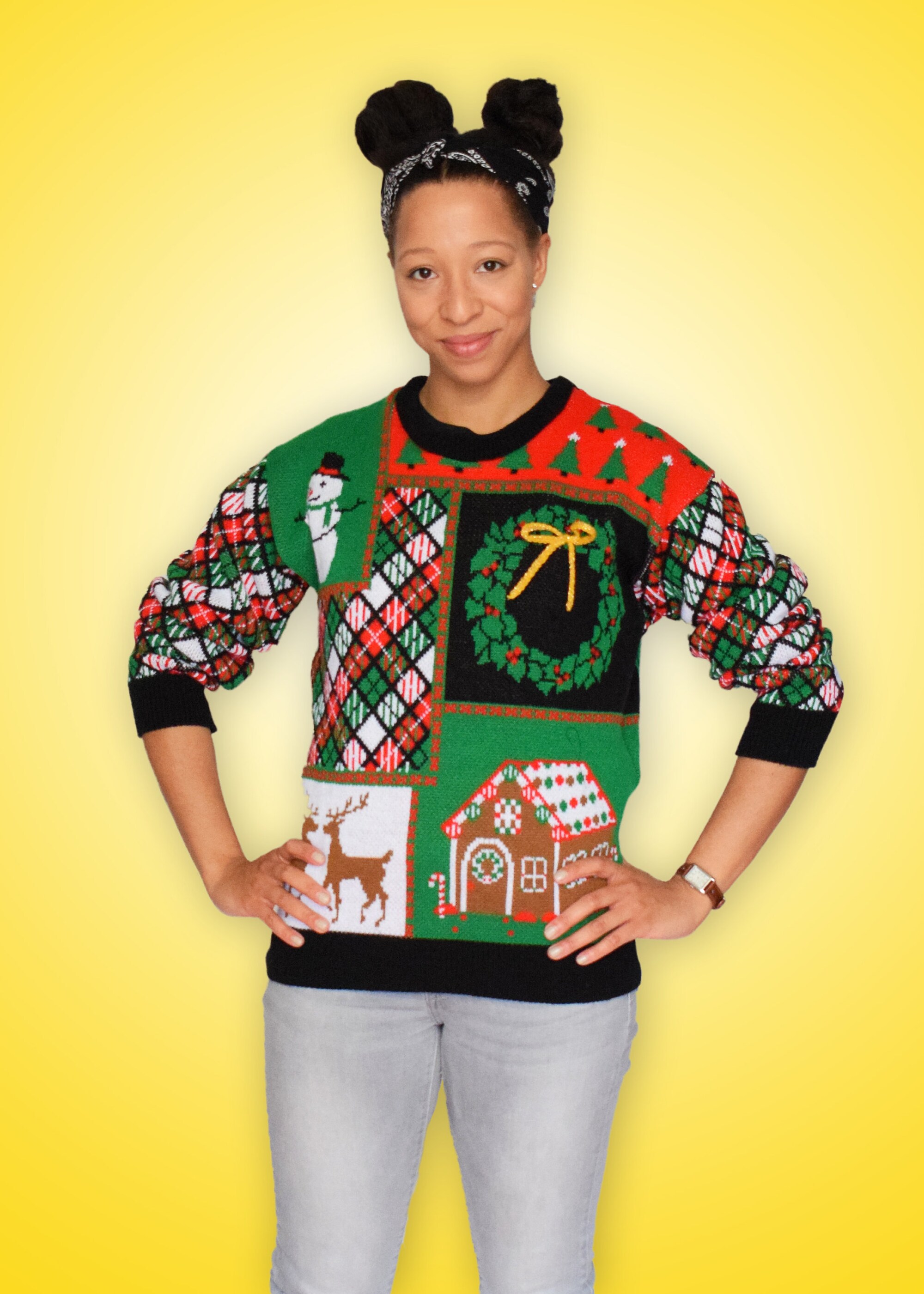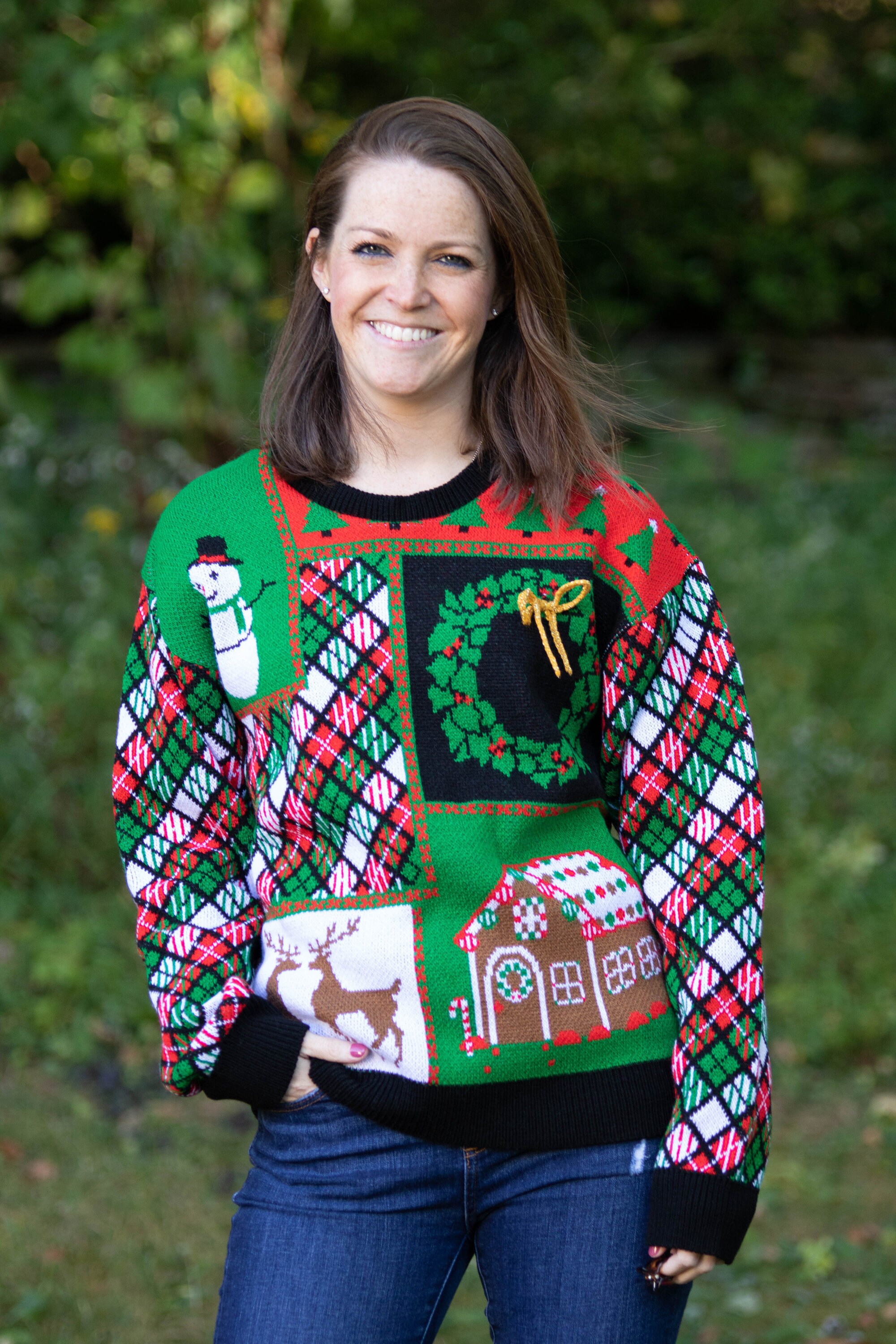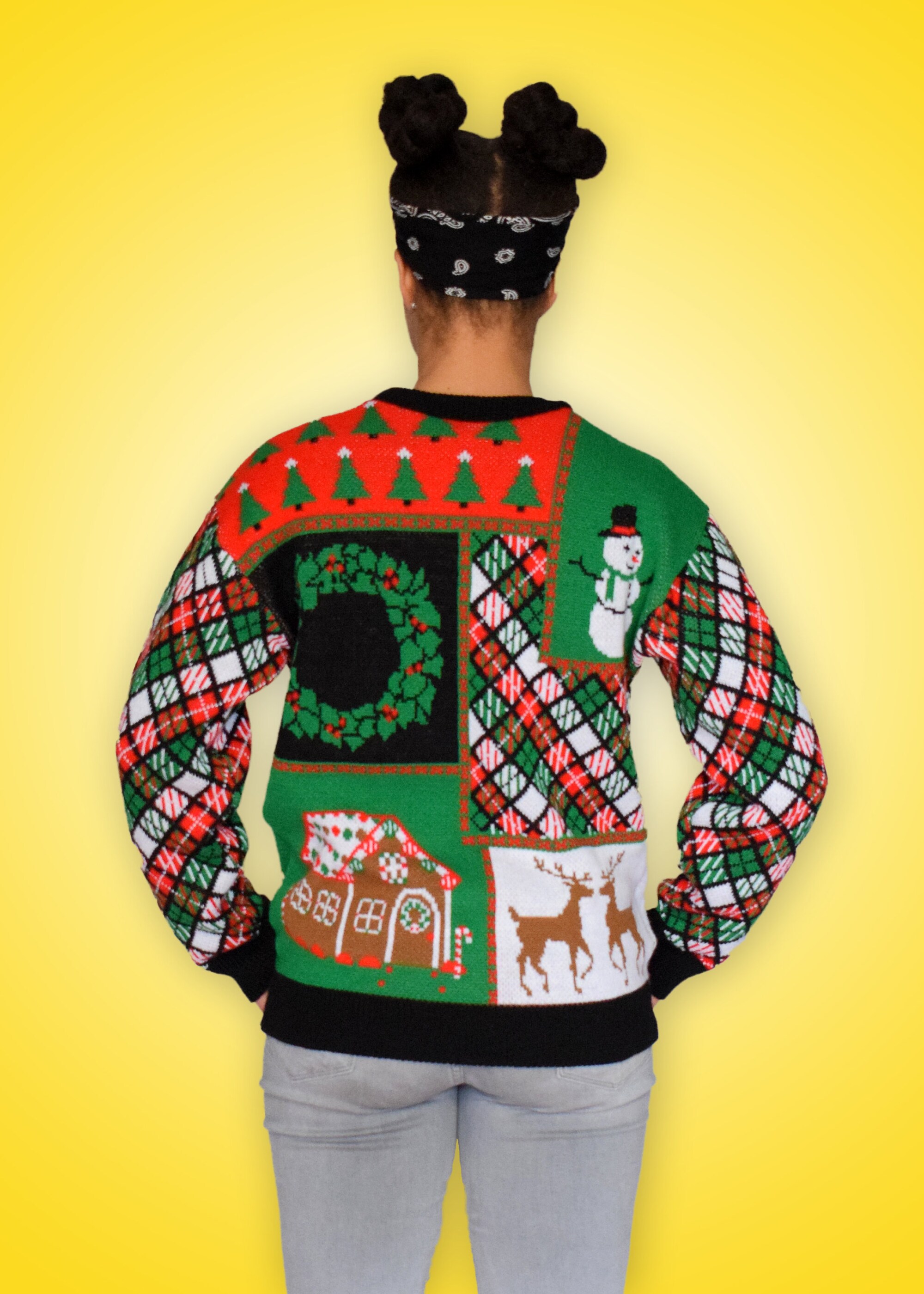 Patchwork Ugly Christmas Sweater – Festive Knit Unisex Christmas Sweater with 3D Details, Holiday Gift