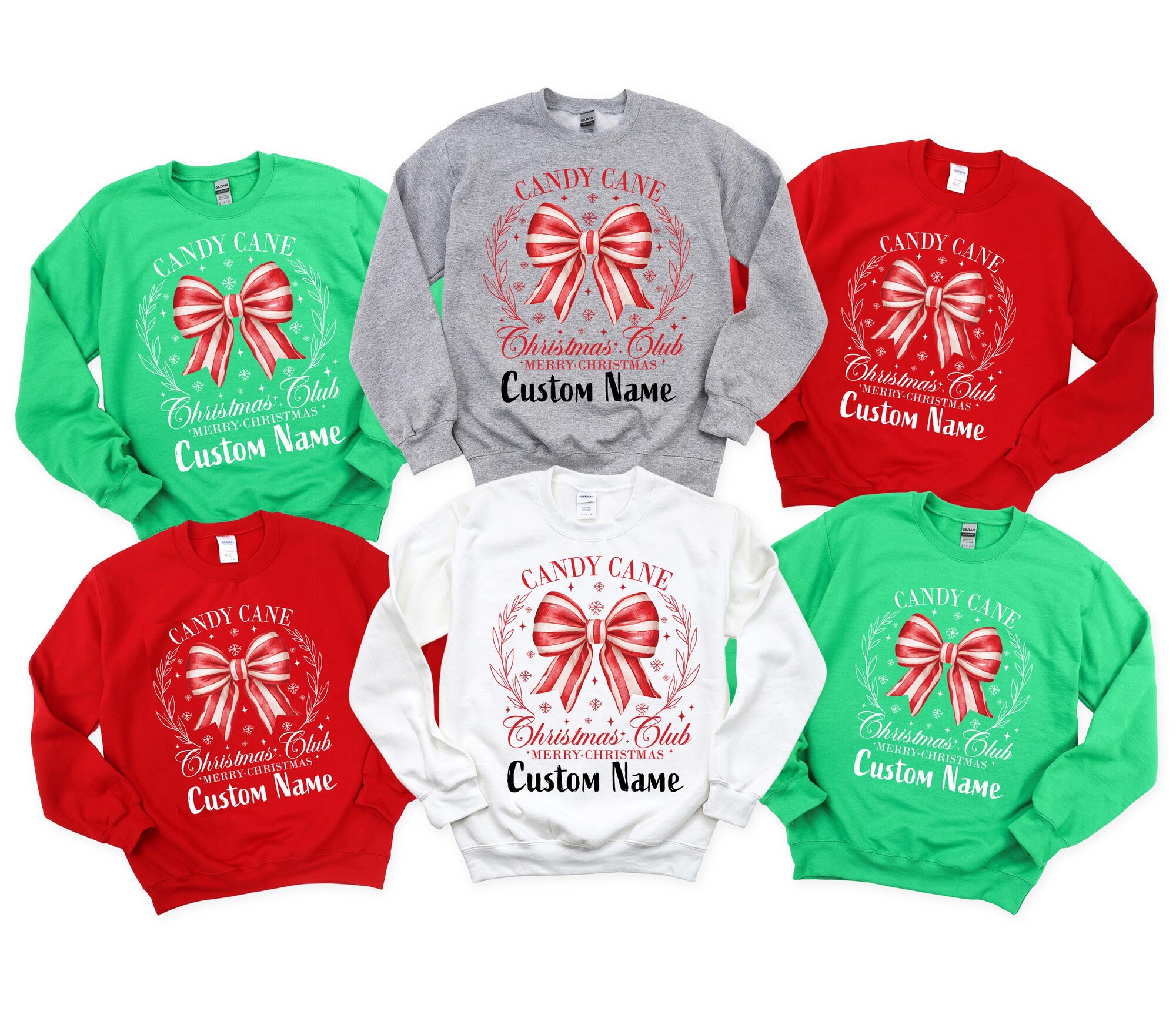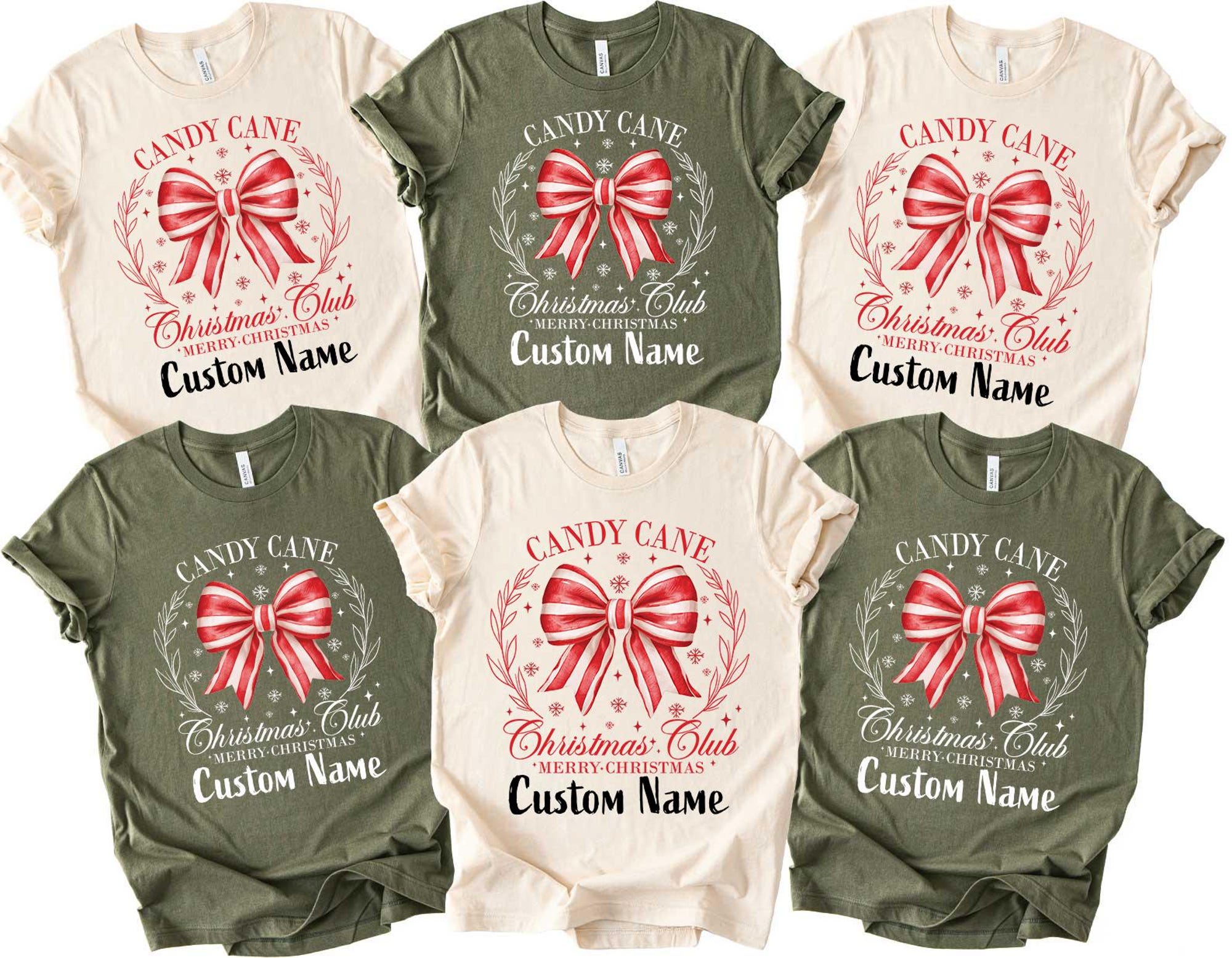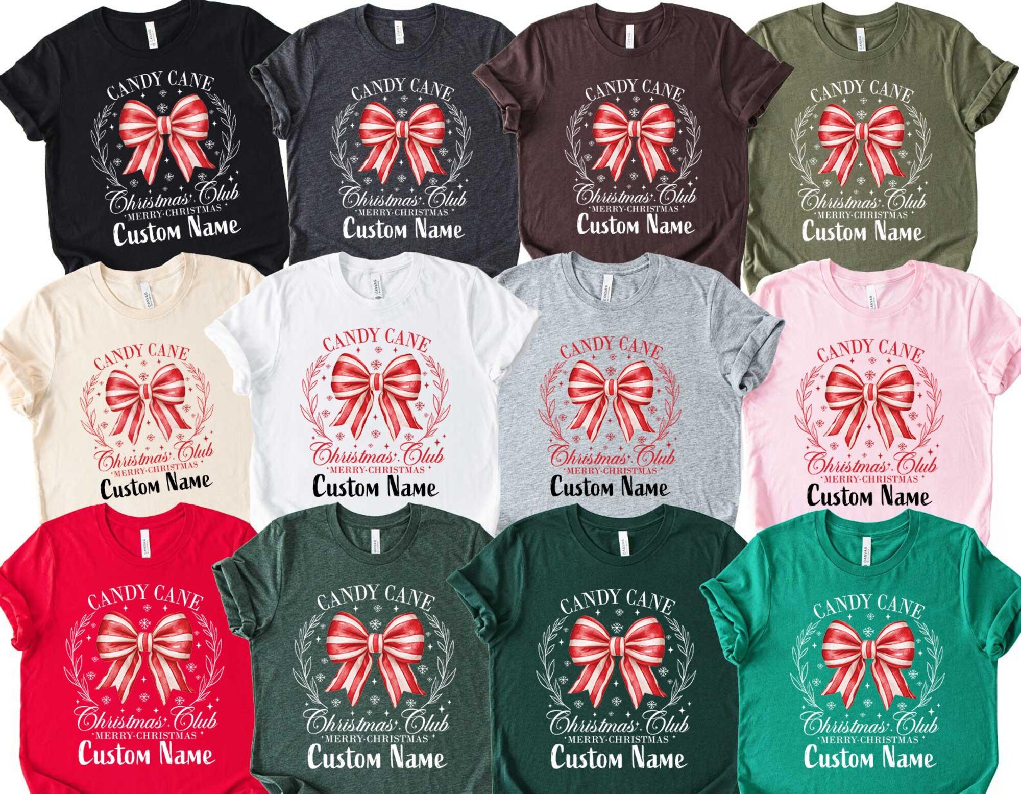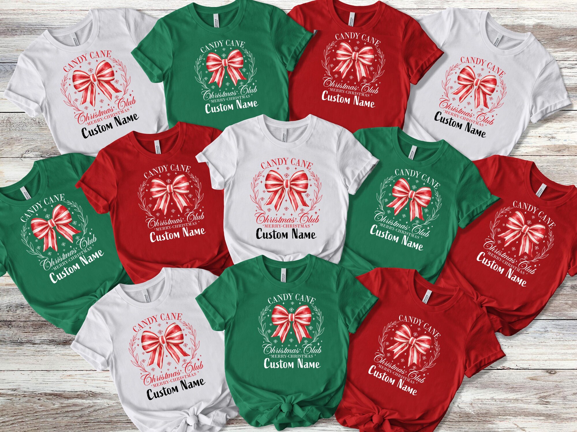 Personalized Candy Cane Christmas Club Shirts, Holiday Tshirts, Women’s Xmas Tee, Christmas Candy Tshirt, Matching Family Christmas Tees