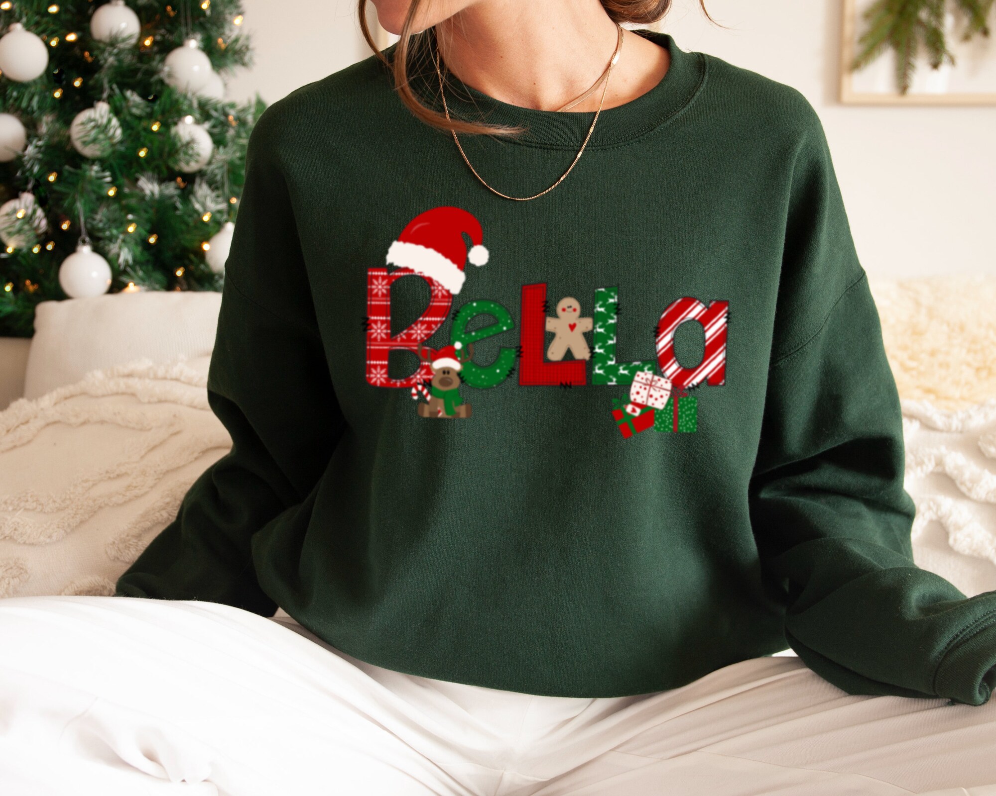 Personalized Christmas Name Sweatshirt, Custom Christmas Name, Family Christmas,Merry Christmas,Women Christmas,Winter Season,Santa Reindeer