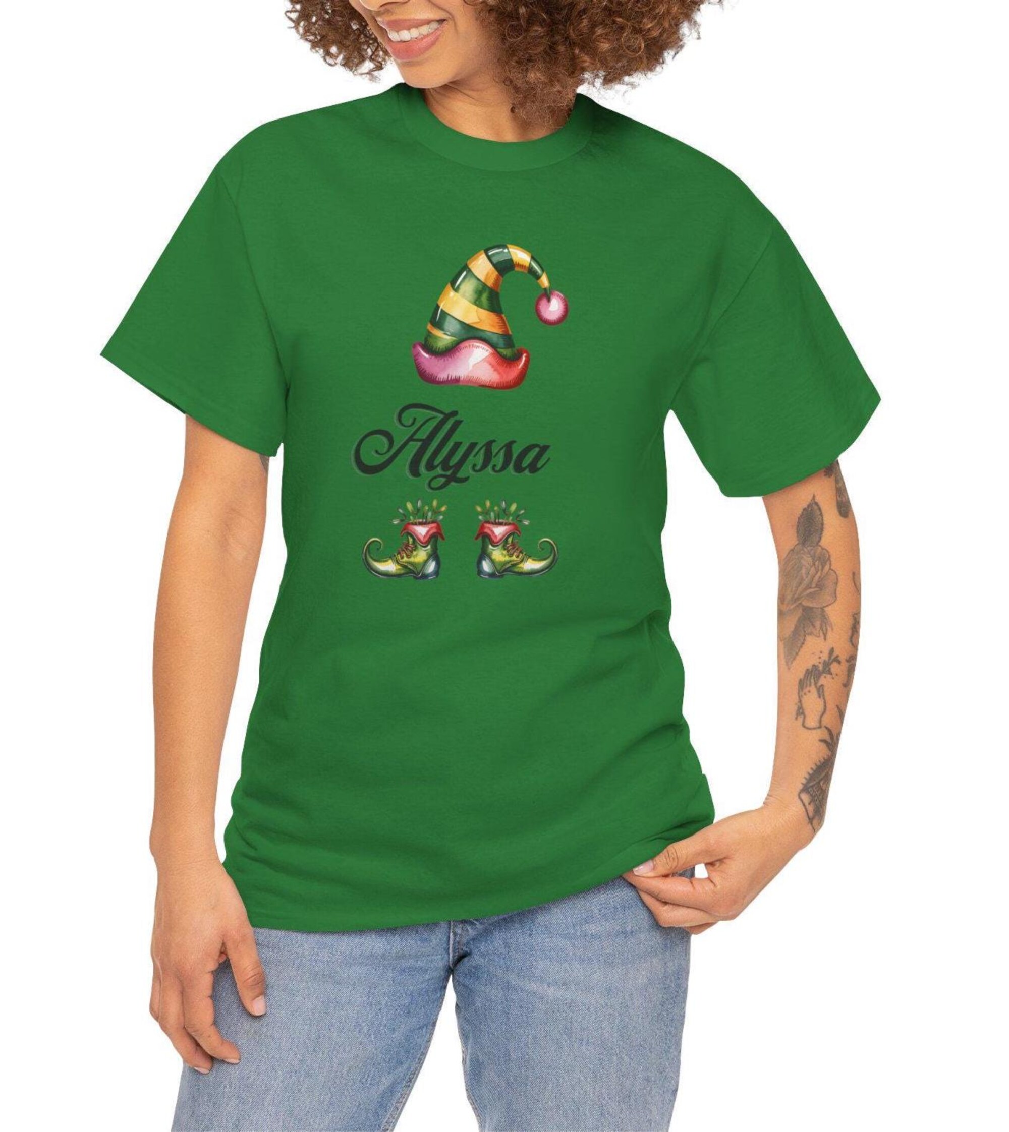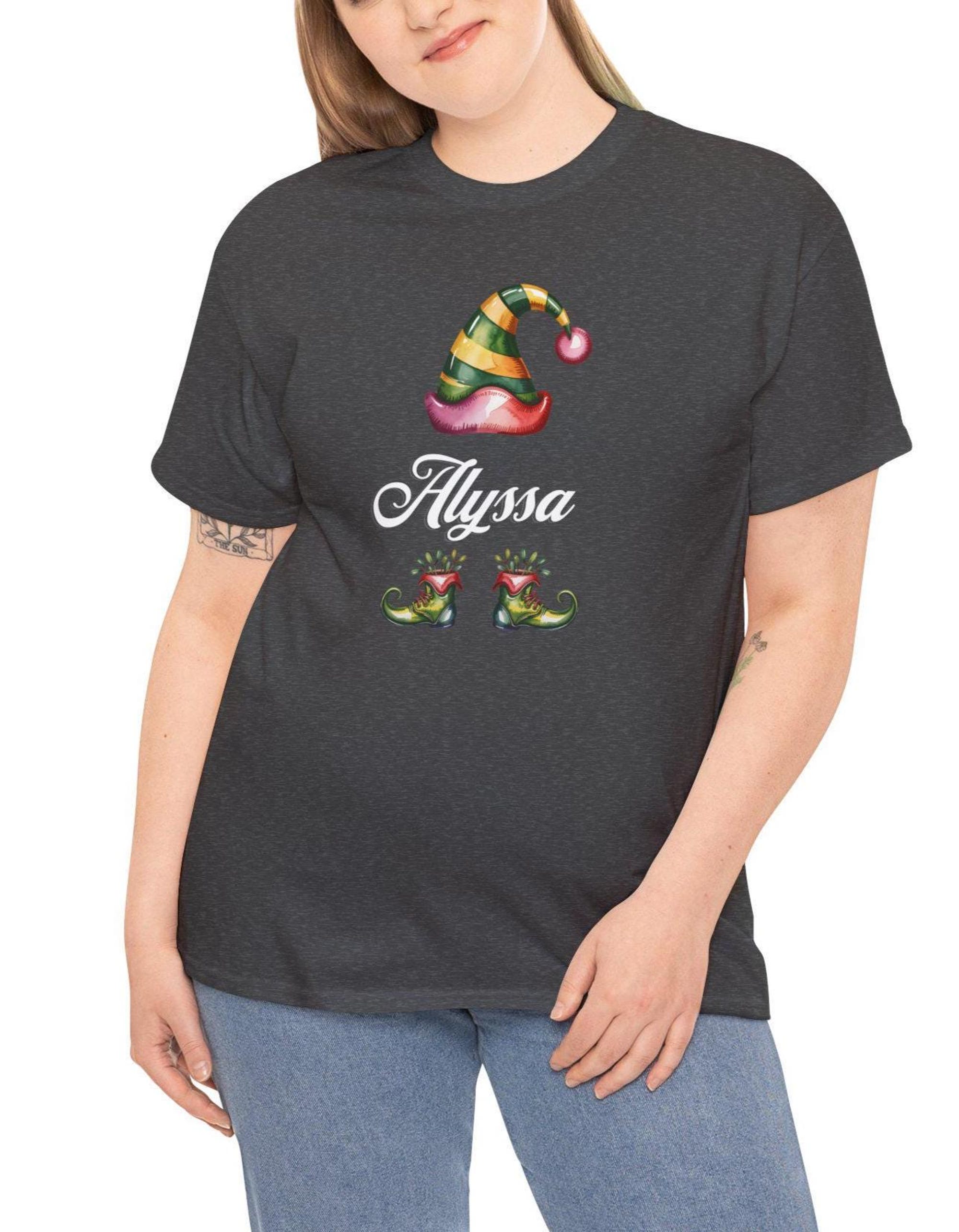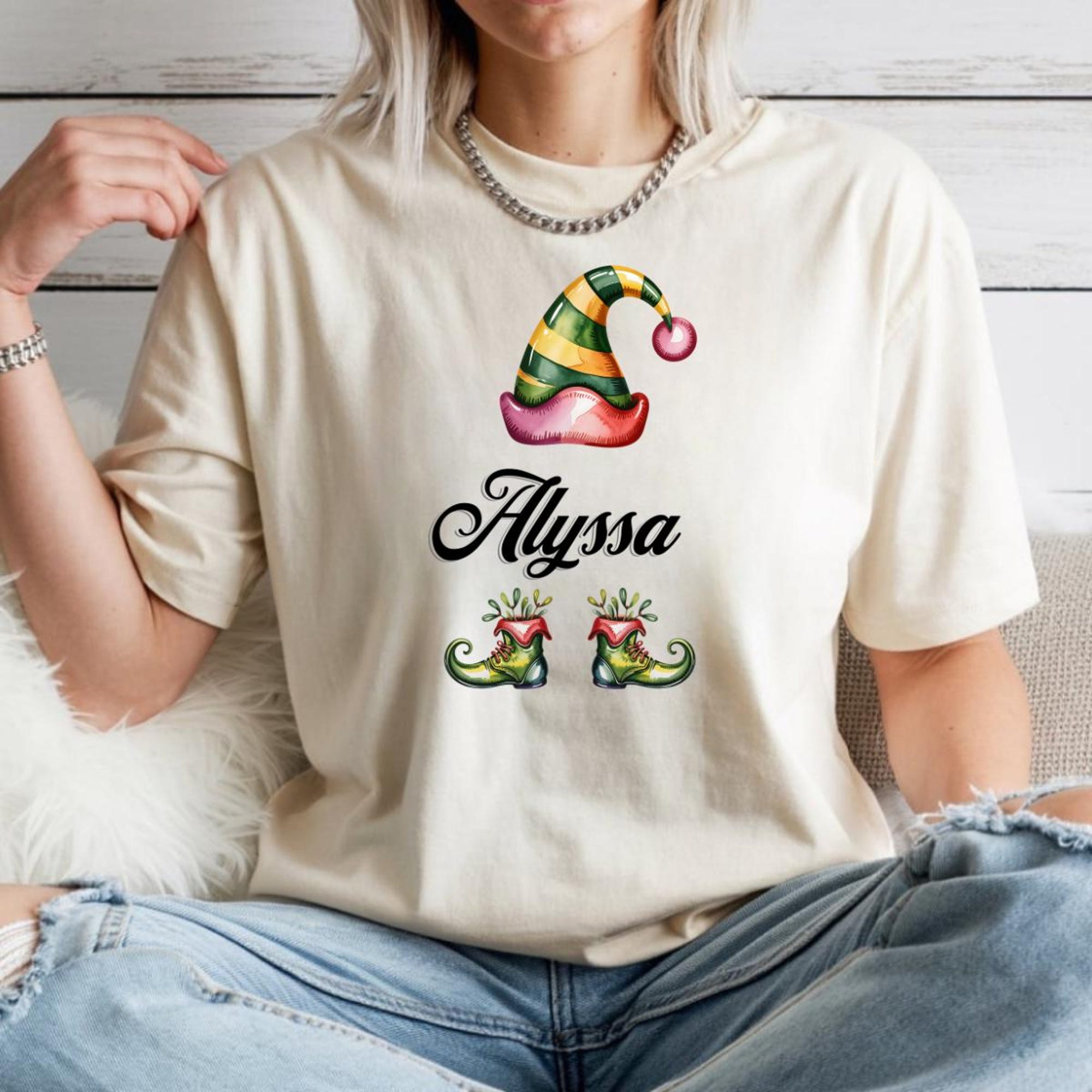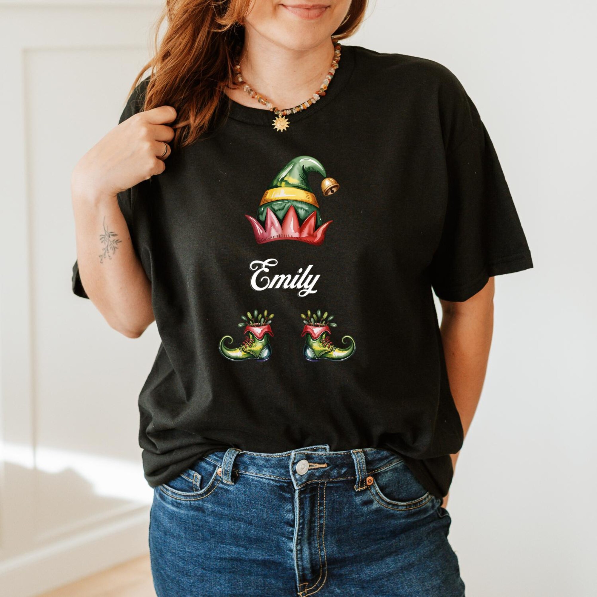 Personalized Elf Name Tee, Unisex Holiday T-Shirt, perfect for Christmas gifts and family matching outfits. It gives a festive and cute vibe that can be enjoyed by both adults and older teenagers during the holiday season. You will love how soft and comfortable it is!