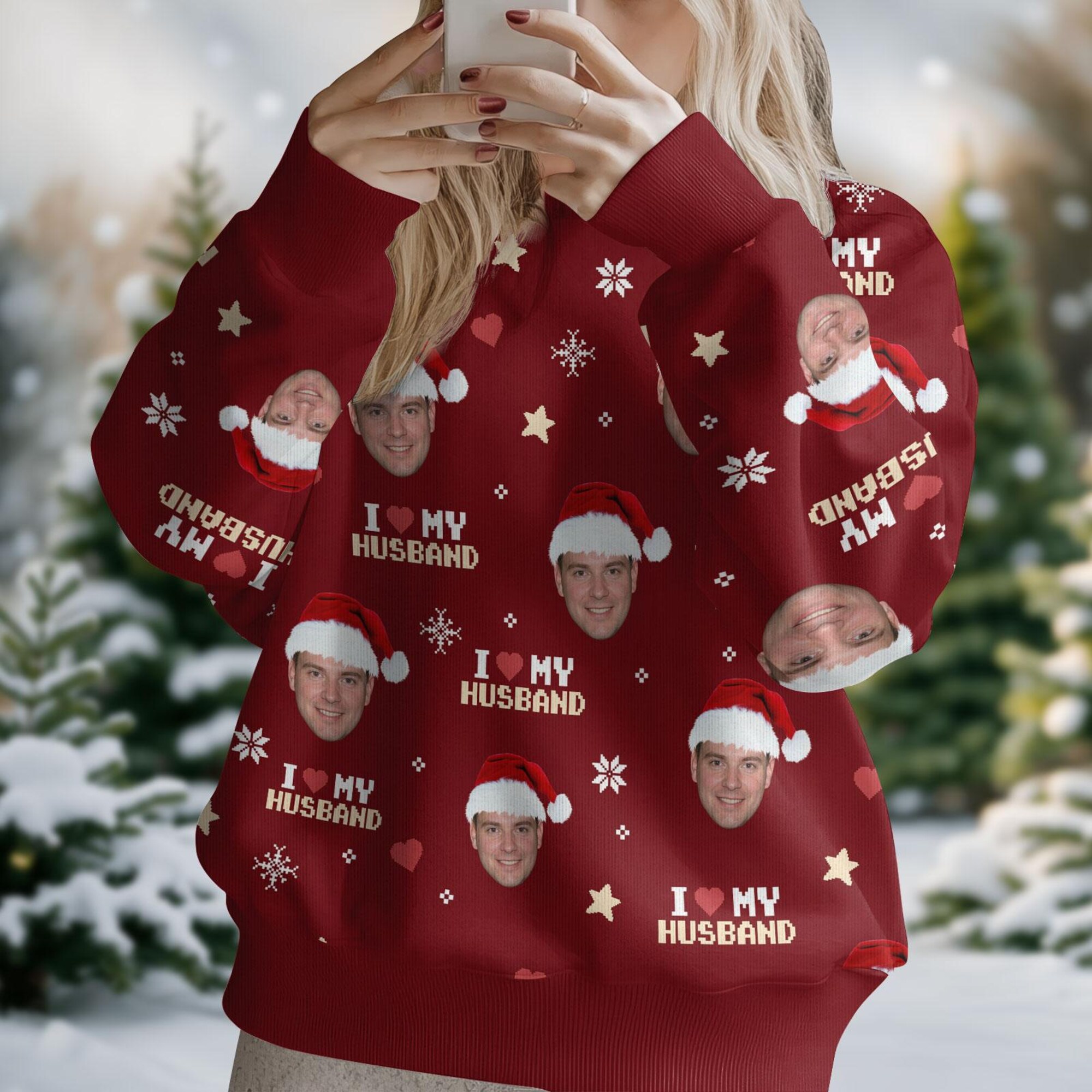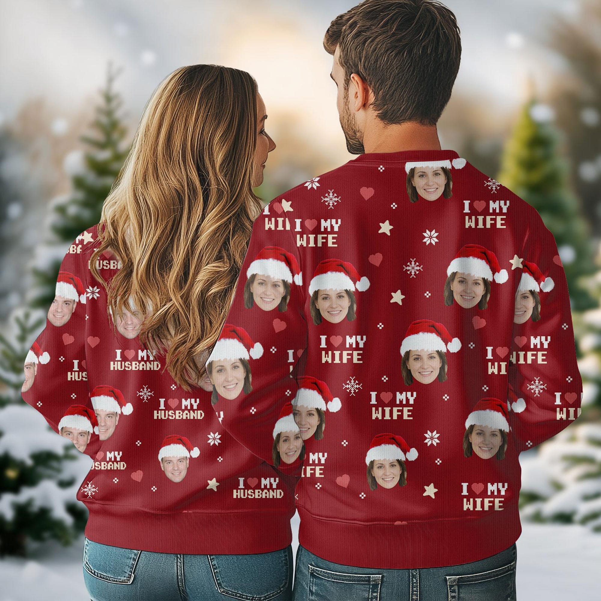 Personalized Face Christmas Ugly Sweater, Couple Photo Ugly Sweater, Custom Face Husband Wife Christmas Sweater, Custom Christmas Gift