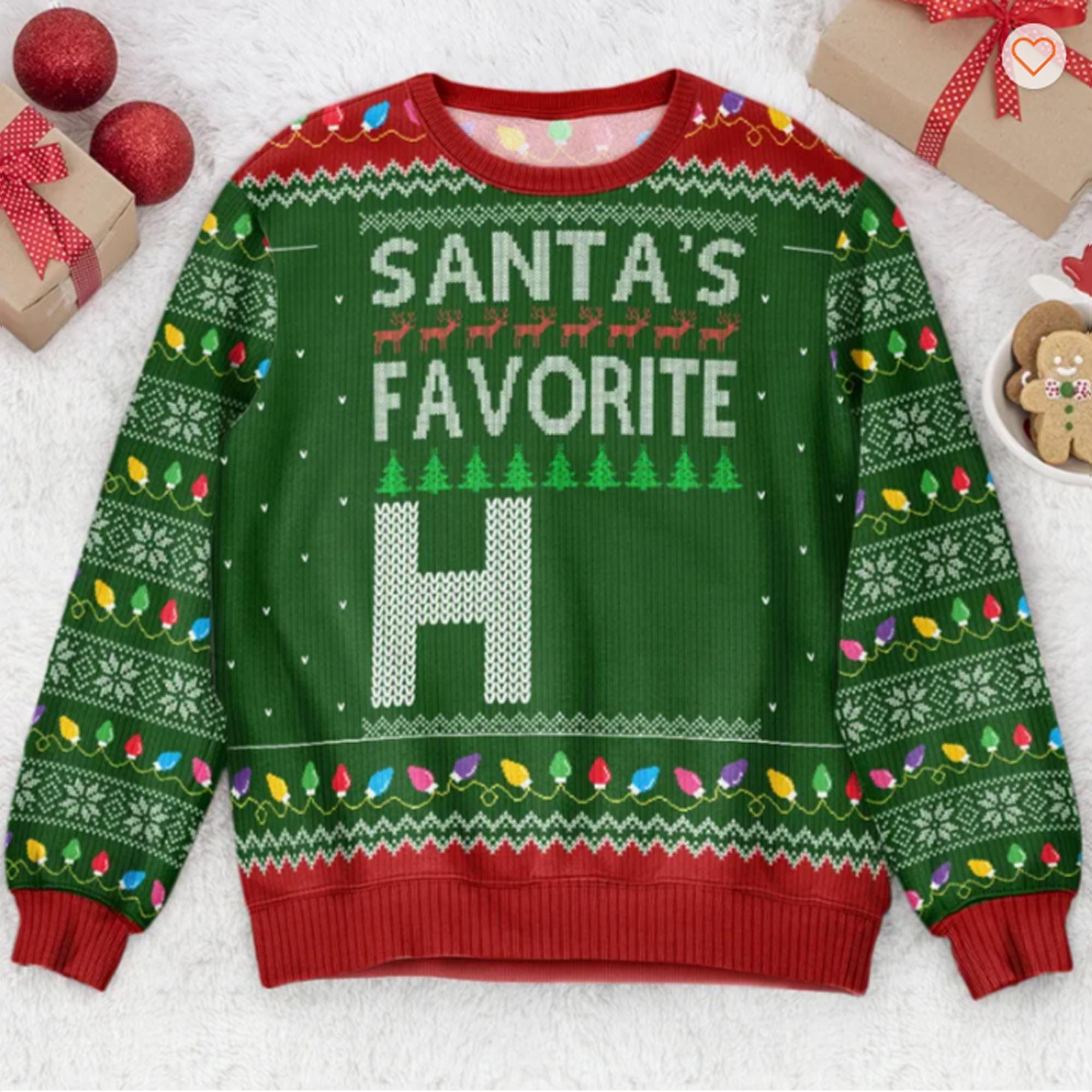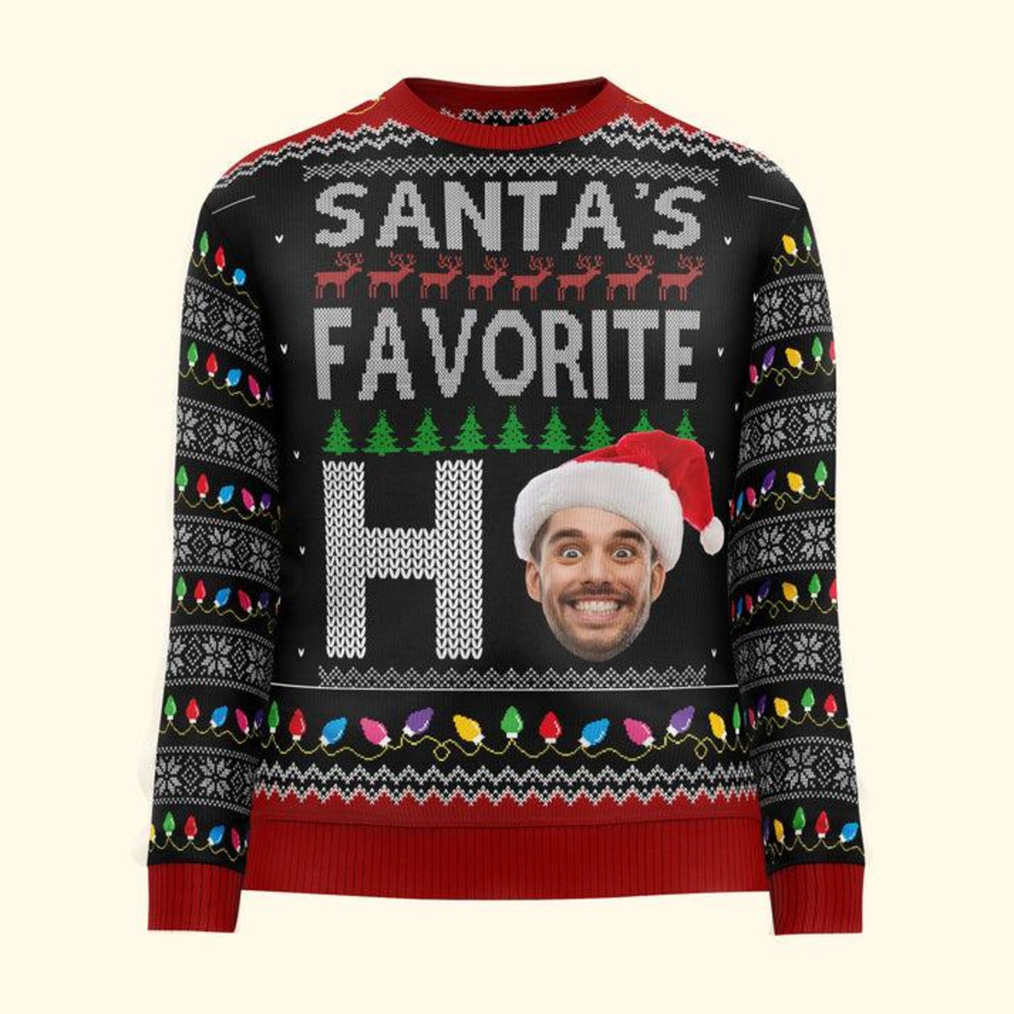 Personalized Face Santa’s Favourite Ugly Sweater, Photo Ugly Xmas Ugly Sweater, Personalized Kids Faces Family Christmas Ugly Matching Gift