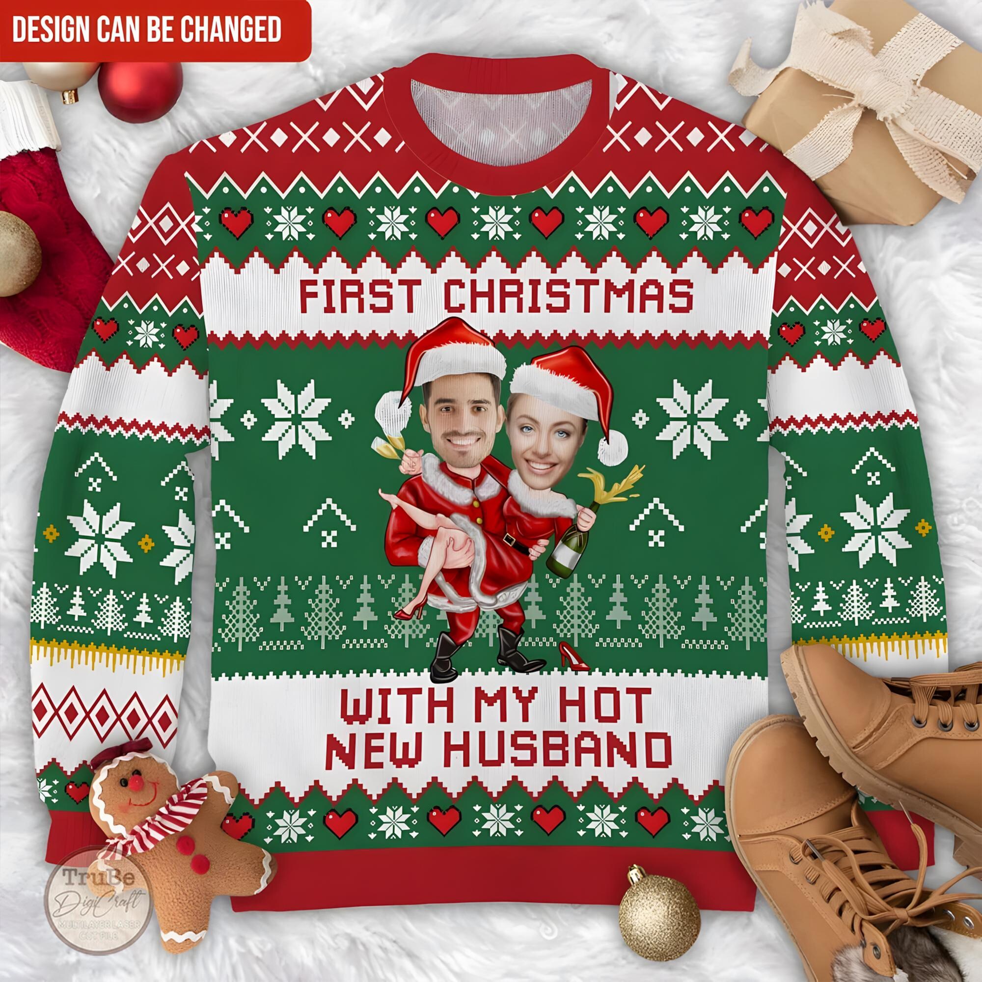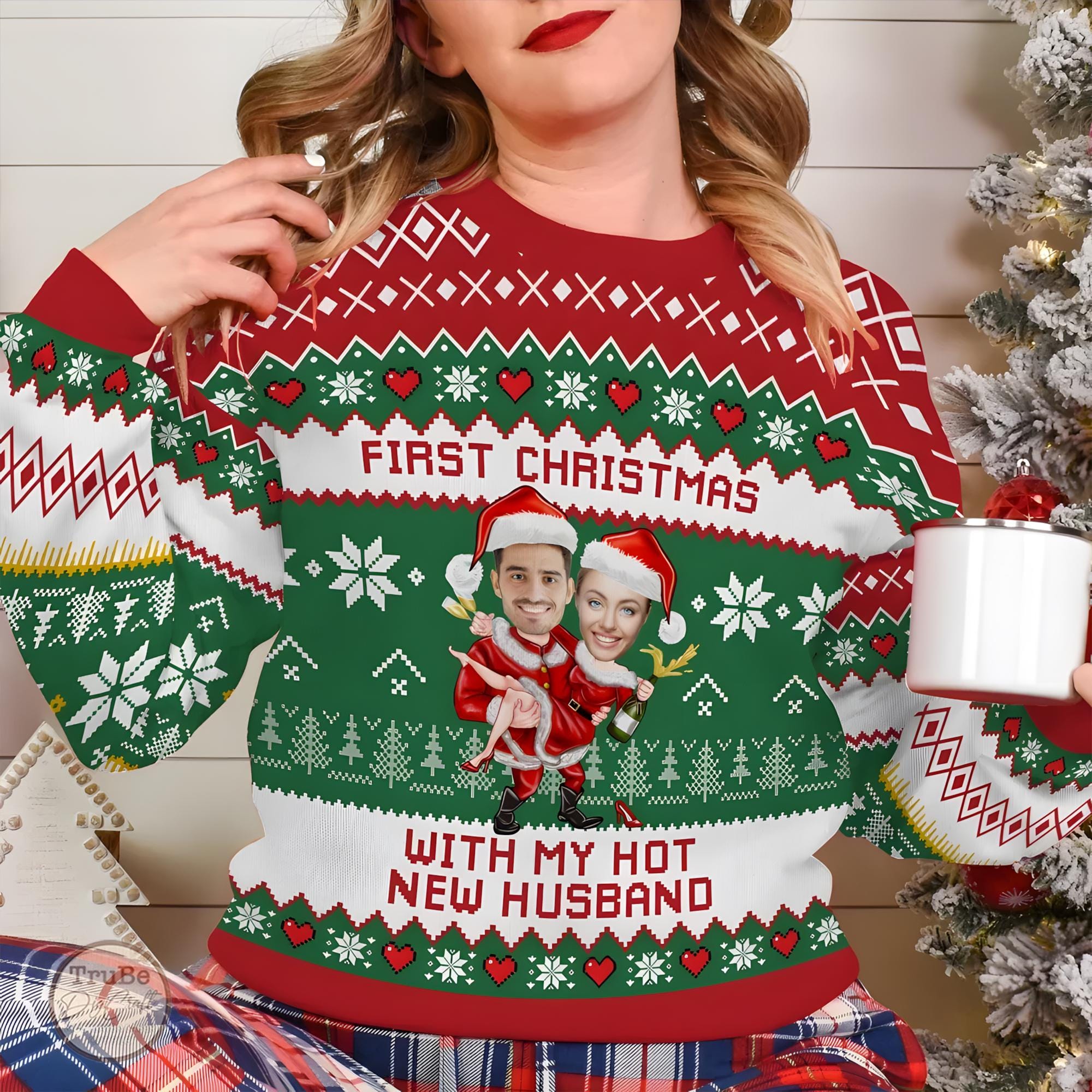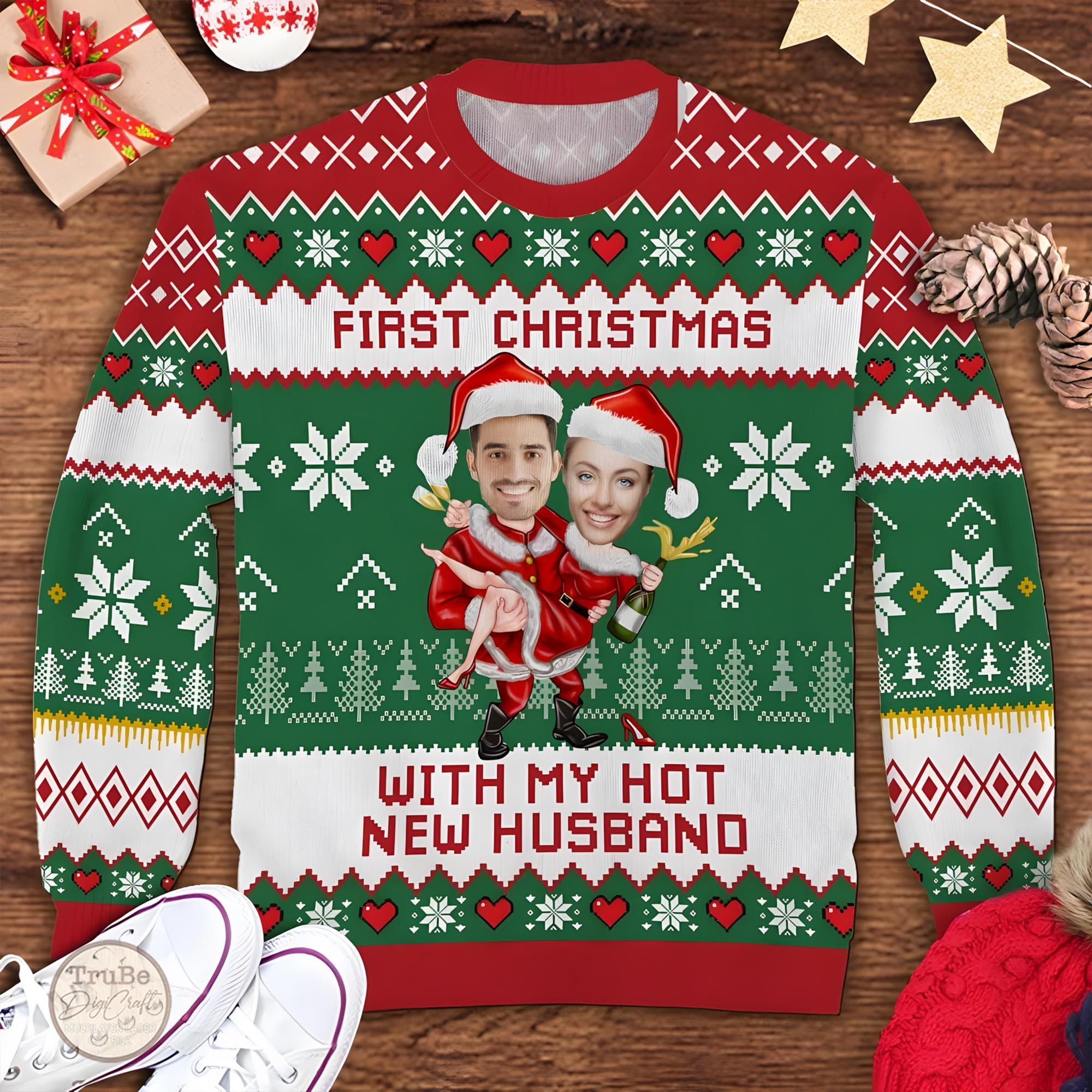 Personalized Face Ugly Christmas Sweater: Custom Couple Photo Holiday Pullover
