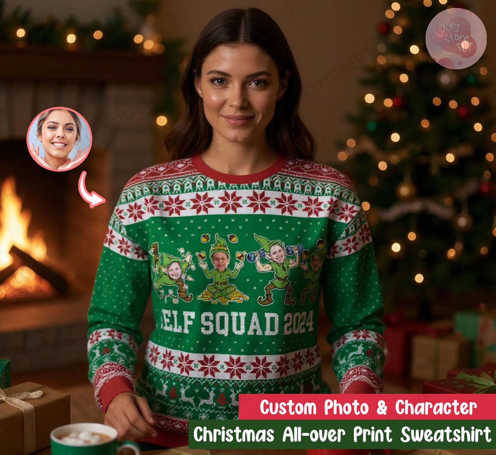 Personalized Family Elf Christmas Sweater 2025, Custom Photo & Name Ugly Xmas Sweater, Matching Holiday Party Outfit for Family and Friends