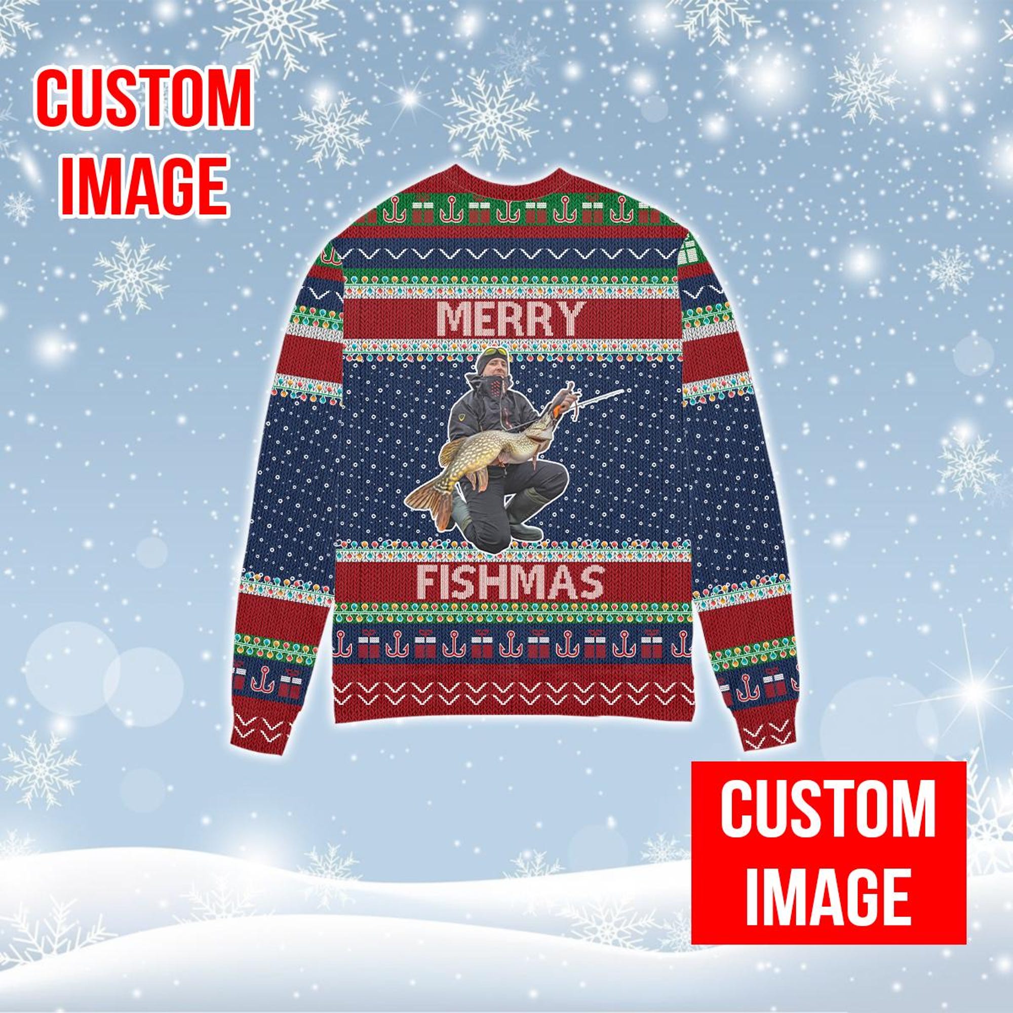 Personalized Fishing Christmas Sweater, Custom Photo Fisherman Christmas Sweater, Merry Fishmas Ugly Christmas Sweater, Fisherman Xmas Gift