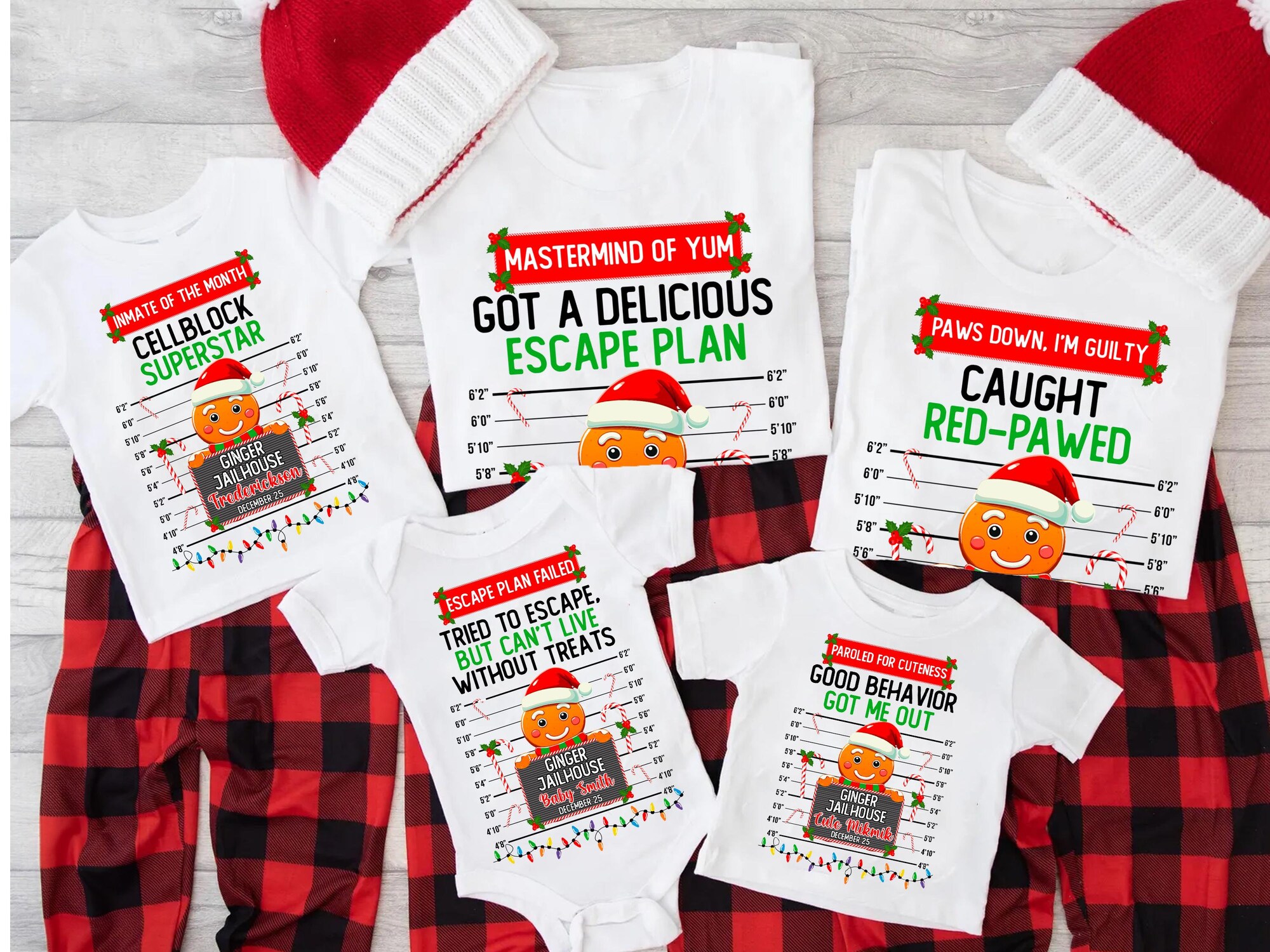 Personalized Gingerbread Family Christmas Shirt, Group Matching Christmas Outfits, Christmas Holiday Tee, Funny Gingerbread Mugshot Shirt