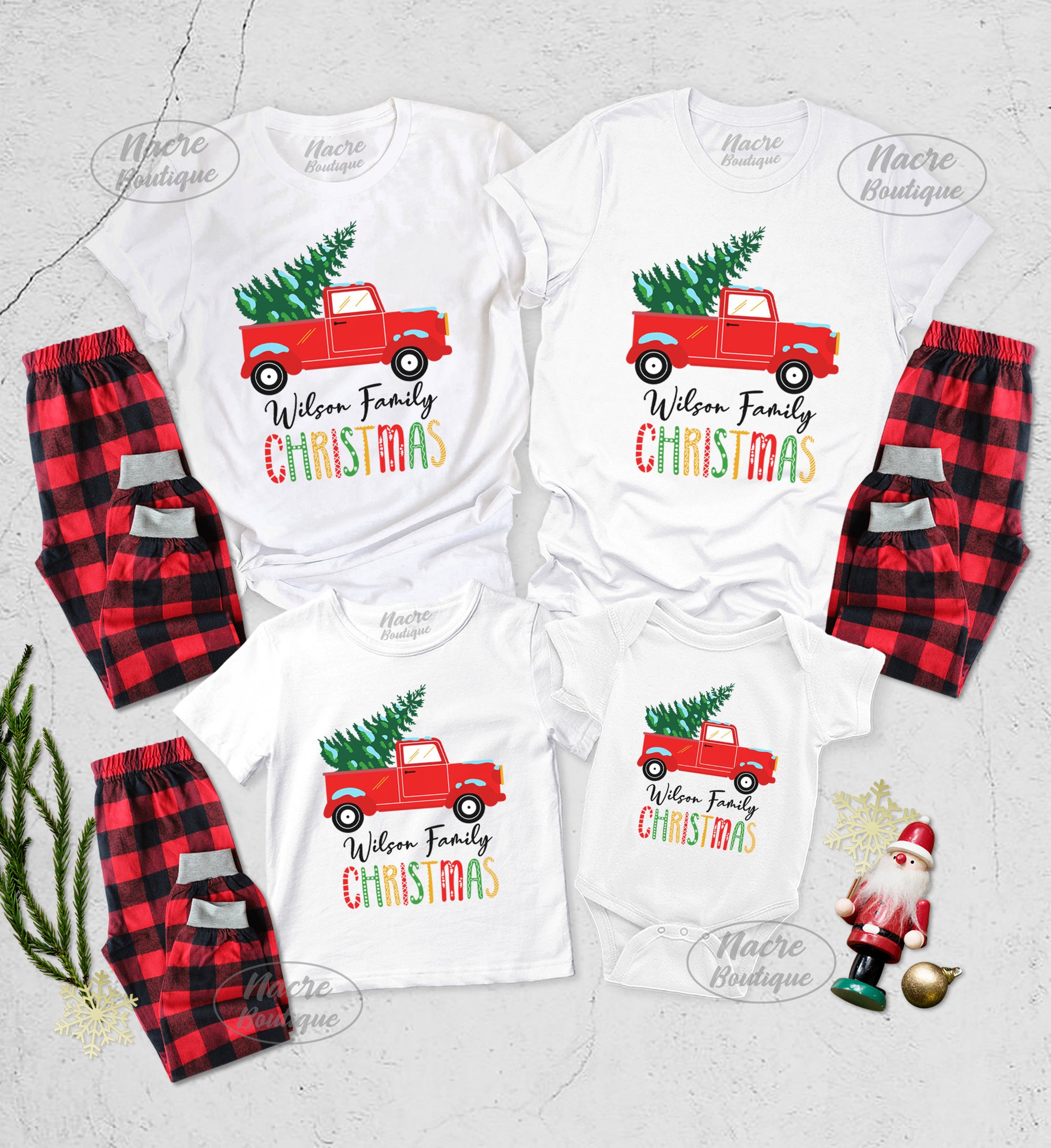 Personalized Matching Family Christmas Shirt, Matching Family Xmas Red Truck Shirt, Christmas Tree Shirt, 2025 Matching Family Xmas Tee