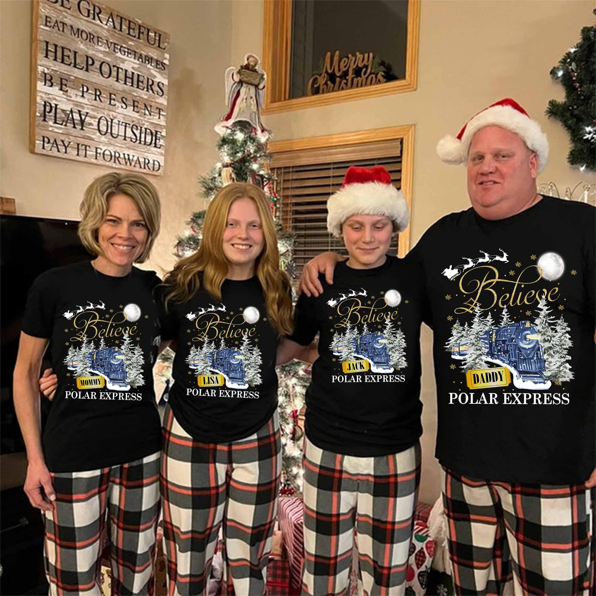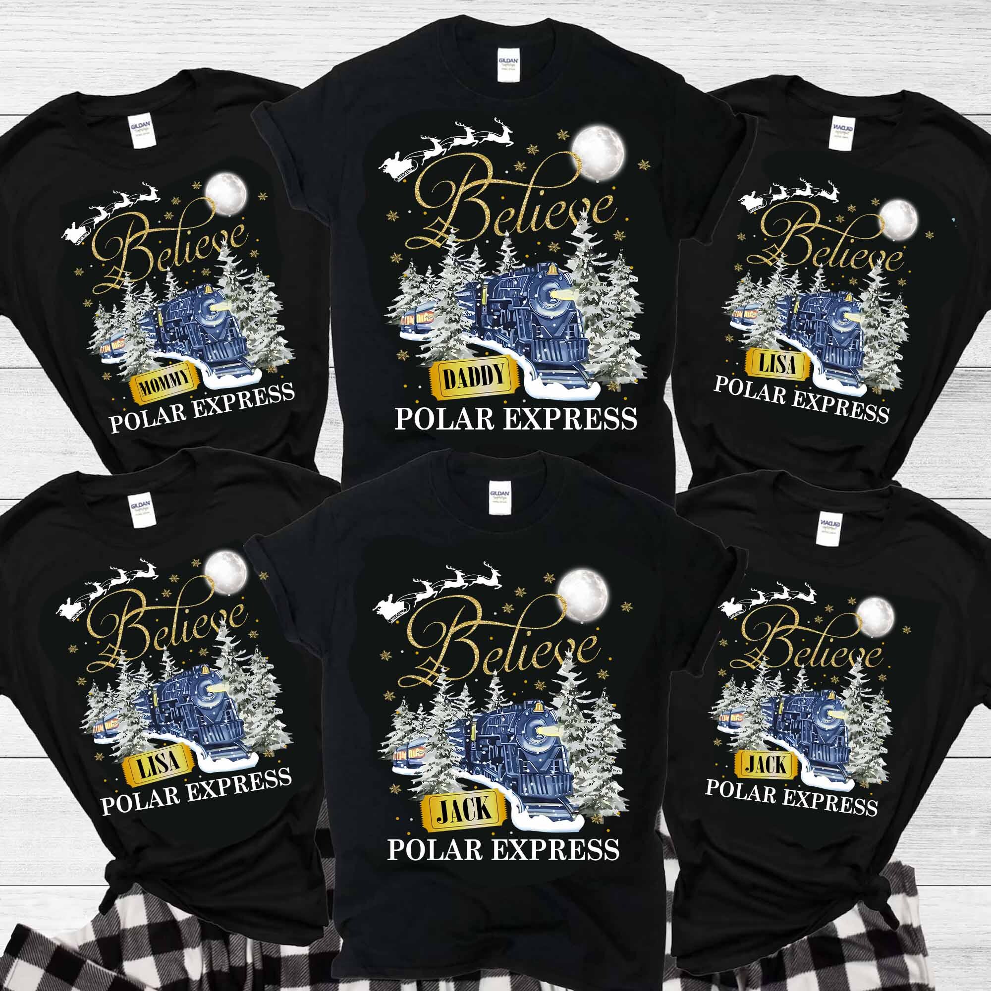 Personalized Polar Express Christmas Shirt, Custom Christmas Family Name Tshirt, Blue Christmas Train Tee, Polar Express Family Matching