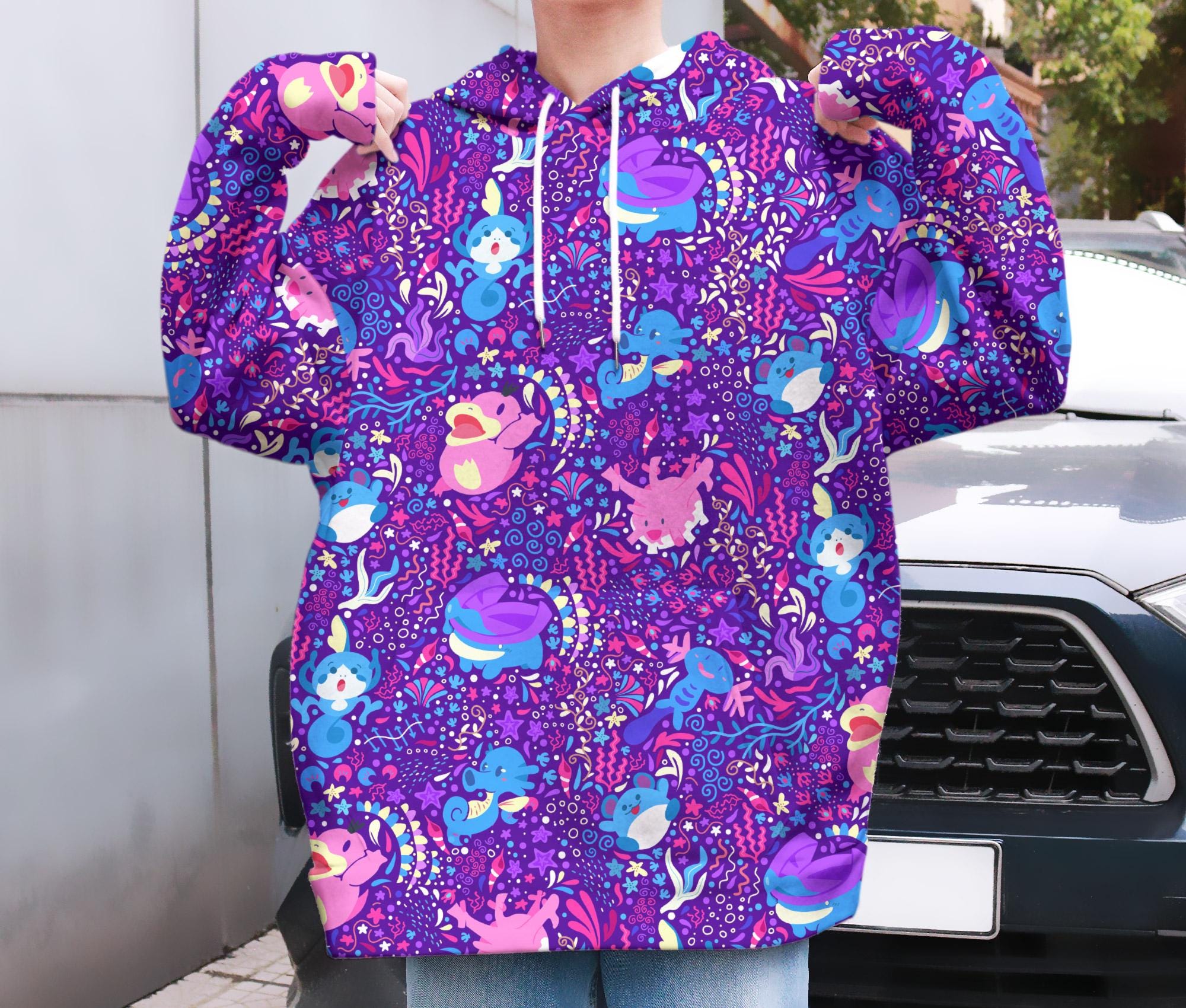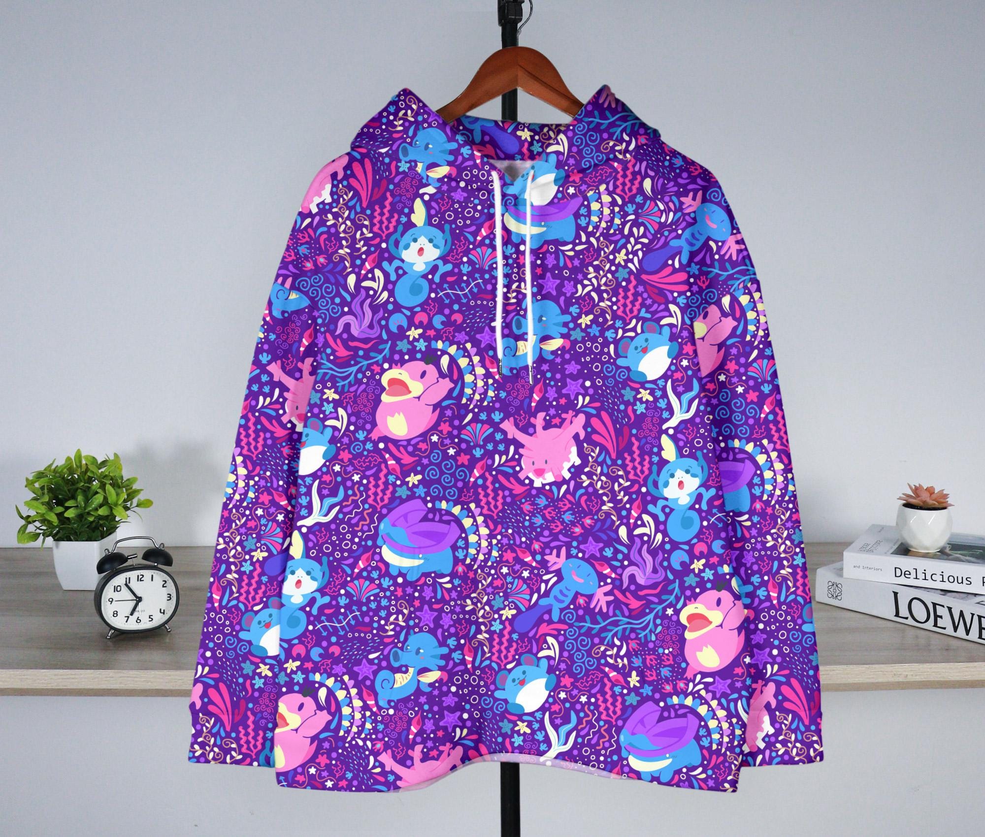 Psyduck and Wooper Kawaii Hoodie, Cozy Unisex Hoodie, Cute Christmas Hoodie, Funny Sweatshirt, Trendy Graphic Hoodie, Unique Gift Idea