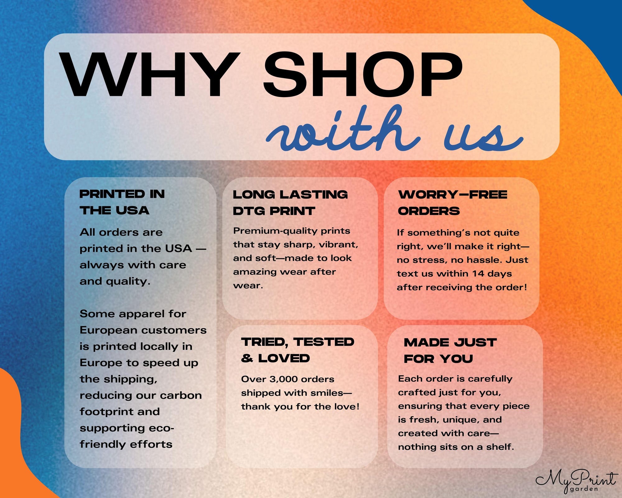 While most orders arrive within the estimated timeframe, occasional carrier delays can occur. MyPrintGarden is not responsible for delays once an order has been dispatched, and we do not offer refunds or returns for such delays. We cannot guarantee any specific delivery date, whether with standard or priority shipping. To help ensure your order arrives in time, we recommend upgrading to priority shipping or placing your order well in advance of your event.