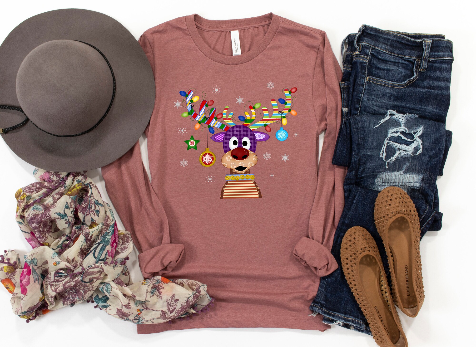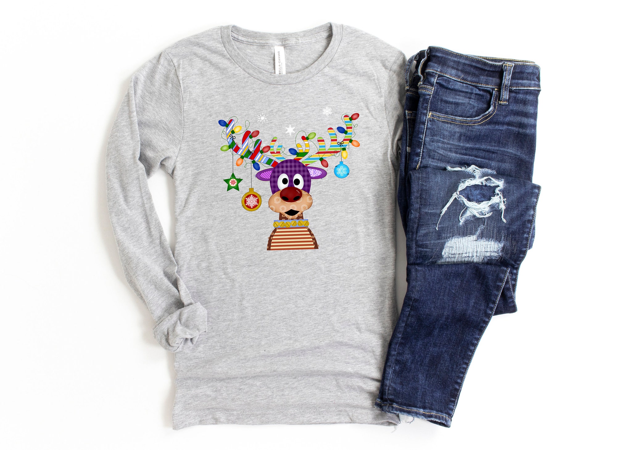 Reindeer Christmas Long Sleeves Shirt, Christmas lights , Peeping Reindeer Shirt, Merry Christmas Shirt, Christmas Family Shirt, Xmas antler