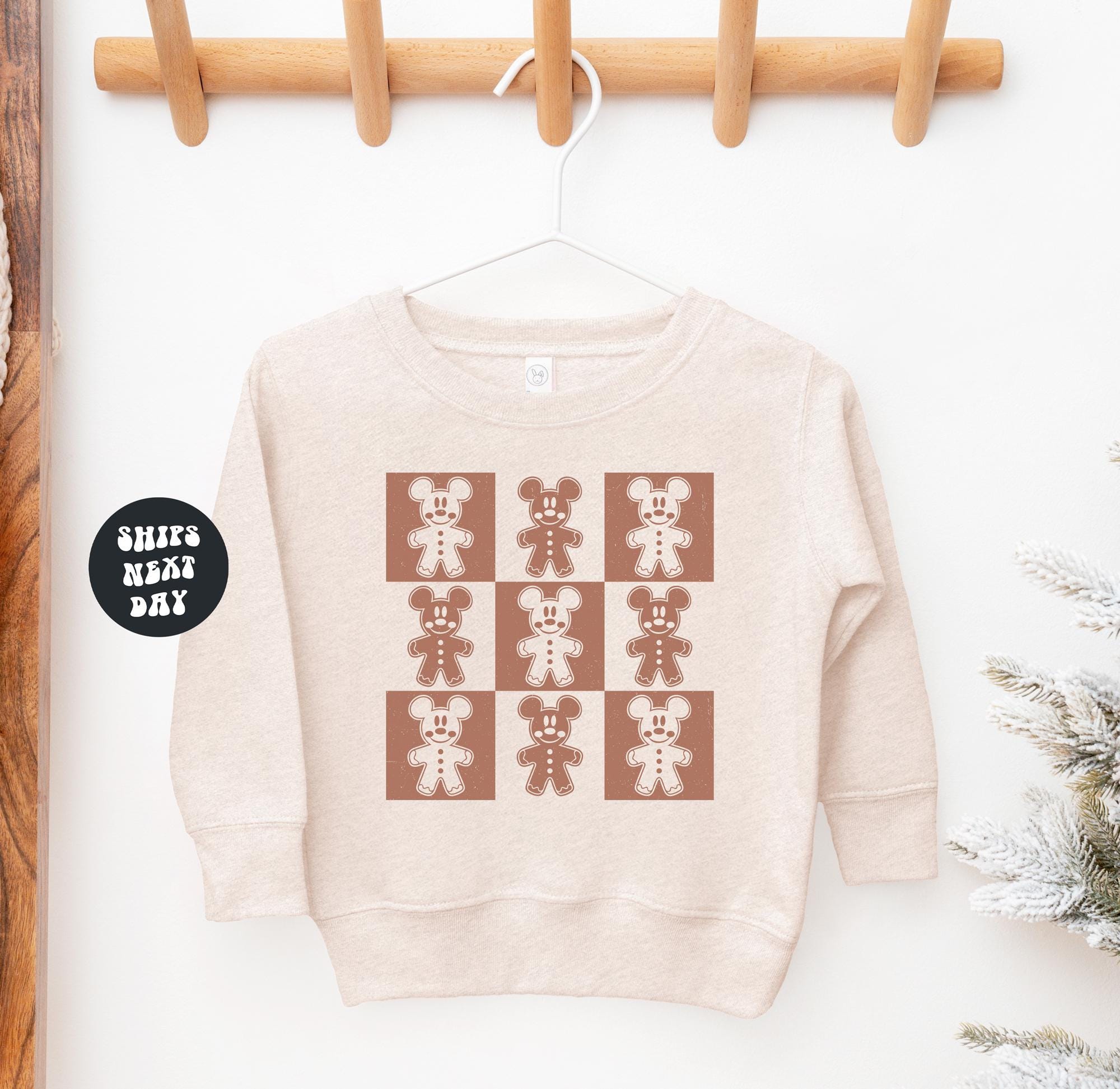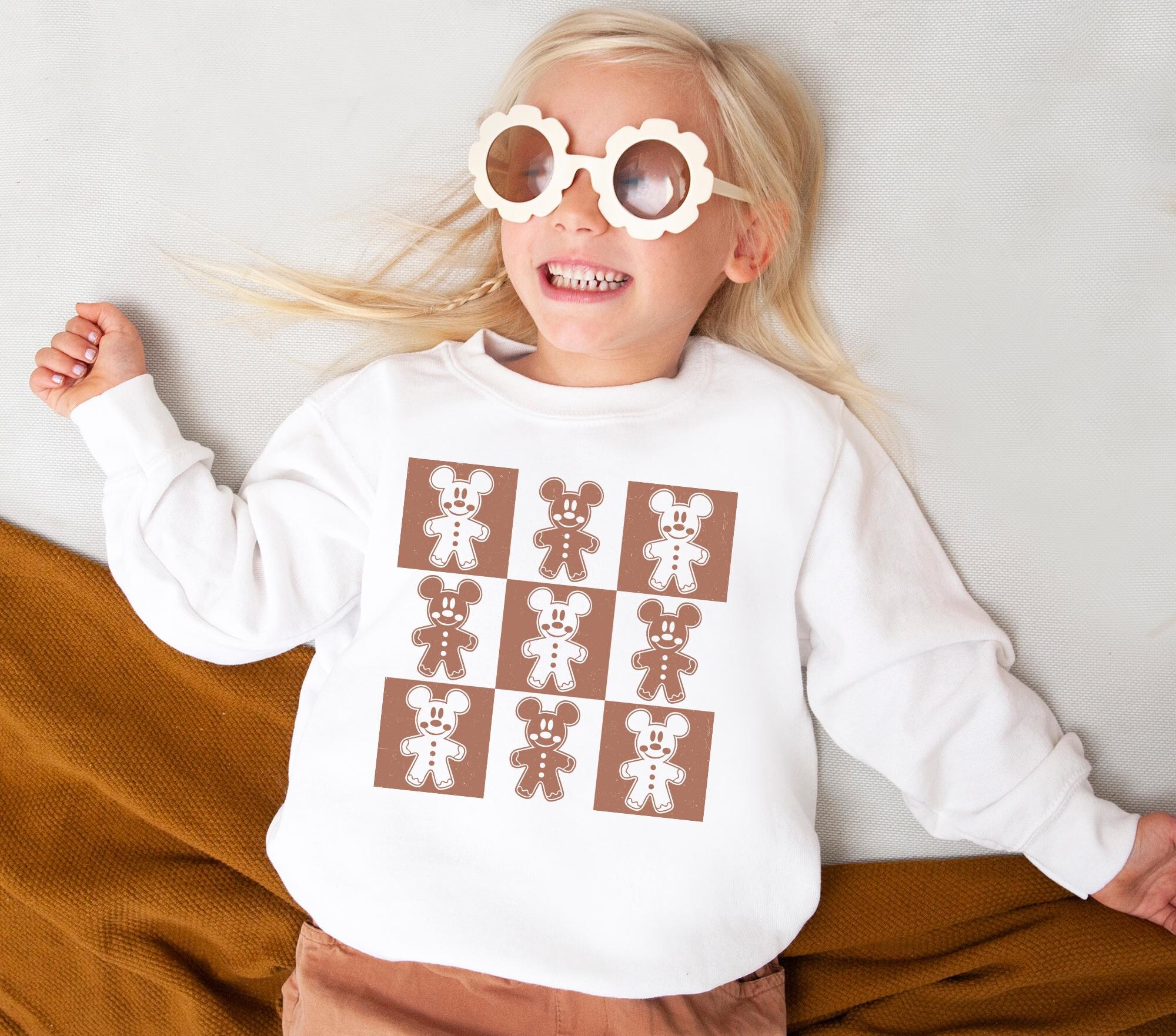 Retro Disney Checkered Gingerbread Sweatshirt Mickey Gingerbread Distressed Christmas Sweatshirt Holiday Season Sweatshirt Christmas Gift