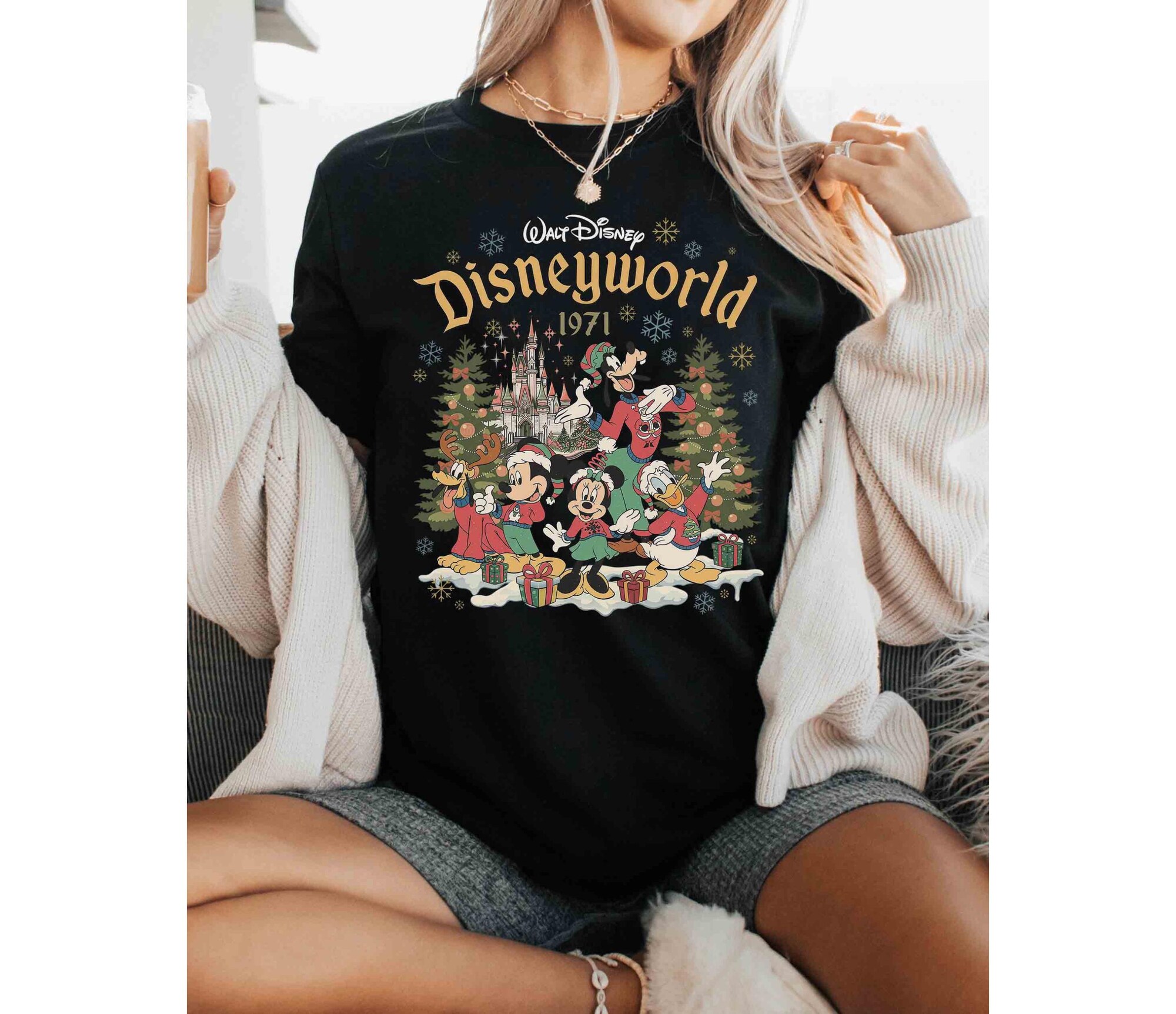 Retro Disneyworld Christmas Sweatshirt, Mickey and Friends Christmas Hoodie, Disney Most Magical Place On Earth Est. 1971 Crewneck, 133710
