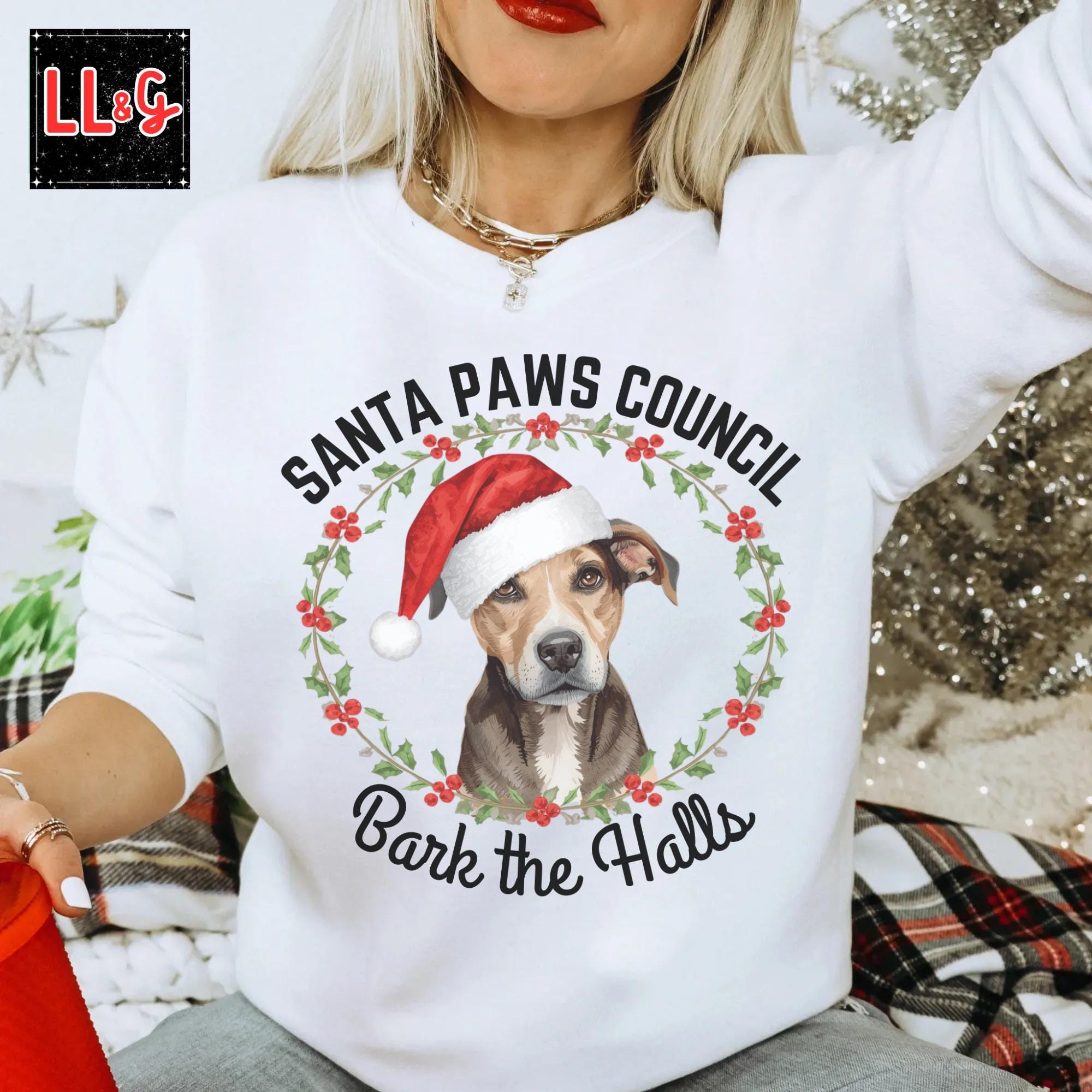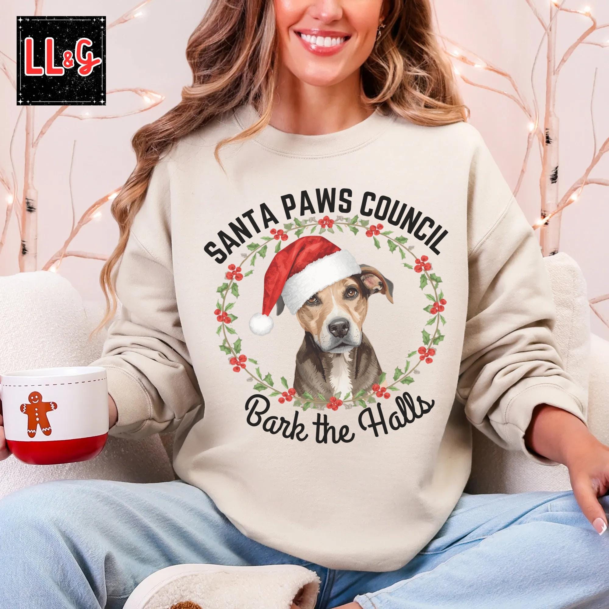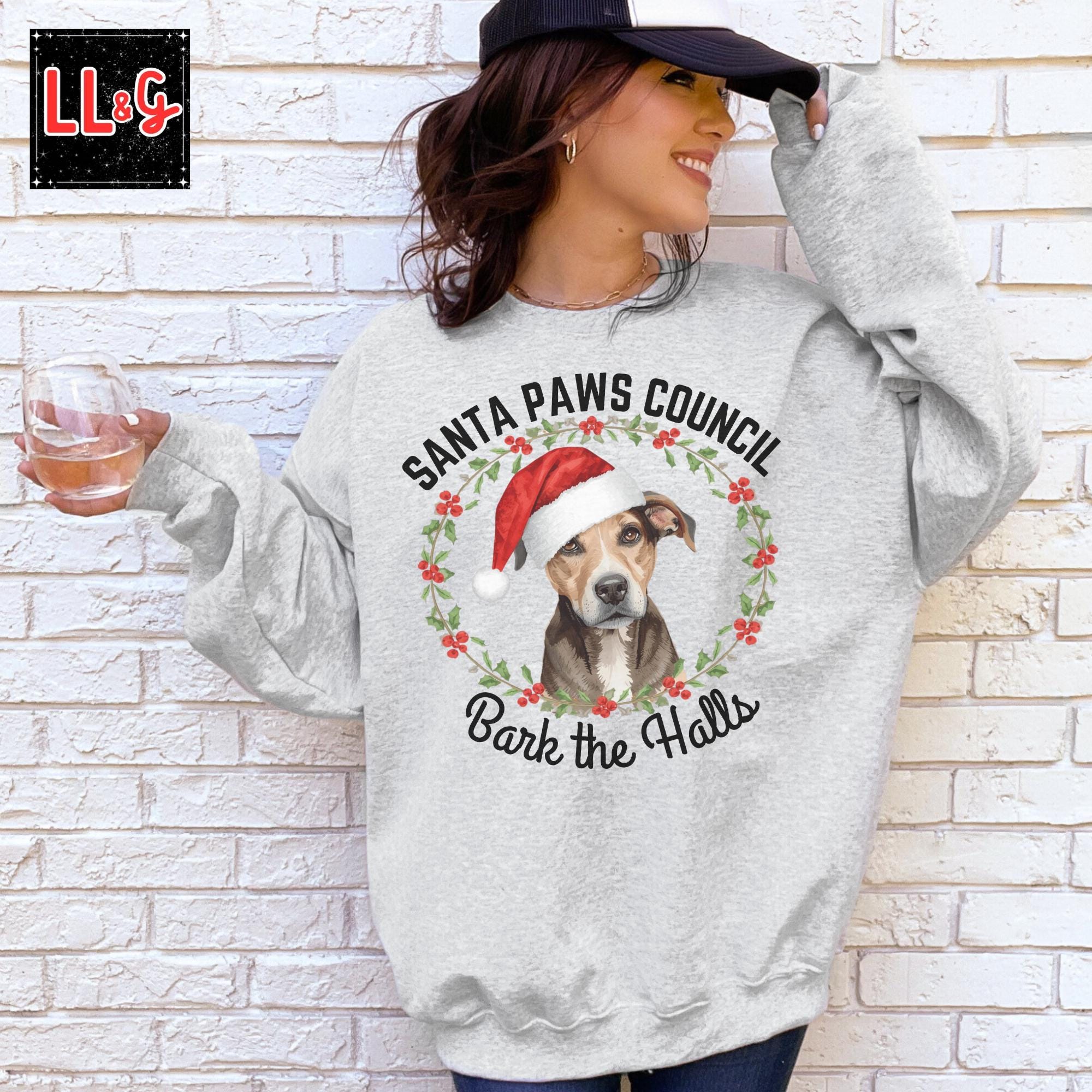 Santa Paws Council – Bark the Halls : Santa Dog Christmas Crewneck Sweatshirt Cute Ugly Christmas Sweater for Dog Lovers Christmas Gift Plus Sizes Up to 5X Dog Christmas Shirt Dog Christmas Sweatshirt Dog Shirt Christmas Dog Sweatshirt Christmas Shirt Xmas Shirt Holiday Sweater for Winter Cozy Sweatshirt Ugly Xmas Shirt