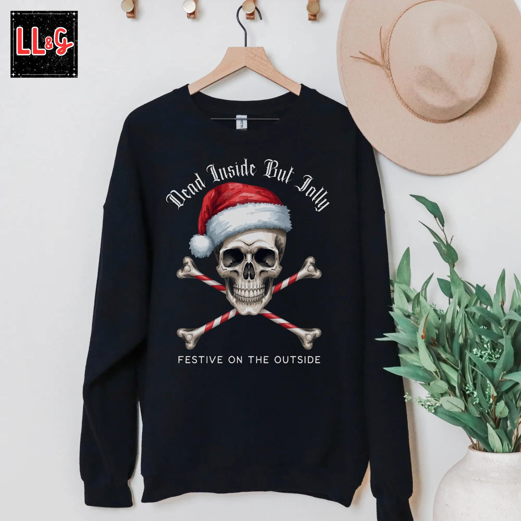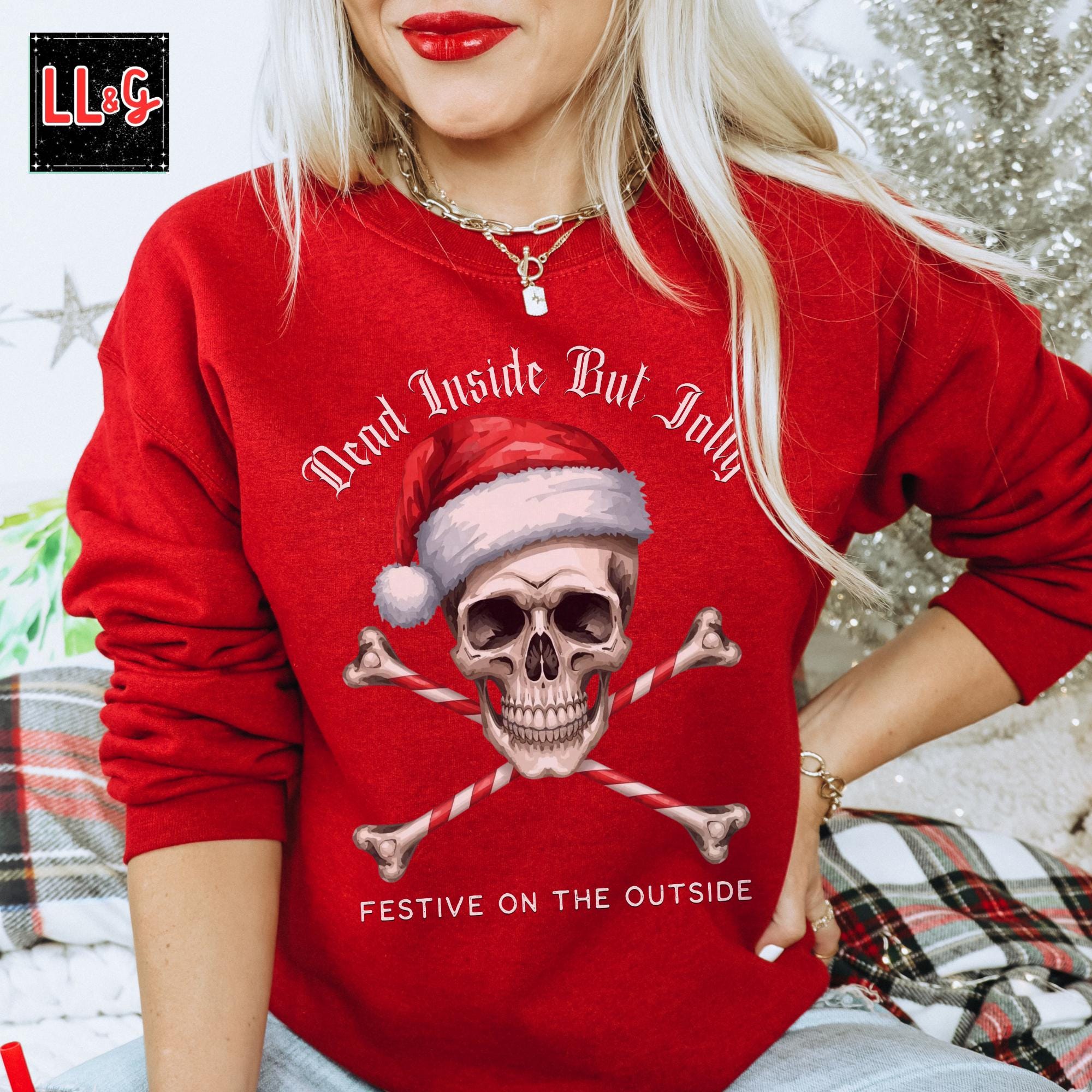 This Dead Inside But Jolly, Festive on the Outside Sweatshirt is perfect for those who love gothic style and want to add a dark twist to their Christmas wardrobe. It’s ideal for anyone looking for a unique holiday sweater that stands out from the traditional festive designs. This sweatshirt is great for celebrating Creepmas and makes a great Christmas gift for goth clothing enthusiasts. Available in plus sizes up to 5X.