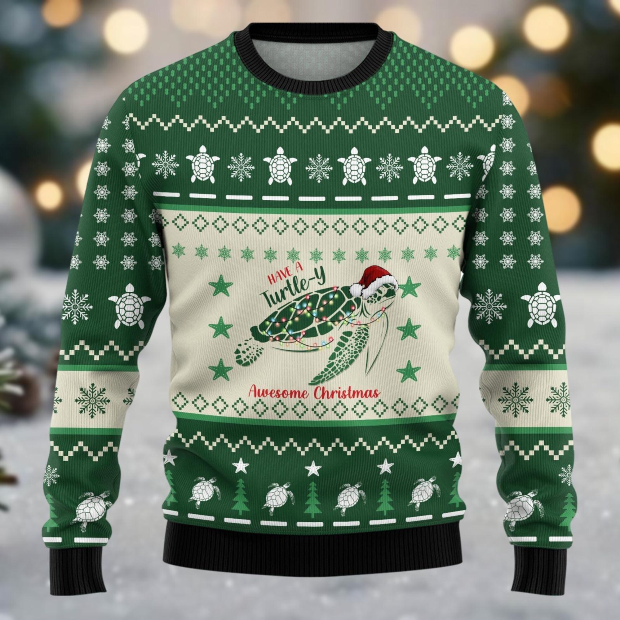 Santa Turtle Ugly Sweater, Animal Ocean Lights Xmas Sweater, Turtle Holiday Sweater, Gift For Women Men Kid, Xmas Party Gift