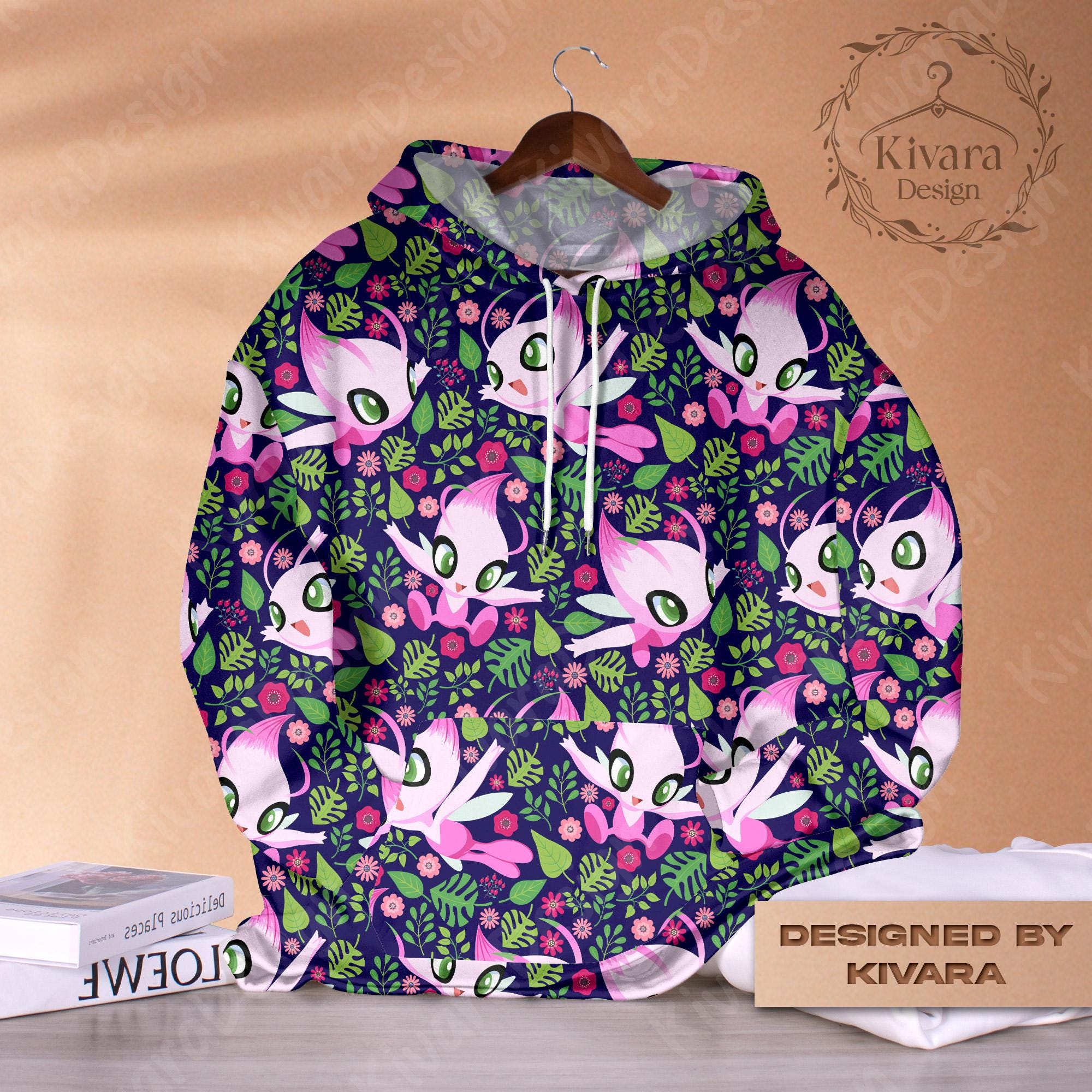 Bring a touch of mythical magic to your wardrobe with this Shiny Celebi hoodie sweatshirt. Featuring the rare and stunning Shiny Celebi in its vibrant green and pink color palette, this design captures the whimsical charm and legendary aura of the time-traveling Pokemon. Made from soft, high-quality fabric, this hoodie offers both style and comfort, perfect for everyday wear or cozy lounging. Its detailed, high-resolution print ensures that every element of Celebi’s unique Shiny form stands out beautifully.