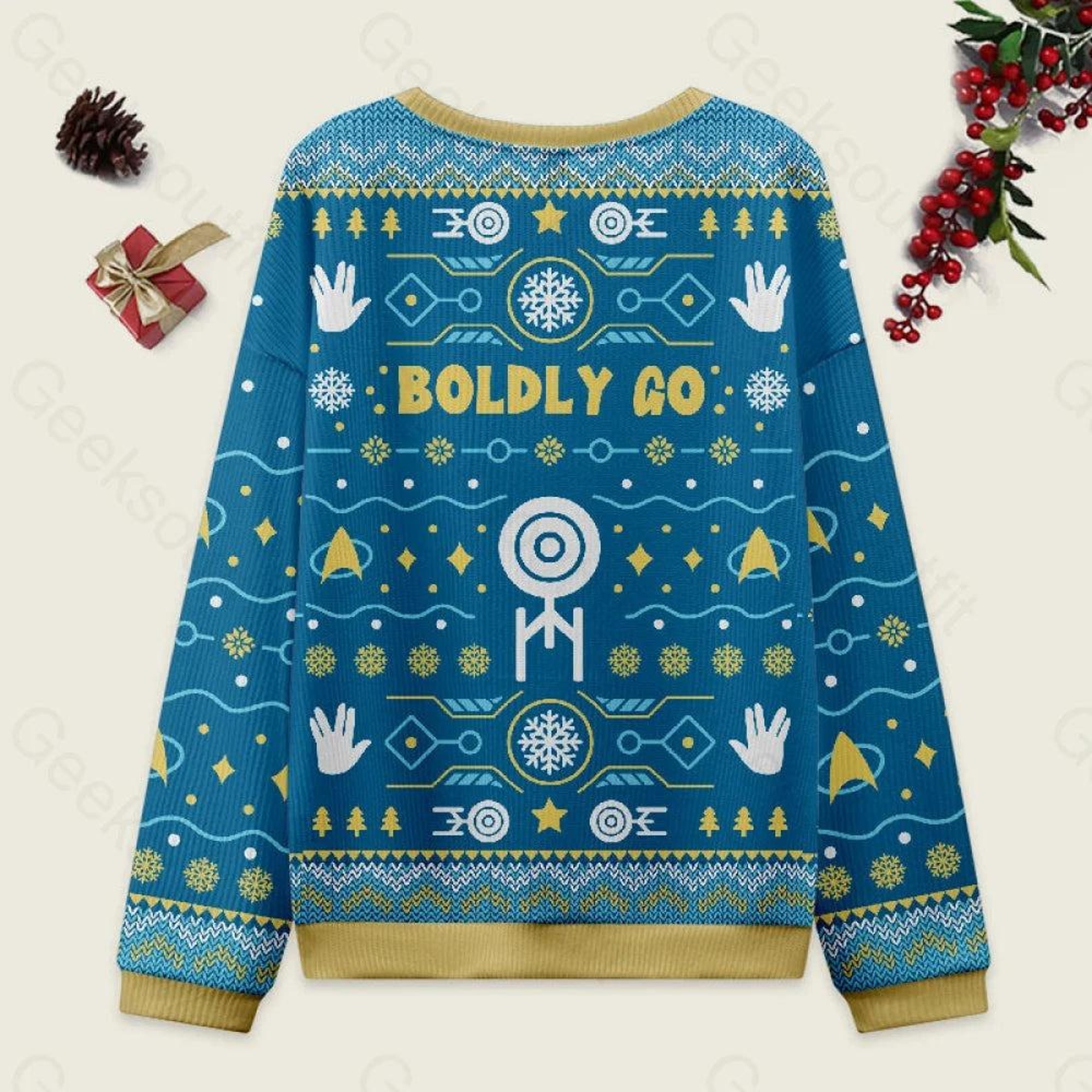 Star Trek Boldly Go Ugly Christmas Sweater, All Over Print Holiday Jumper Ugly Sweater, Funny Sci-Fi Xmas Pullover Gift for Trekkie Fans
