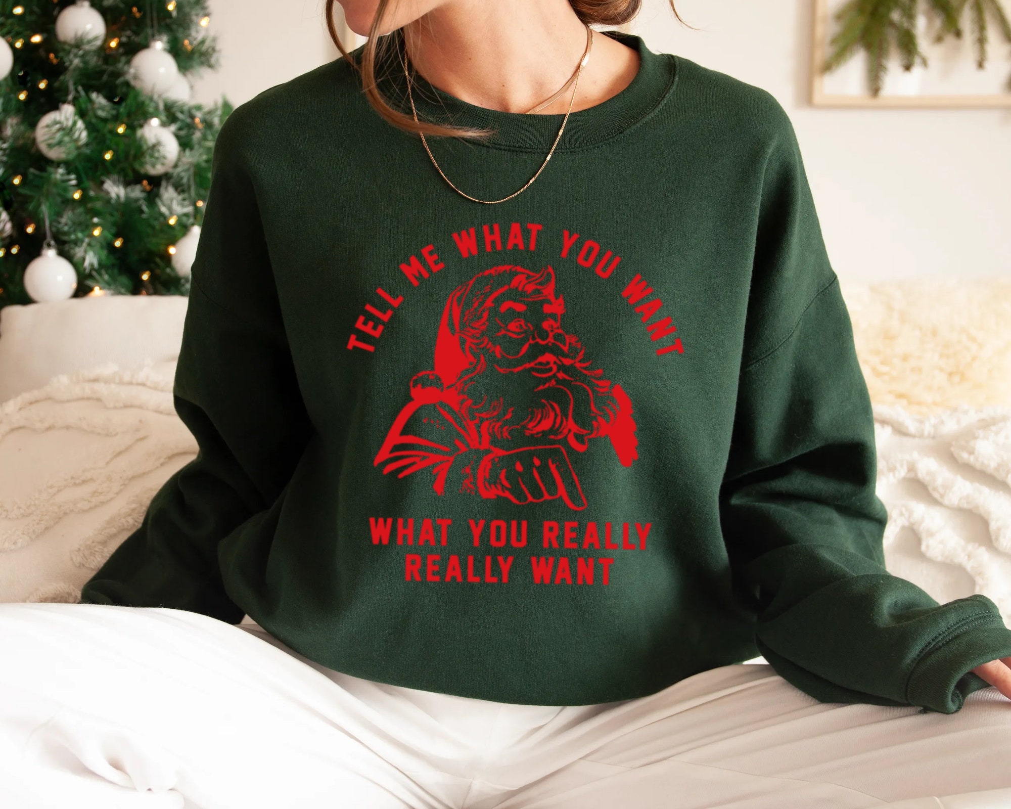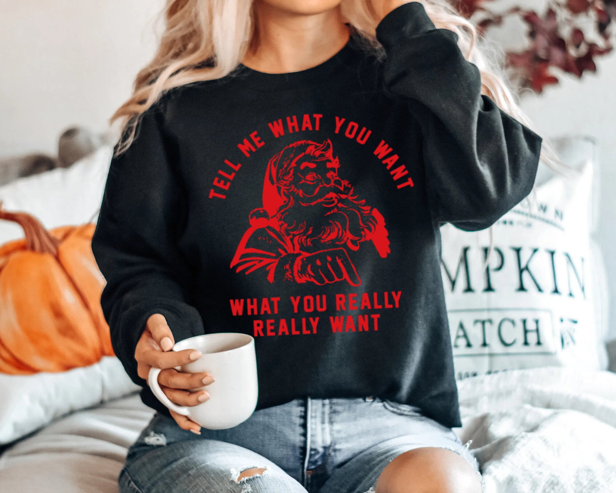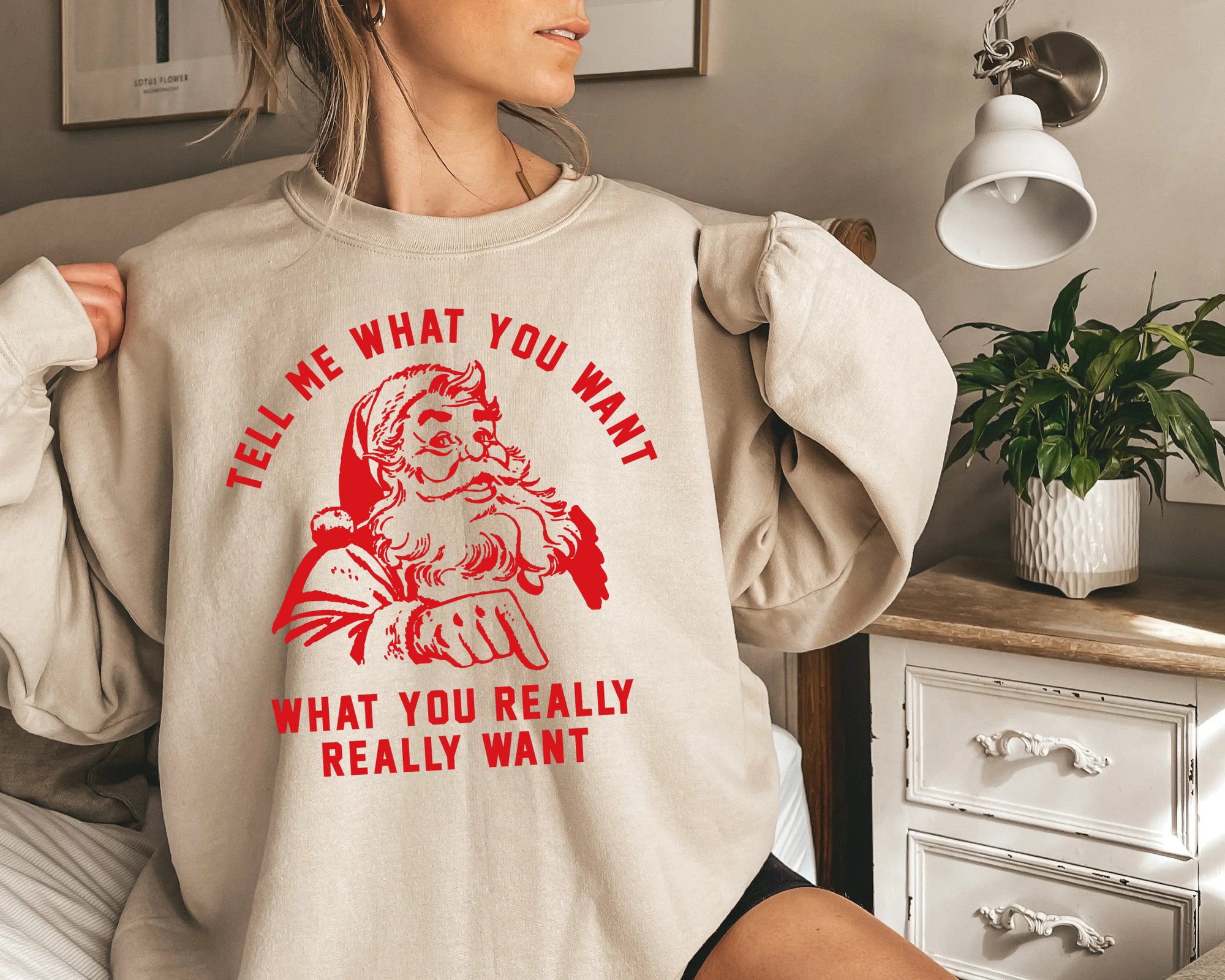 Tell me What You Really Really Want Sweatshirt, Retro Santa Christmas Sweatshirt, Funny Santa Beard Shirt, Cute Christmas for Women, Santa Xmas, Vintage Santa Tee, Nostalgic Christmas Days, Funny Santa Beard Shirt, Cute Christmas for Women, Graphic Christmas Tee, Santa Xmas, 90’s Rap Tee