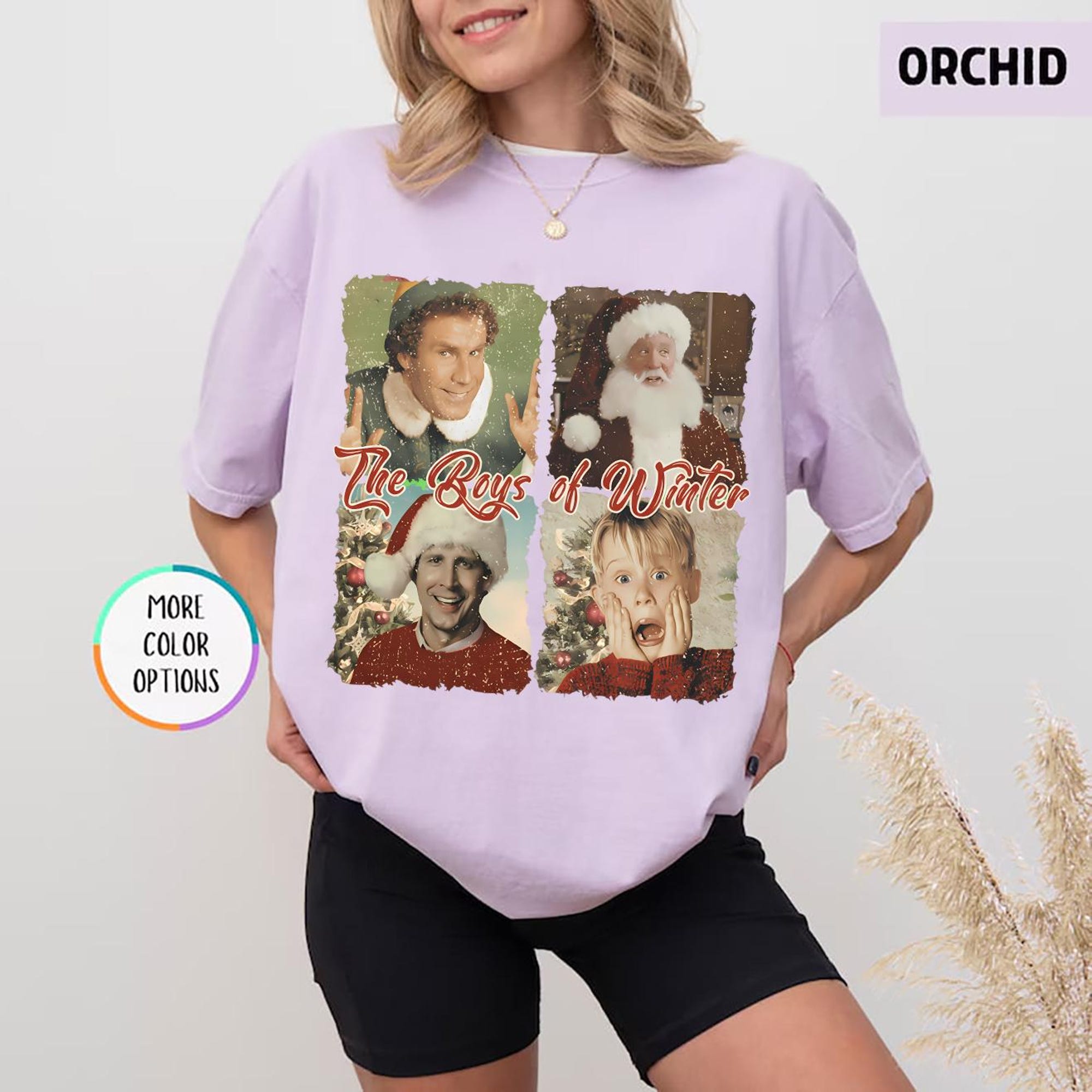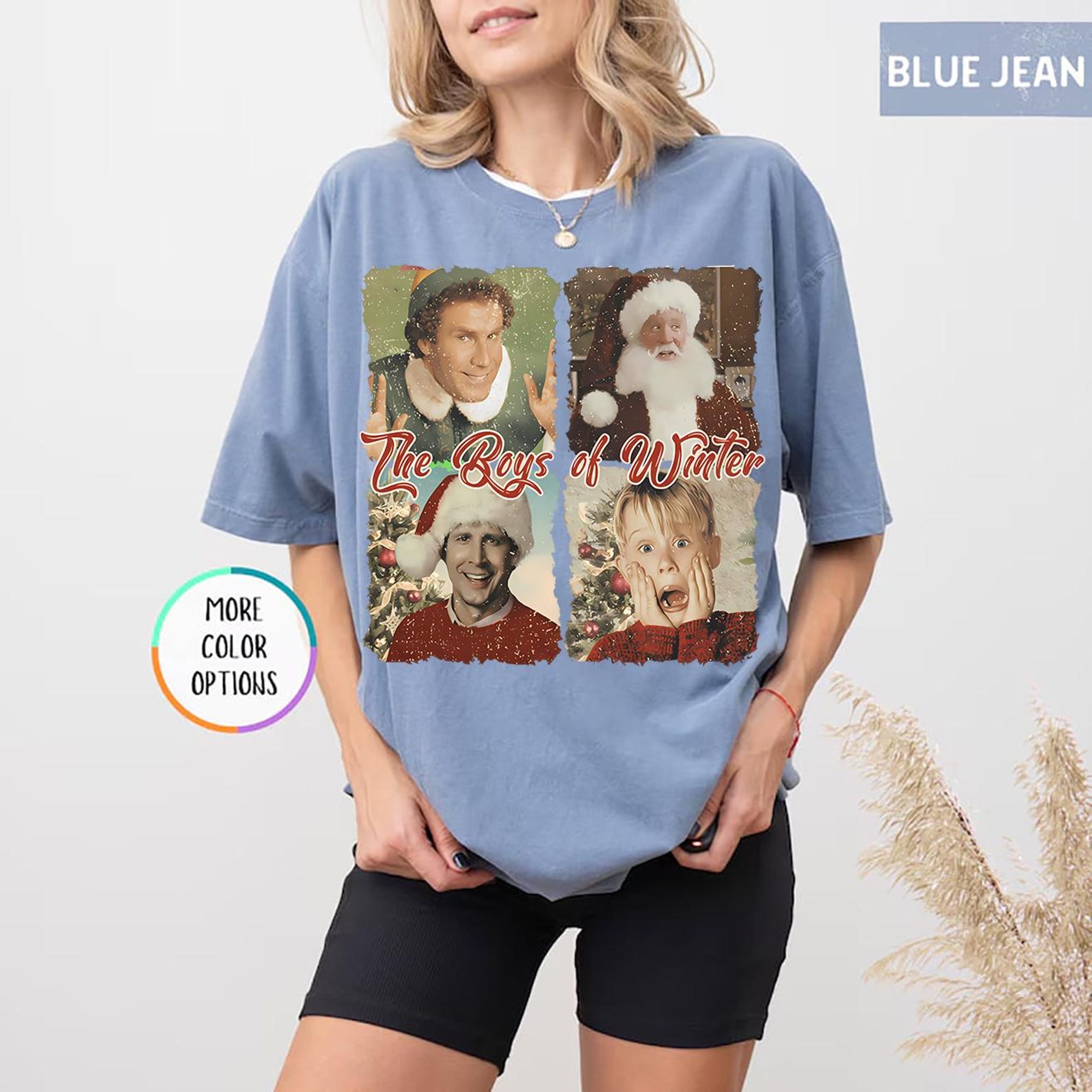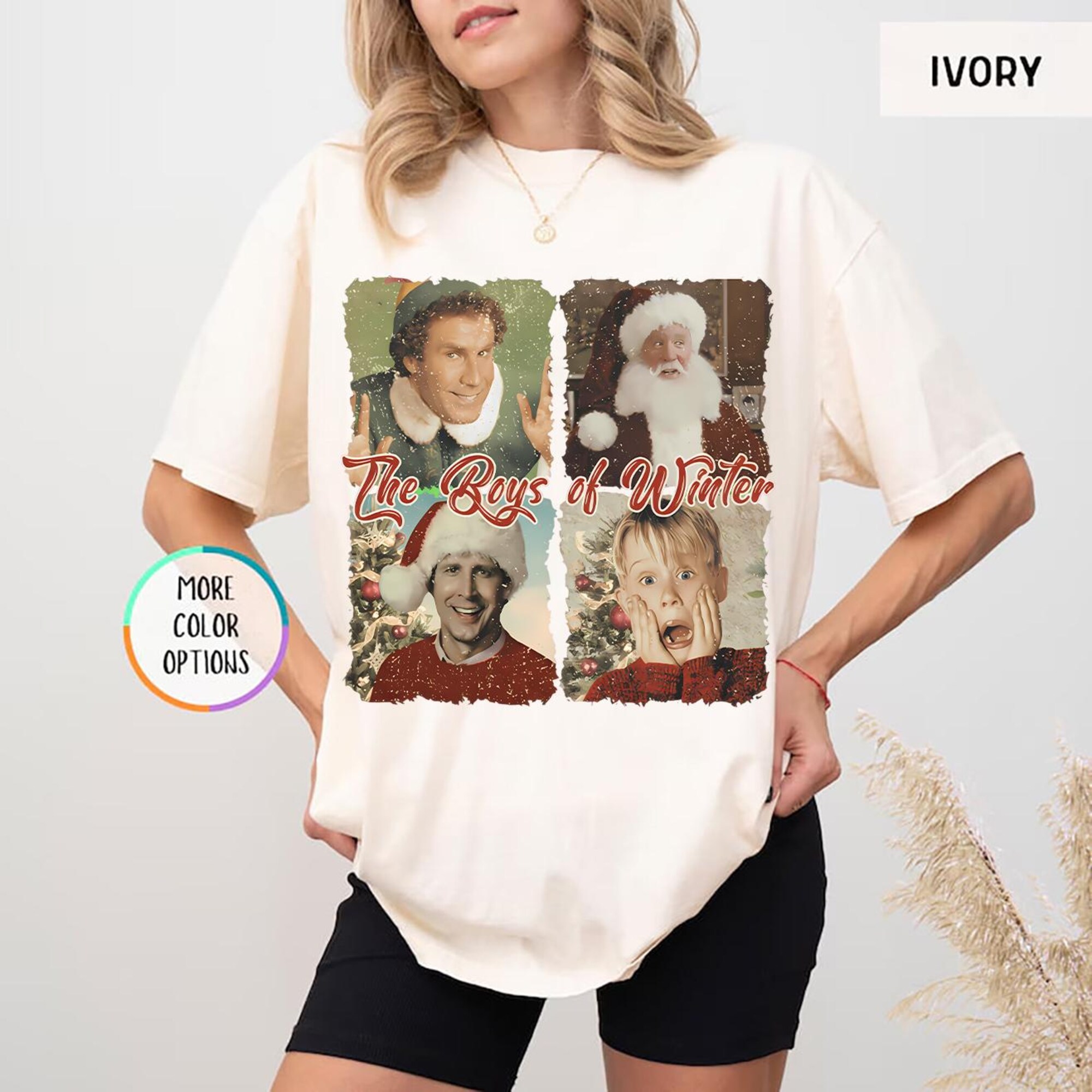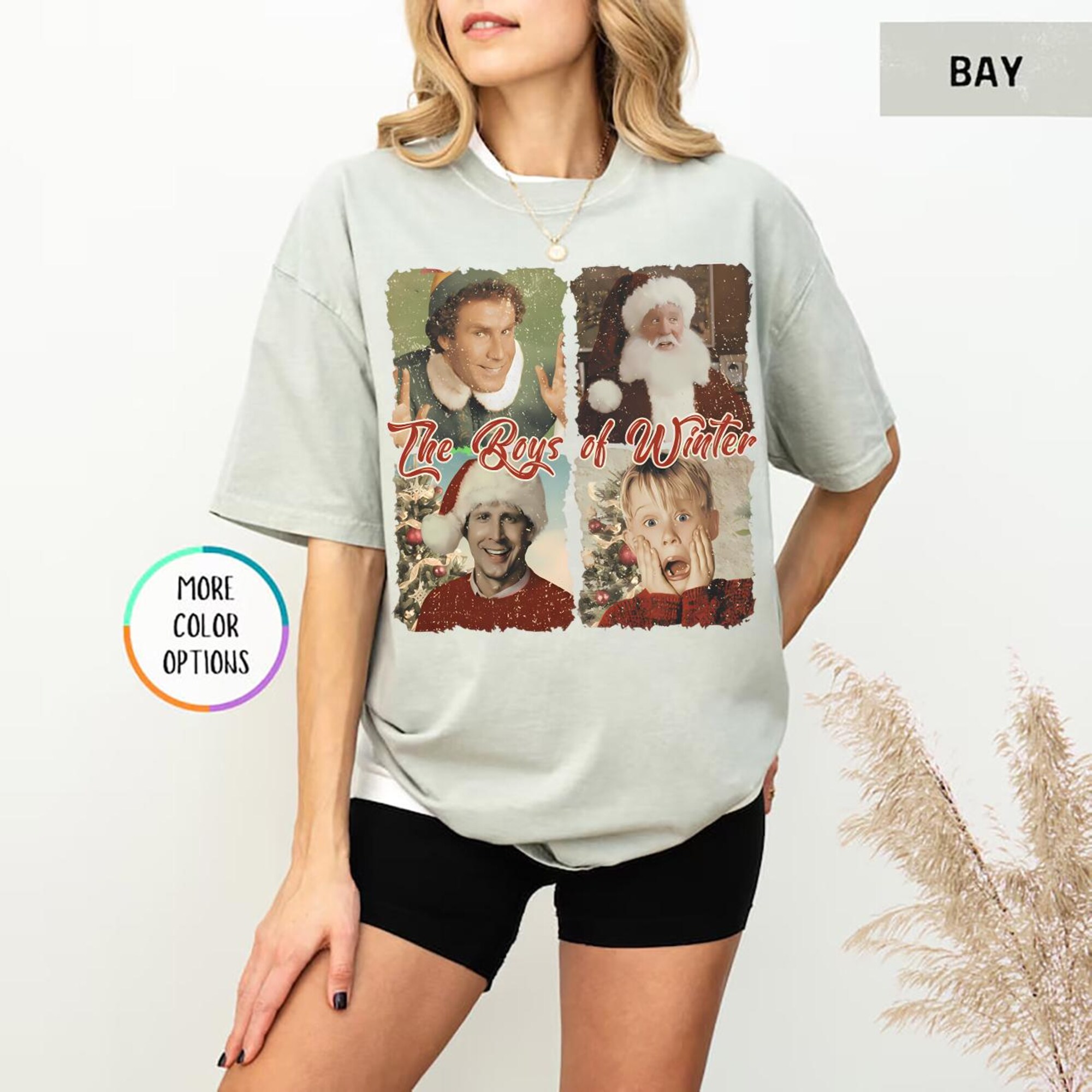 The Boys of Winter Christmas Shirt – Features Buddy the Elf, Santa Claus, Clark Griswold & Kevin McCallister | Classic Funny Holiday Tee