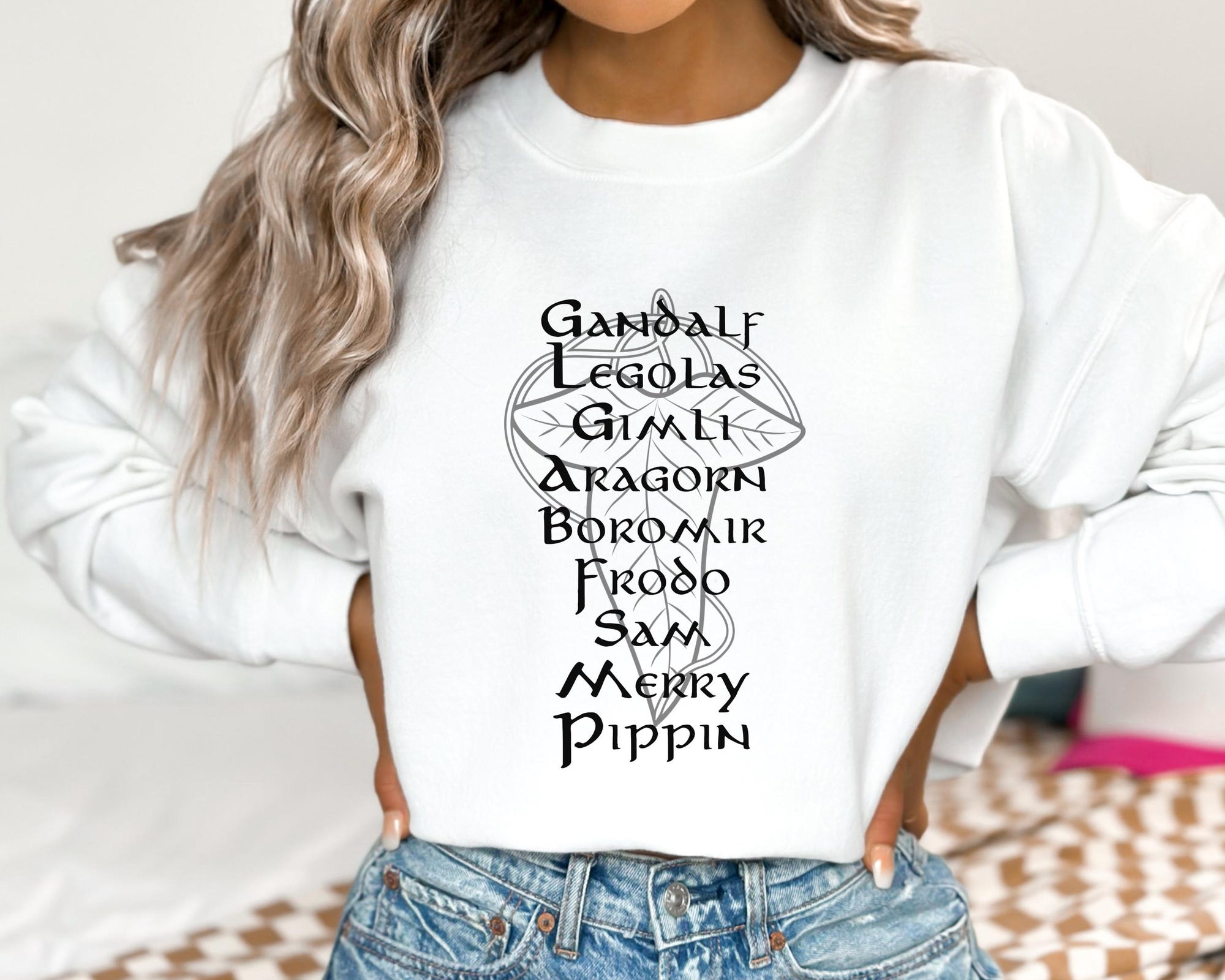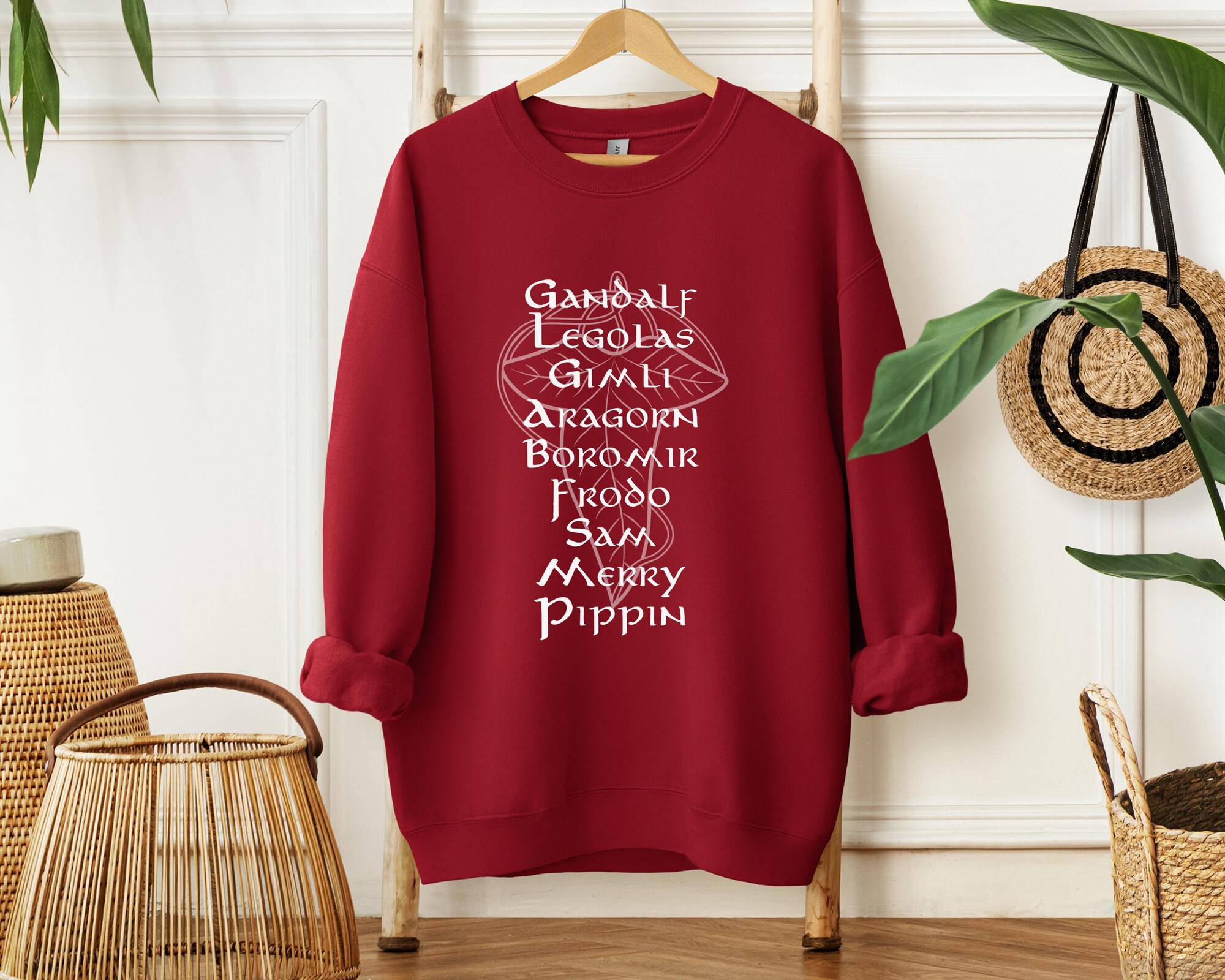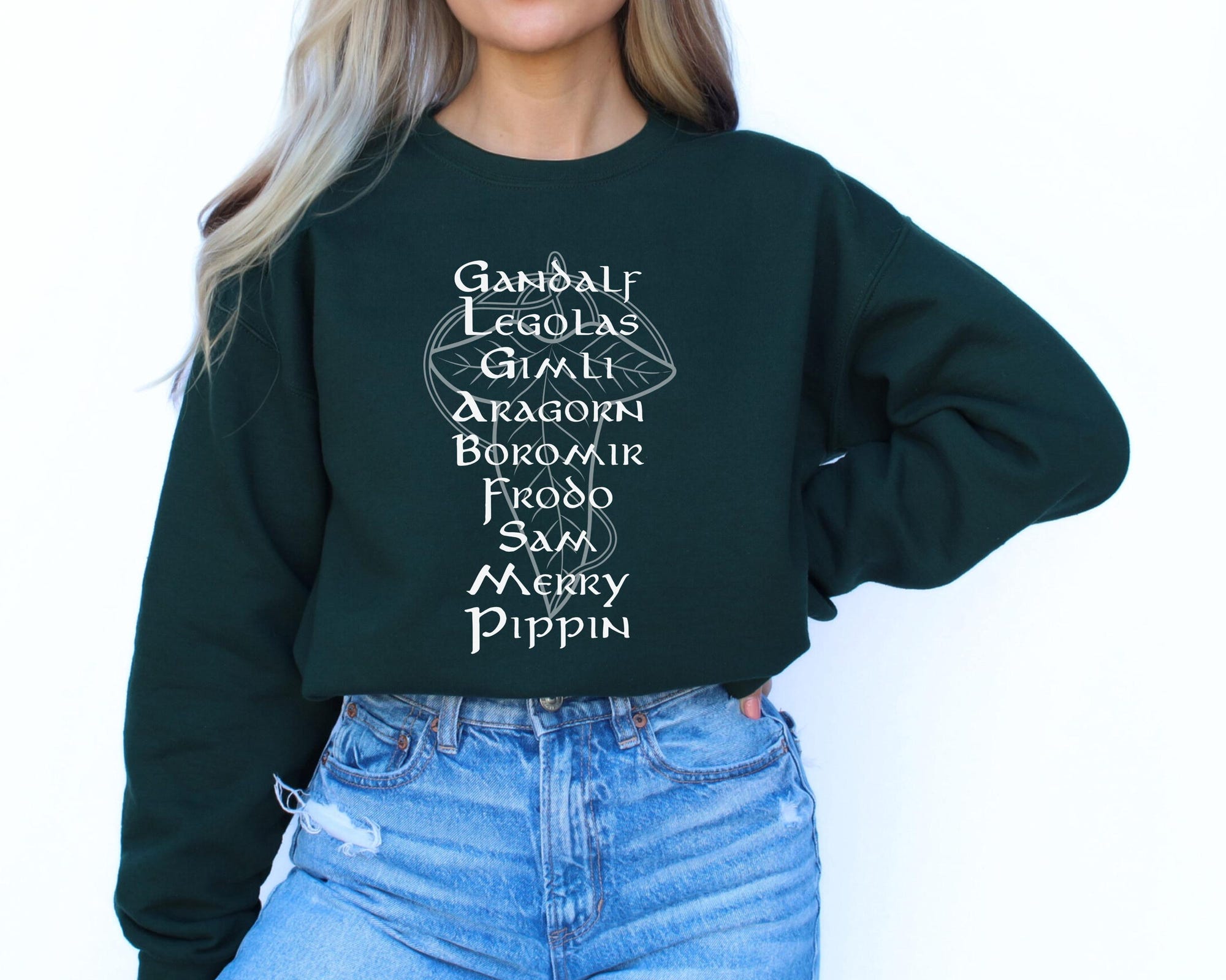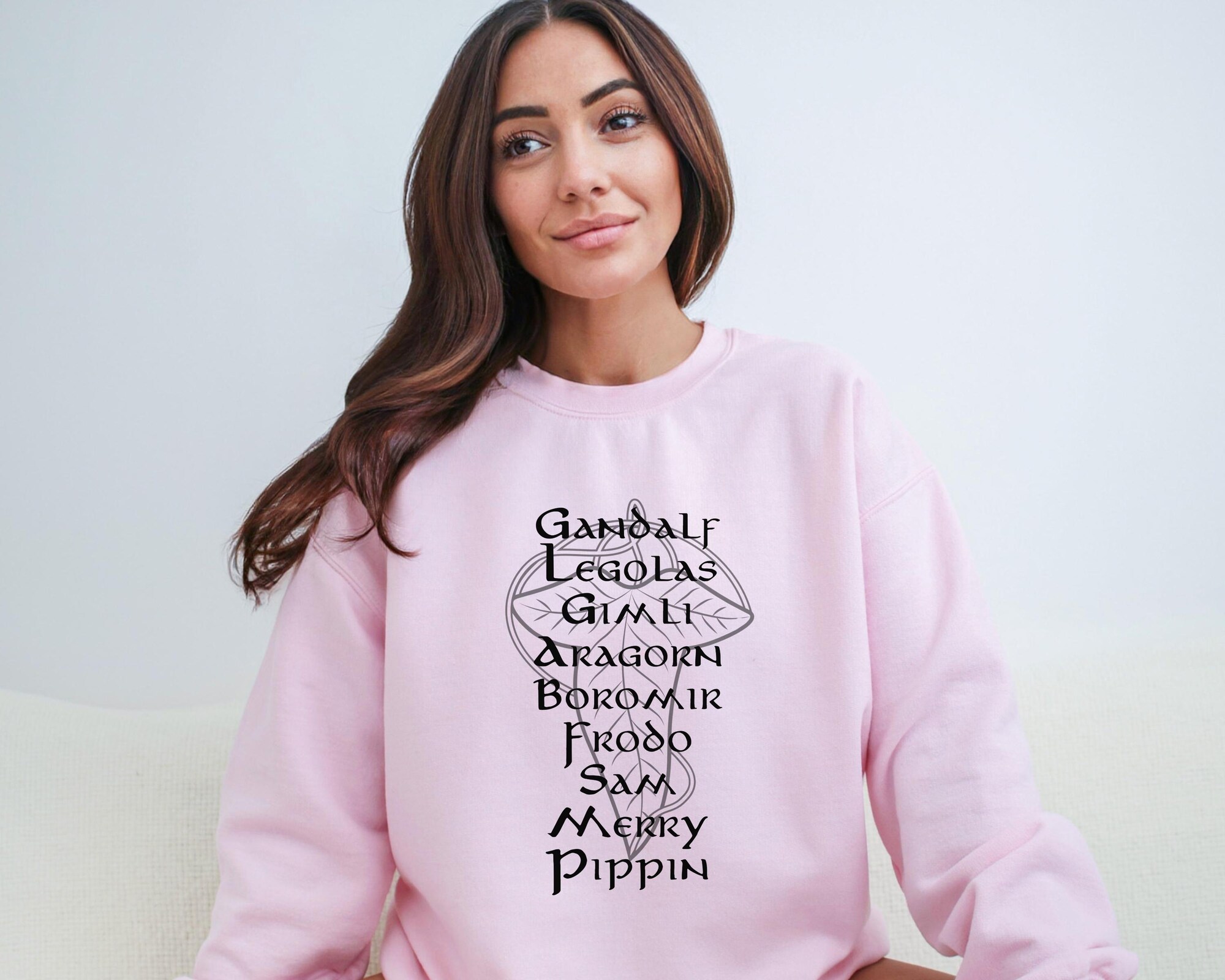 This Gildan Crewneck Sweatshirt is super warm and soft, and the perfect gift for The Lord of The Rings fan. The graphic is of the fellowship of the ring with the names Gandalf, Legolas, Gimli, Aragorn, Boromir, Frodo, Sam, Merry, and Pippin.