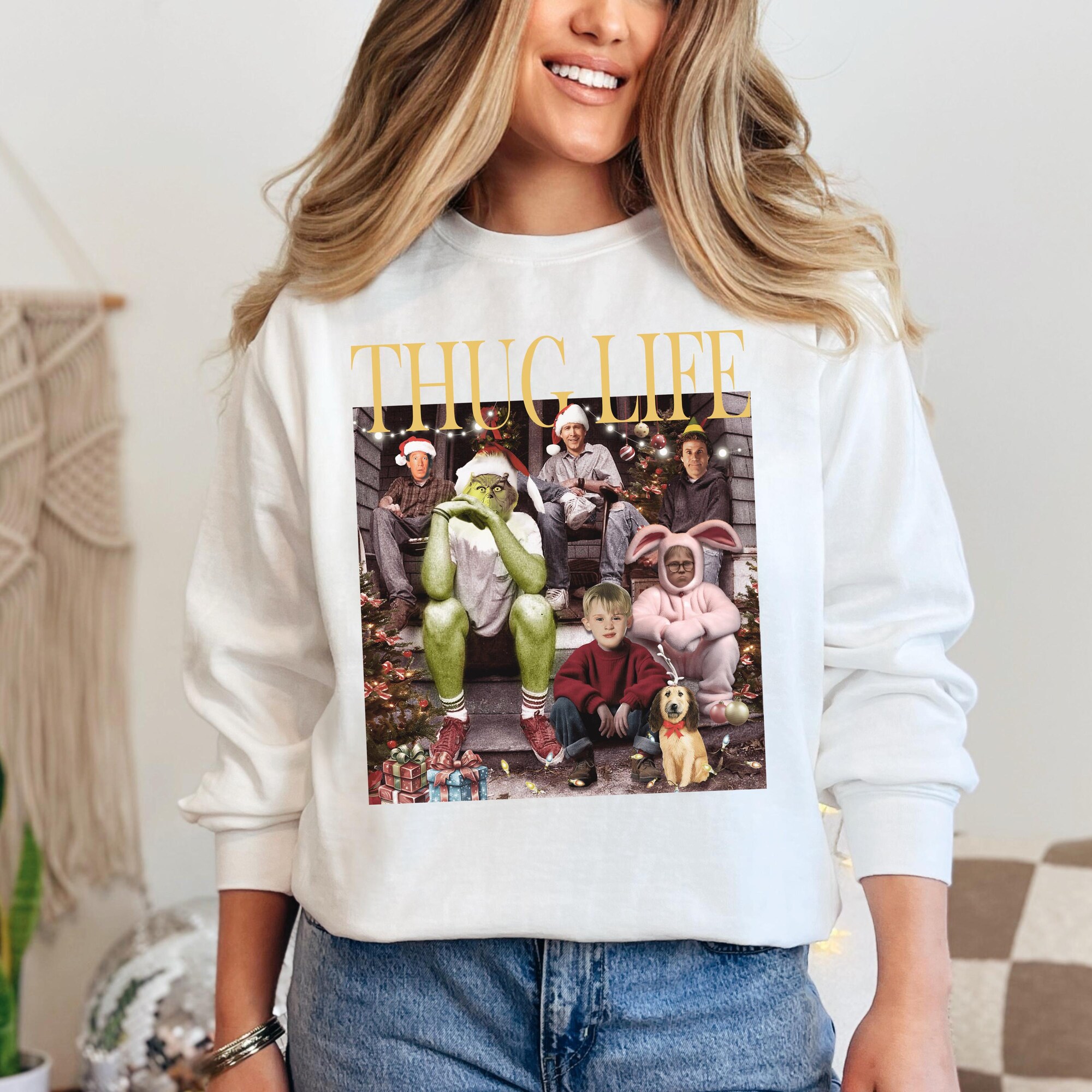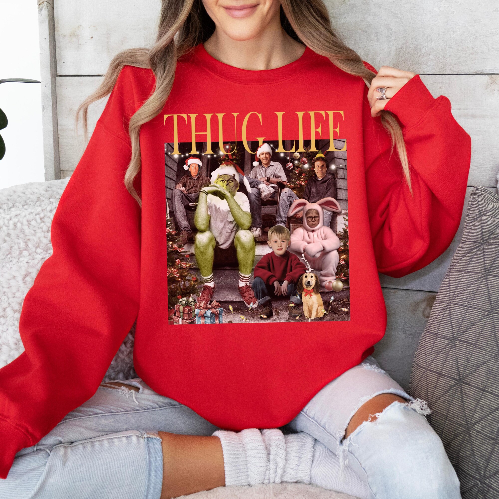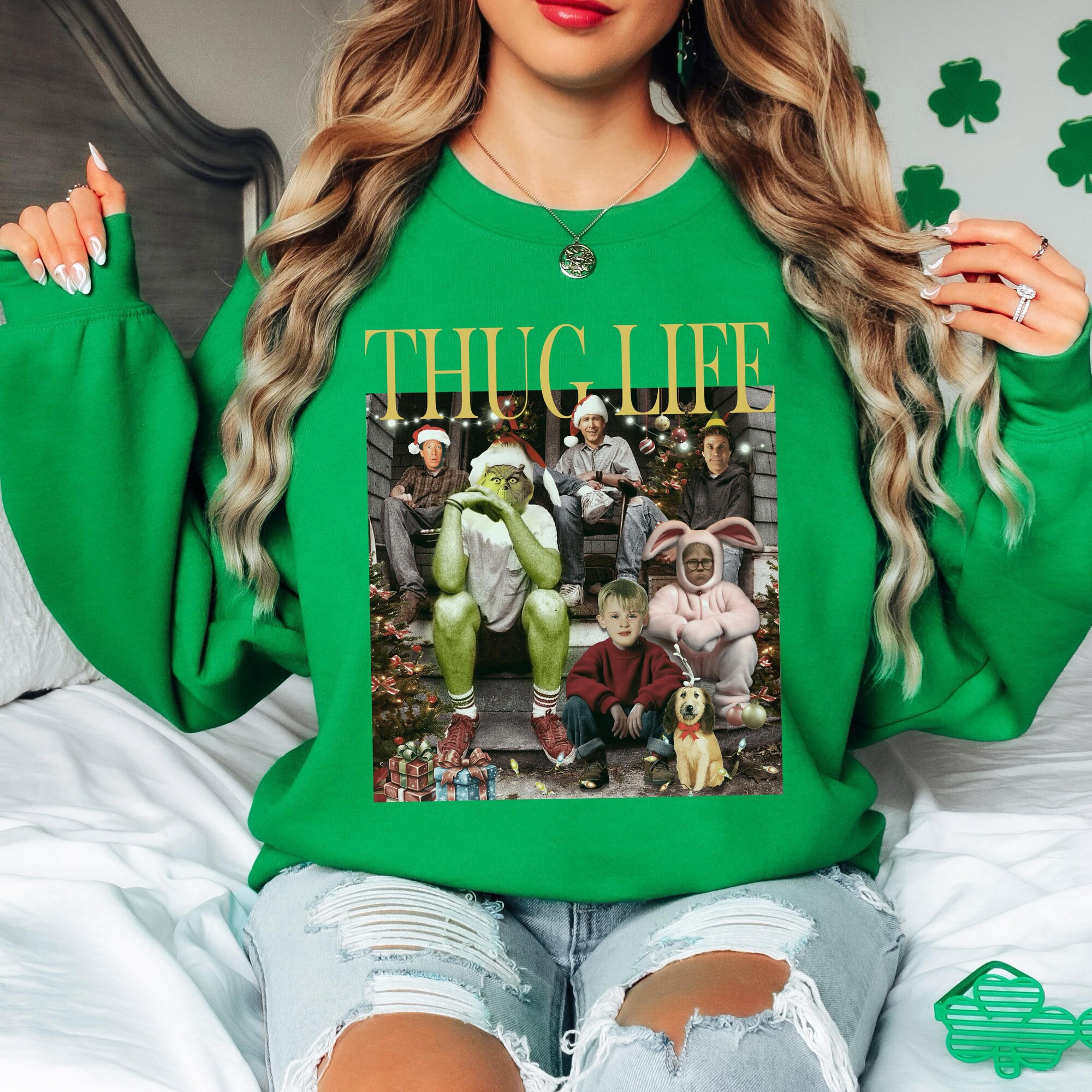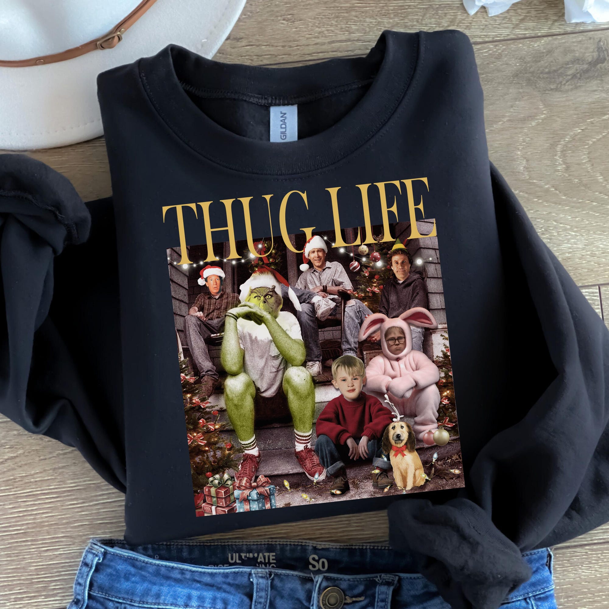 Thug Life Christmas Sweatshirt, Christmas Thug Life Shirt, Christmas Movie Characters Sweatshirt, Retro Thug Life Movie Stars Shirt Grinch