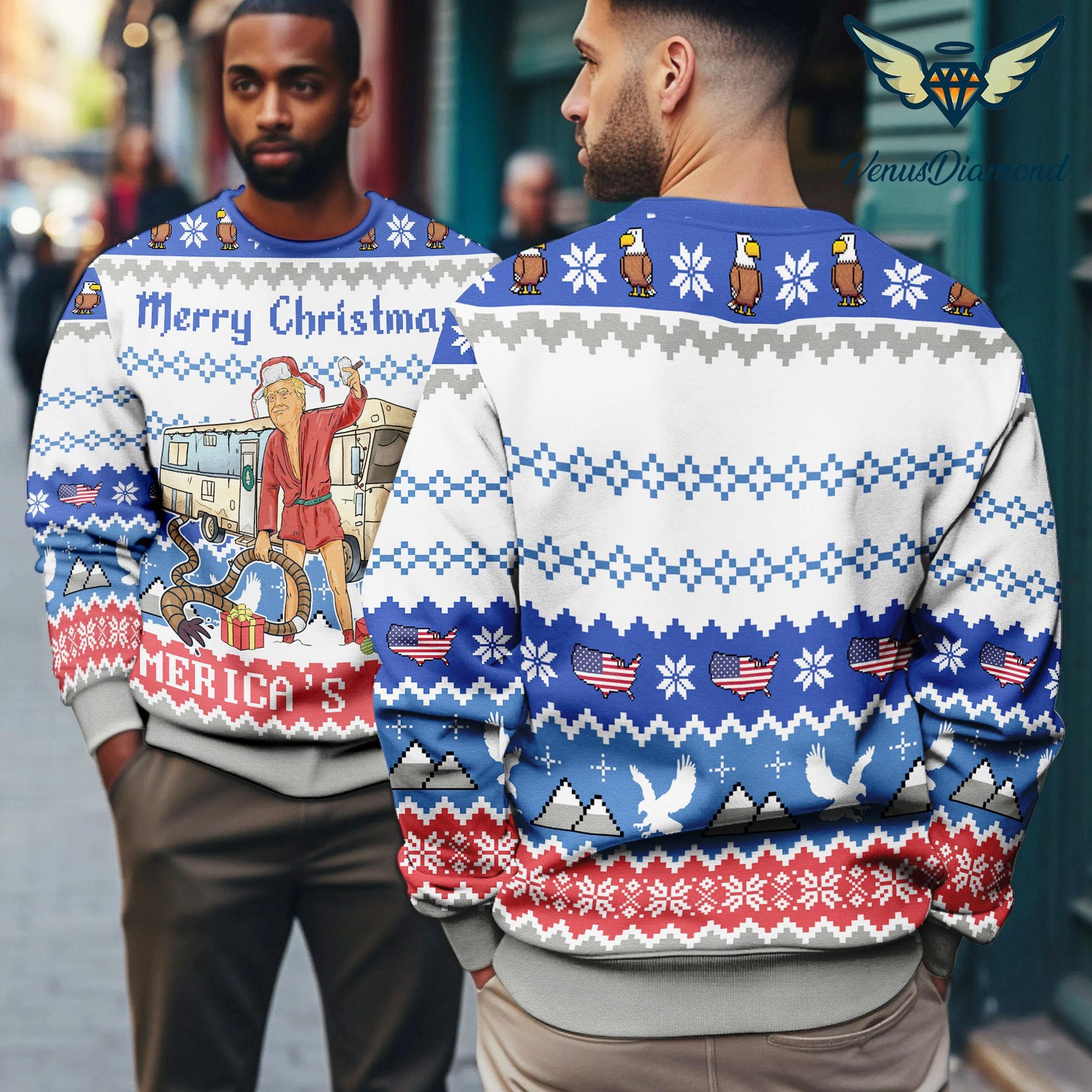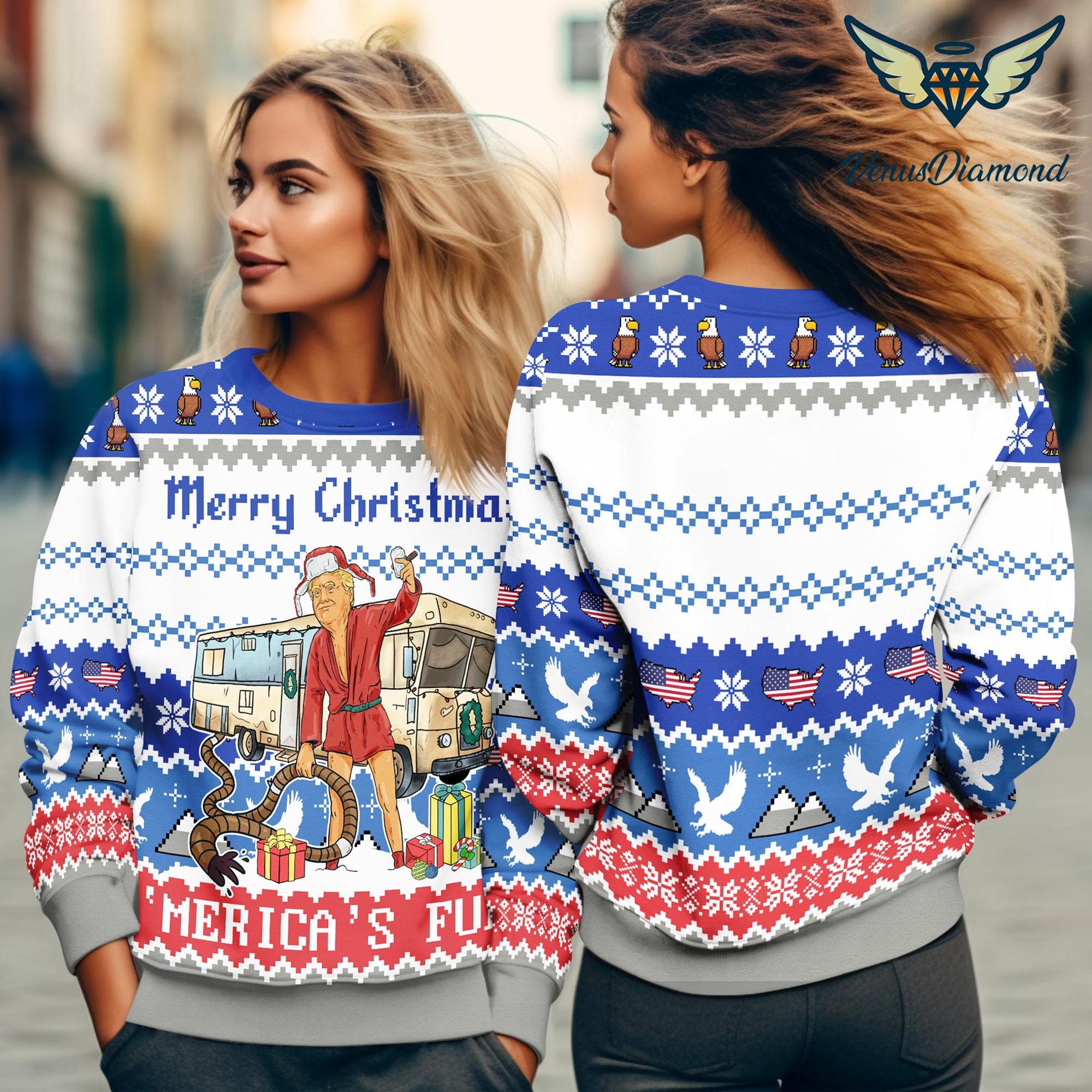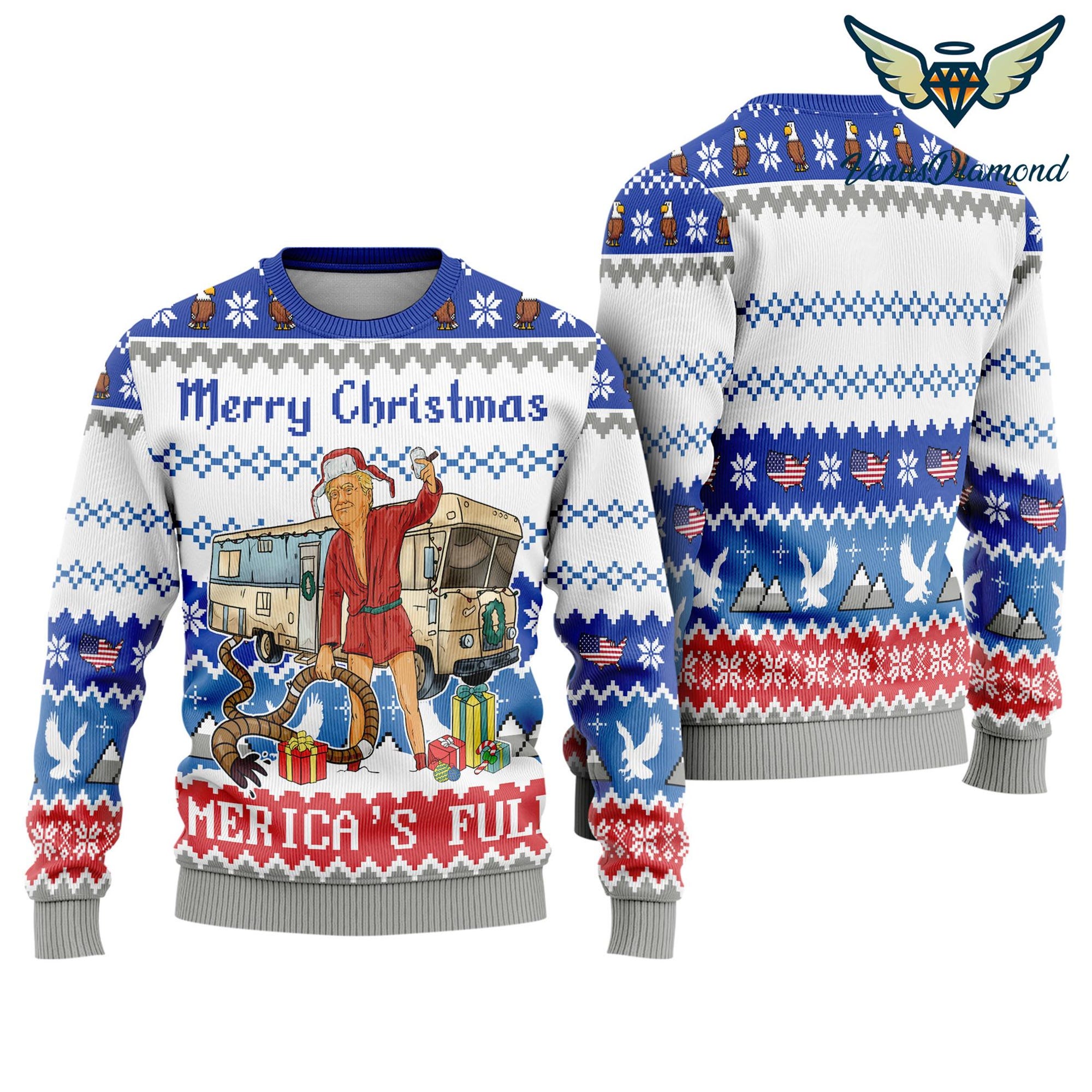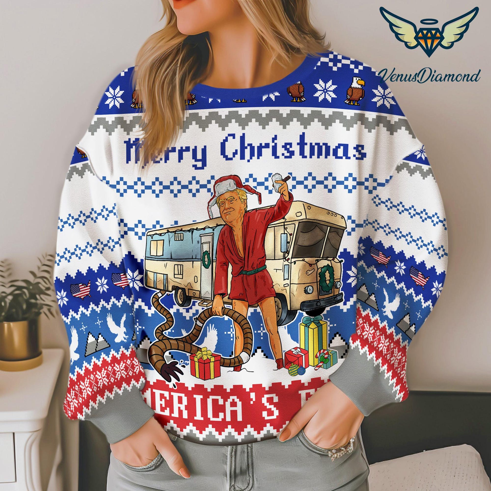 Trump Merry Christmas American’S Full Ugly Christmas Sweater, Trump Ugly Christmas Sweater, President Trump 2024, MAGA 2024 Ugly Sweater