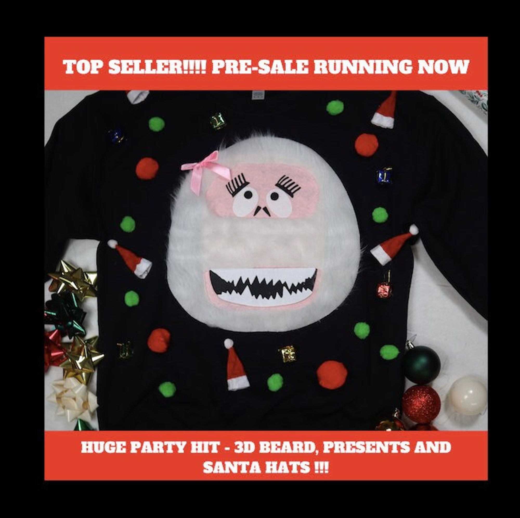 1. Original – The one that started it all years ago. Sweatshirt with the abominable snowman face, and 3D beard.