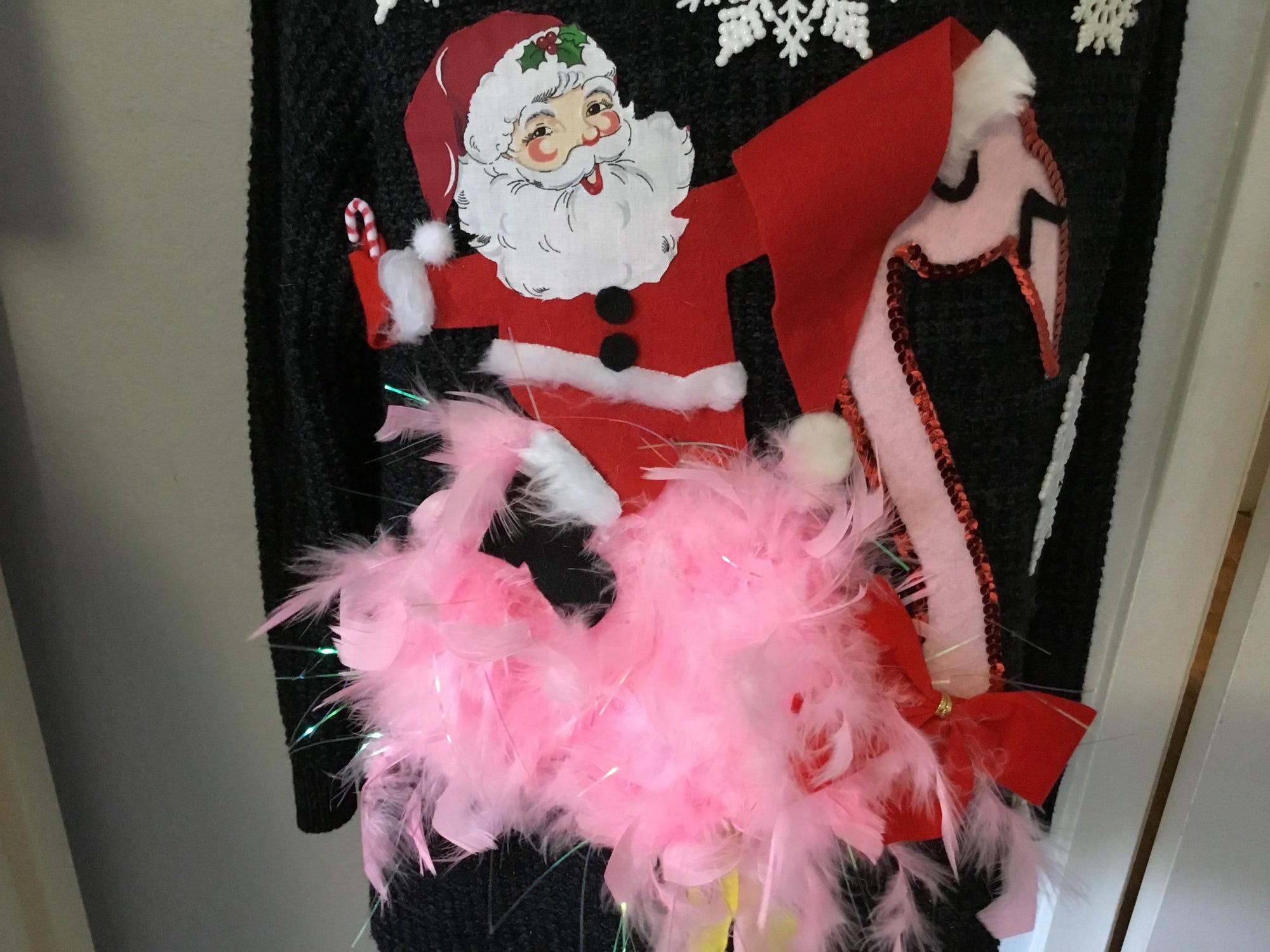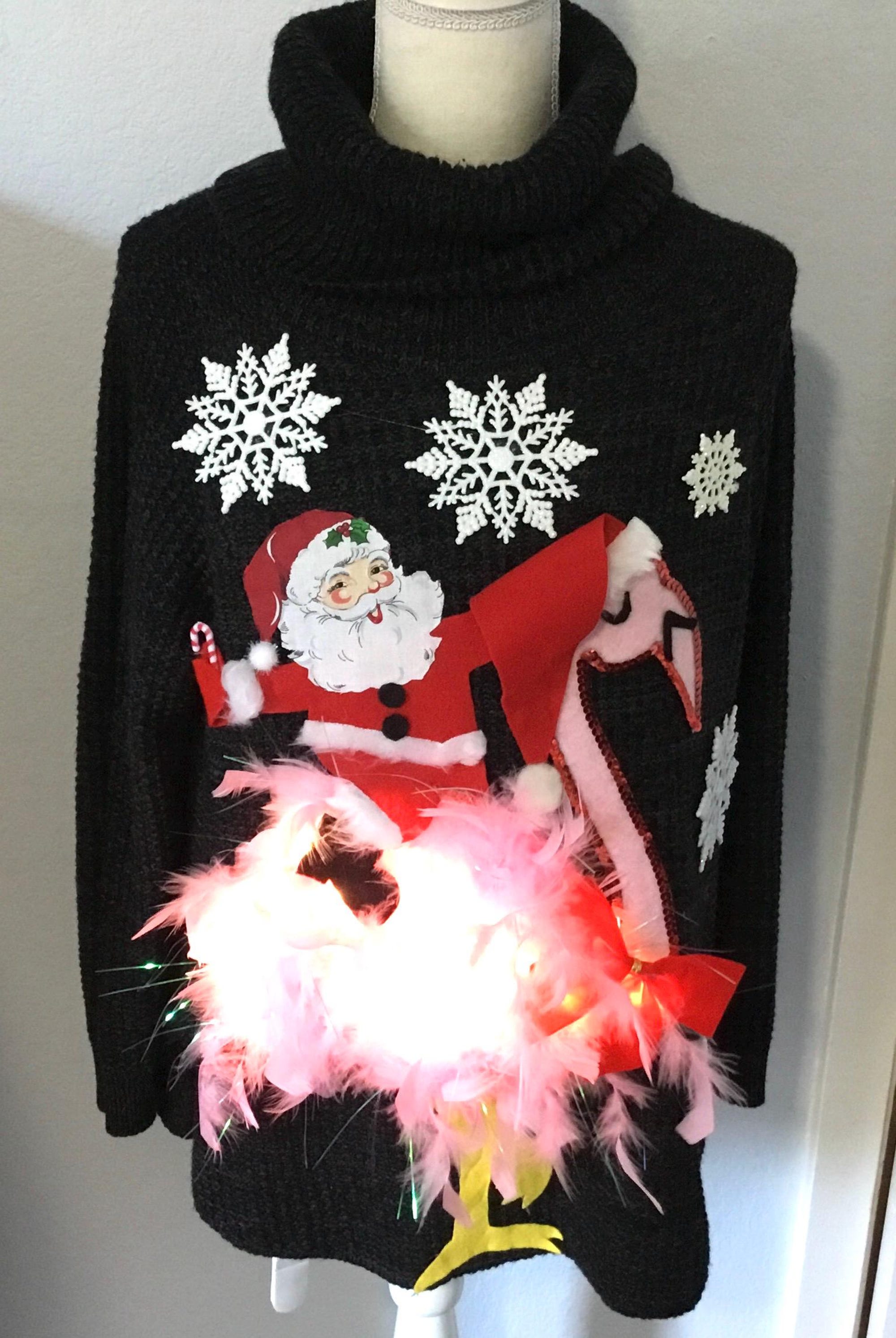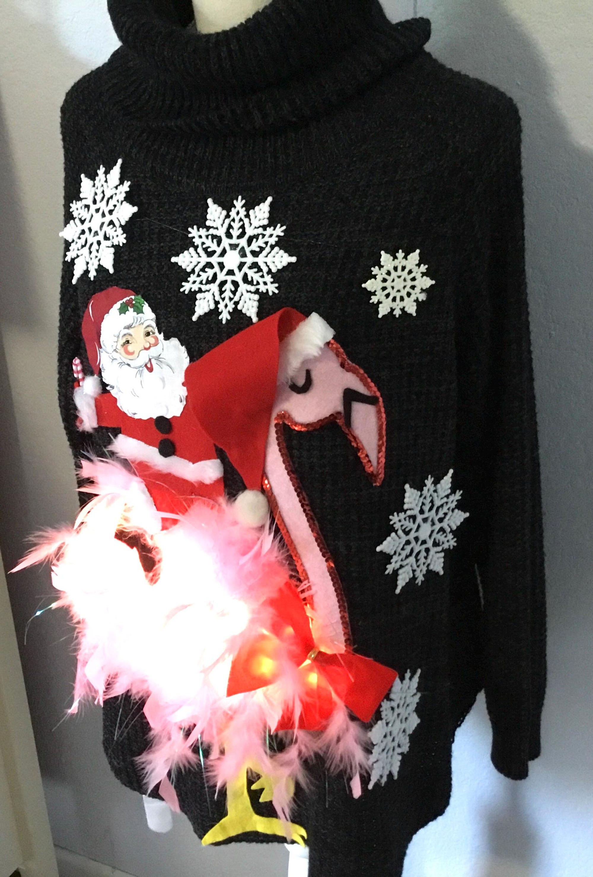 UGLY CHRISTMAS Sweater, Santa Riding a Flamingo, Lights Up, One of a Kind Winner! Women XL