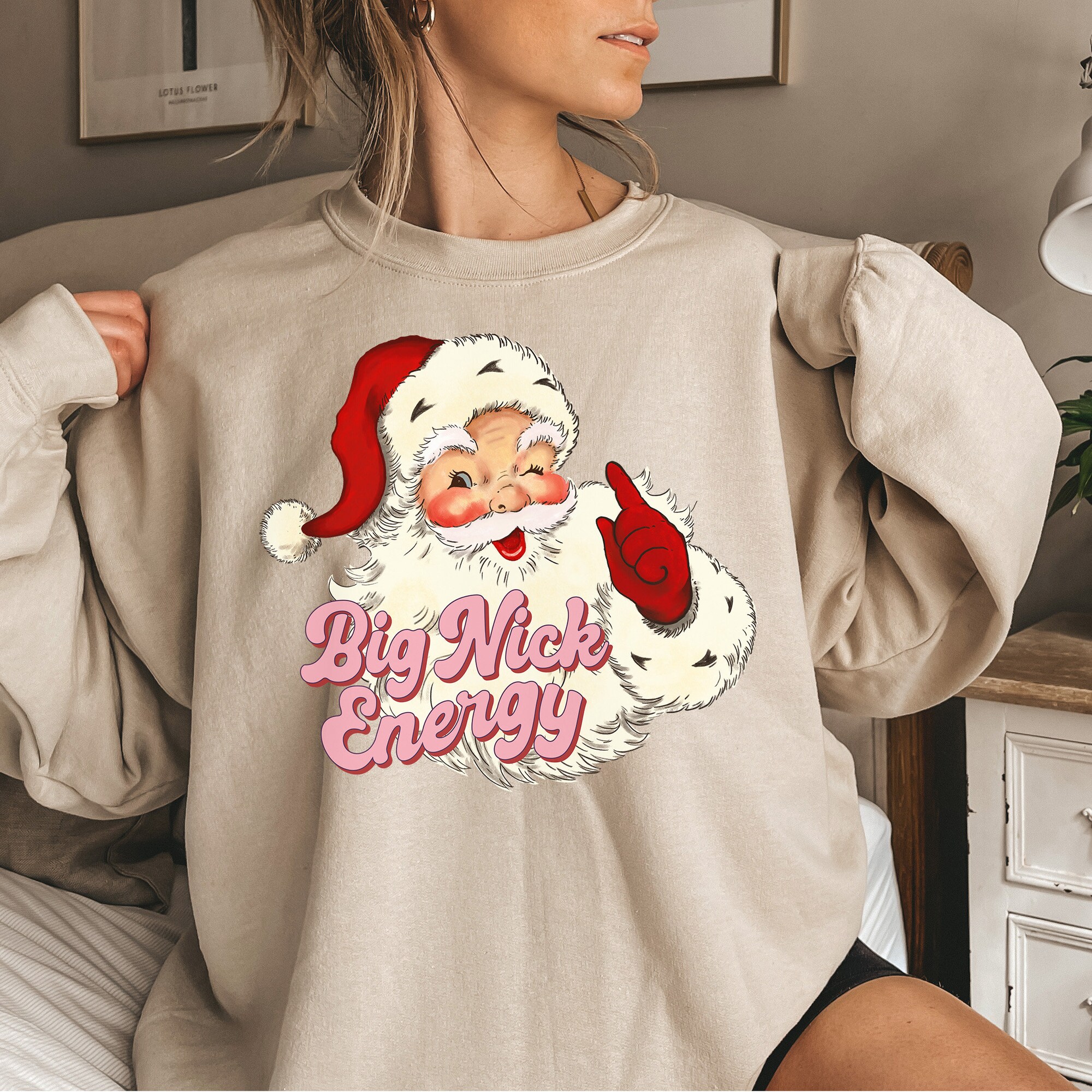 Unisex Big Nick Energy Funny Christmas Sweater, Ugly Christmas Sweater, Vintage Retro Santa