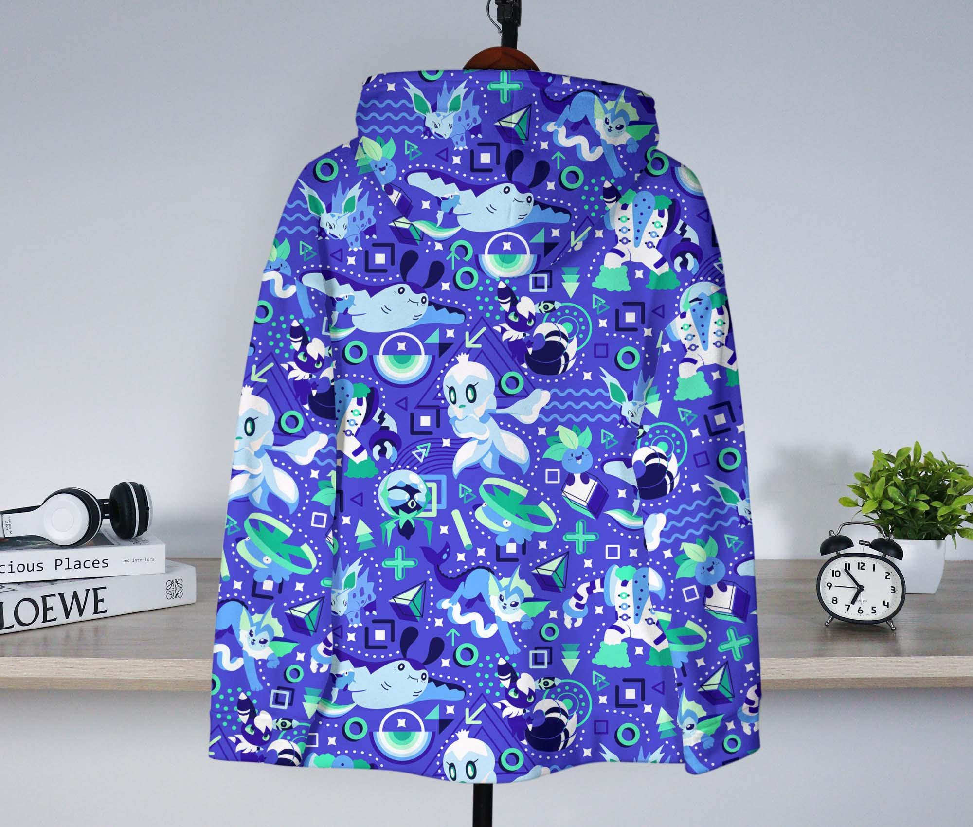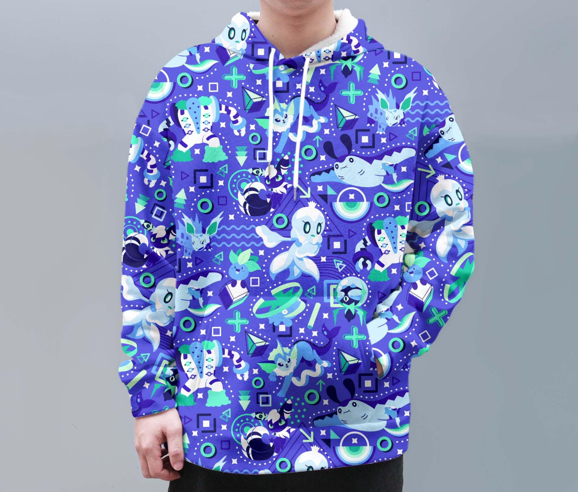 Dive into a dreamy ocean vibe with this adorable hoodie featuring Vaporeon and Mantyke in a playful! The bright, eye-catching print and charming character style make it a standout piece for fans of cute creature aesthetics and fantasy fashion.