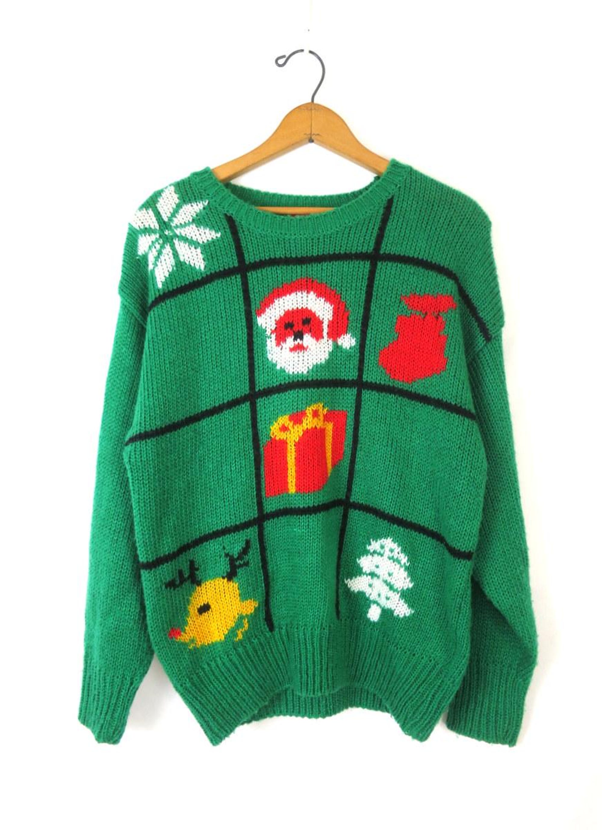 Vintage 1980s Ugly Christmas Sweater Green Novelty sweater Tacky Xmas Party Sweater Women’s Size Medium Large