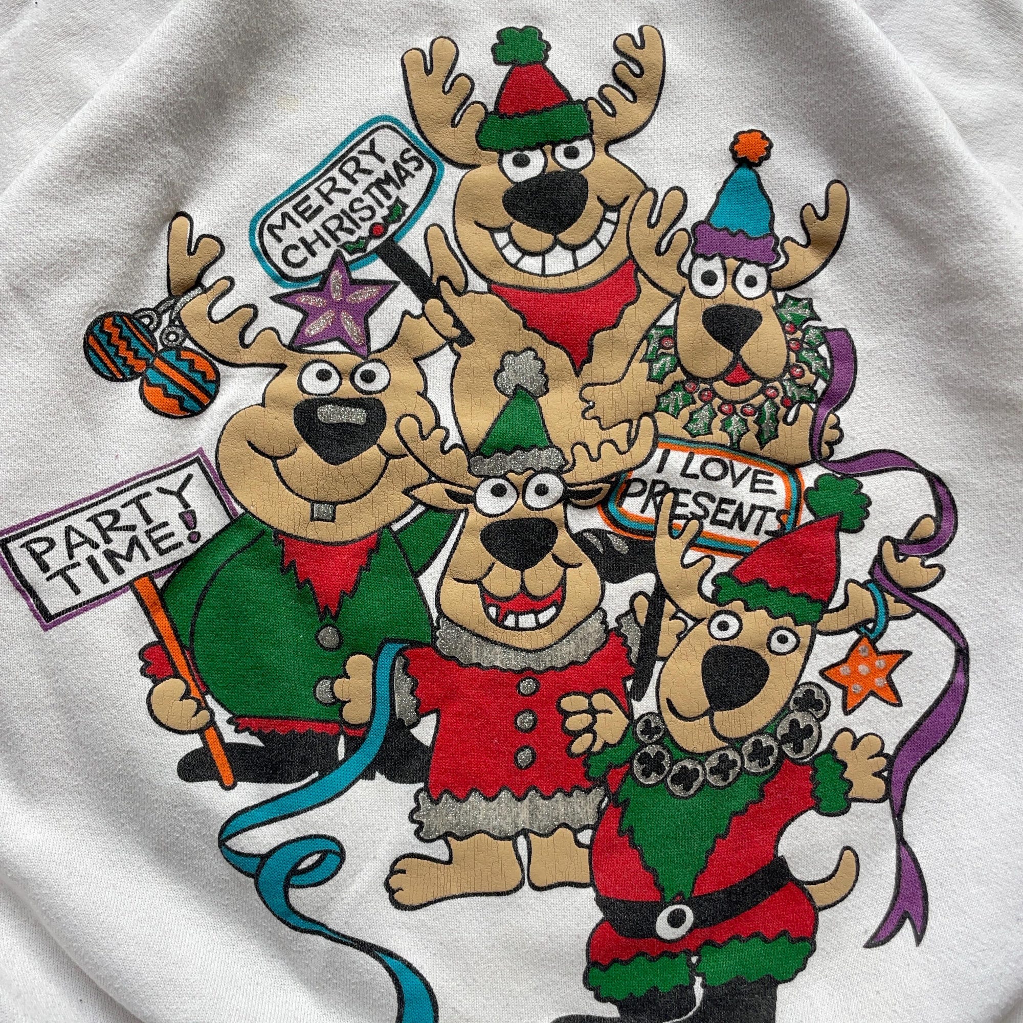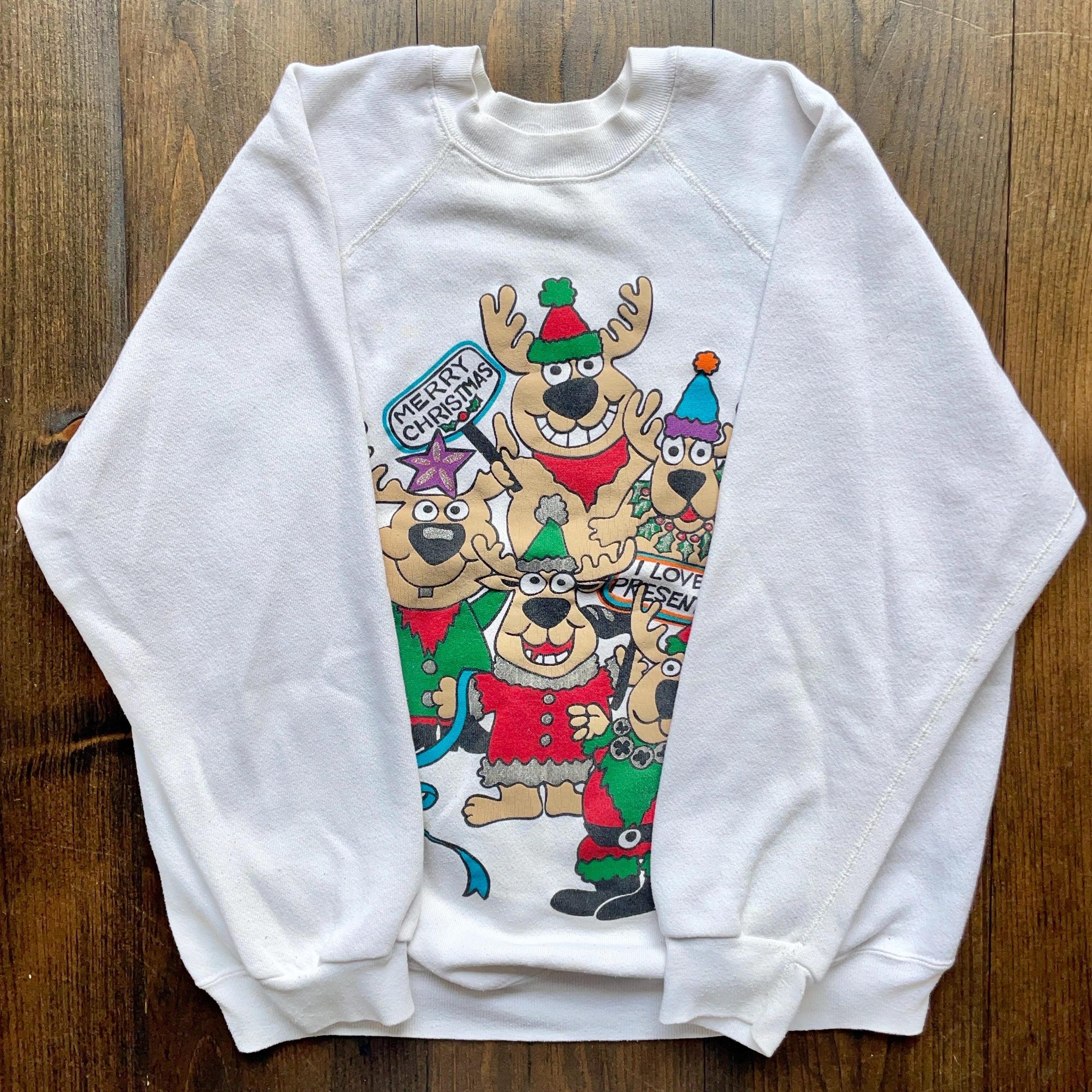 Vintage 1990s Cartoon Reindeer Christmas Crewneck Sweatshirt / made in USA / One Size (see measurements)