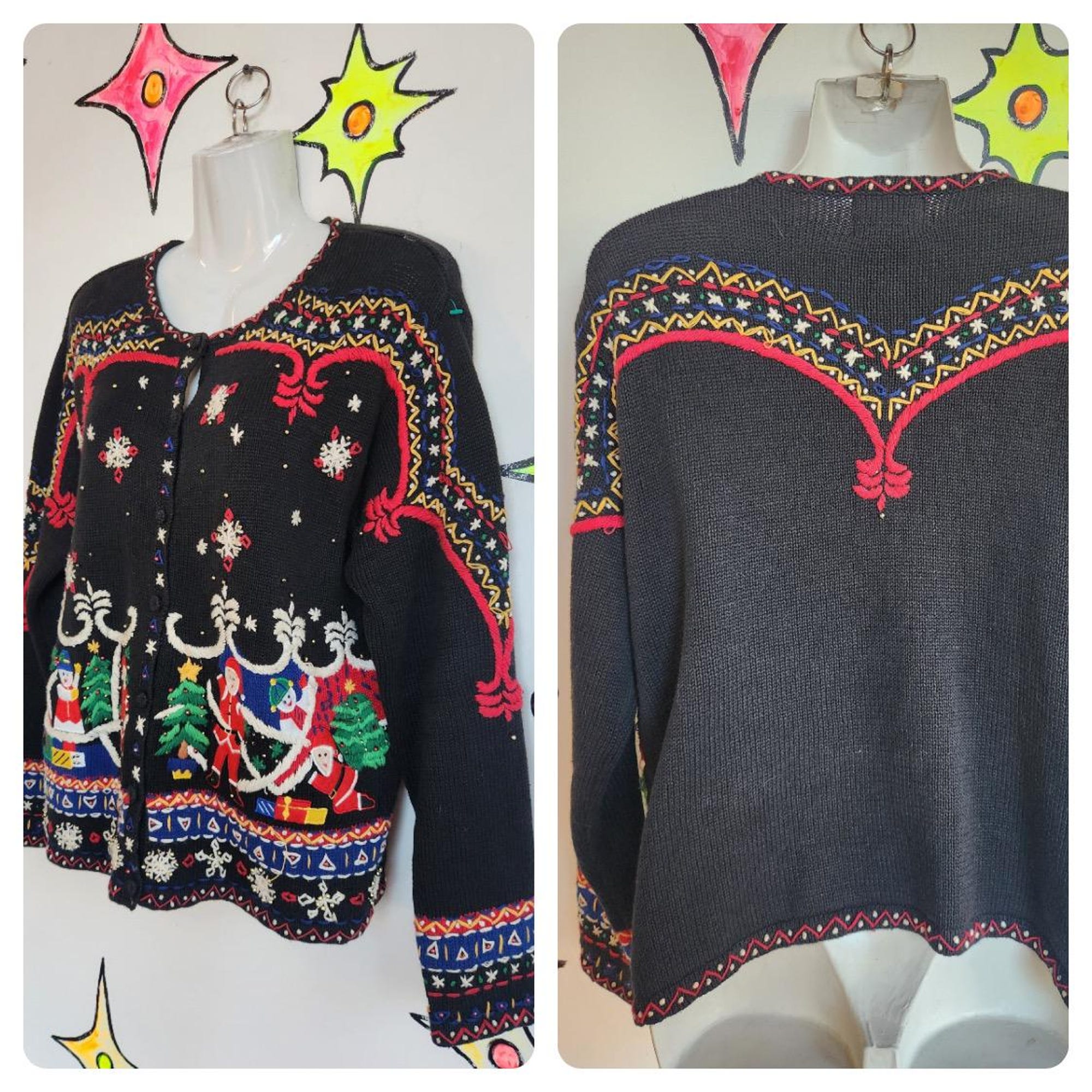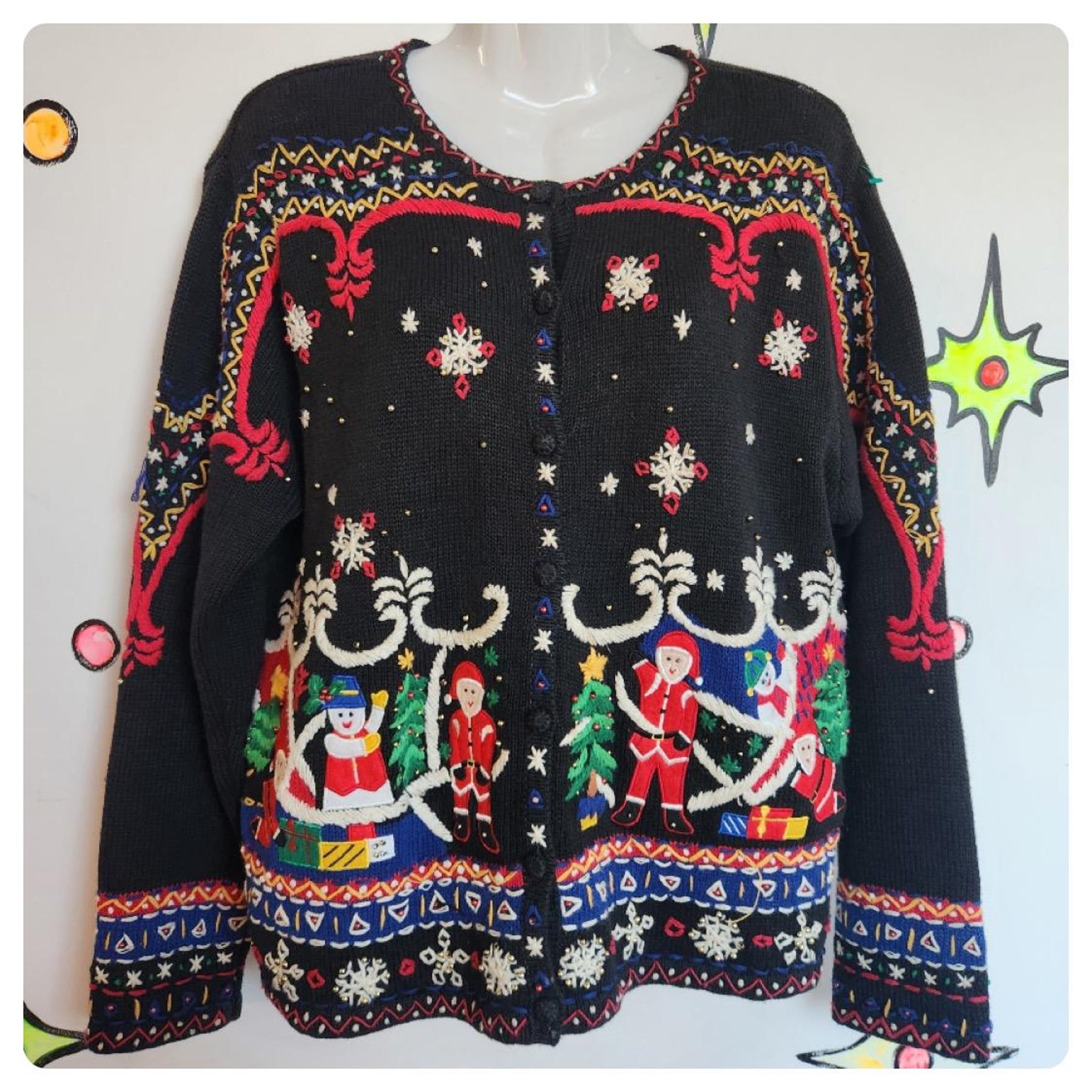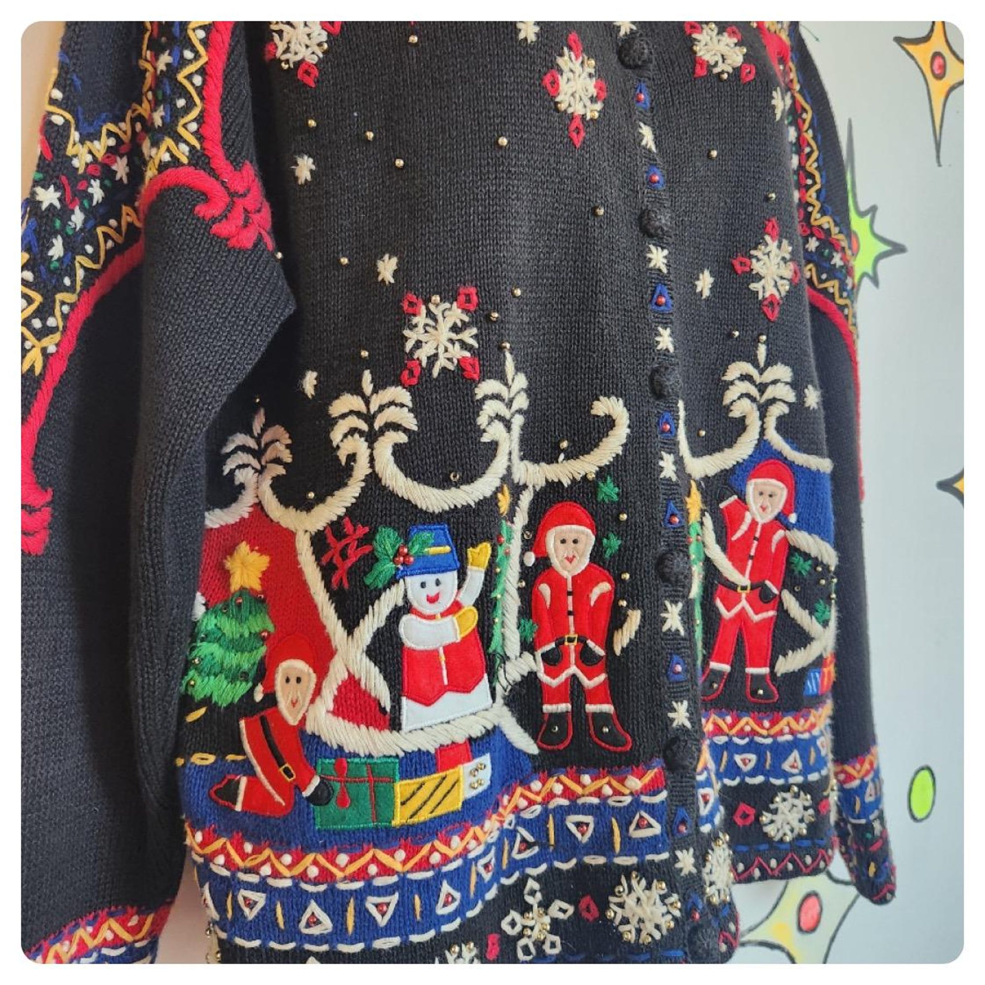 Vintage 90s | Santa Christmas Tree Tacky Ugly Embellished Christmas Sweater | M