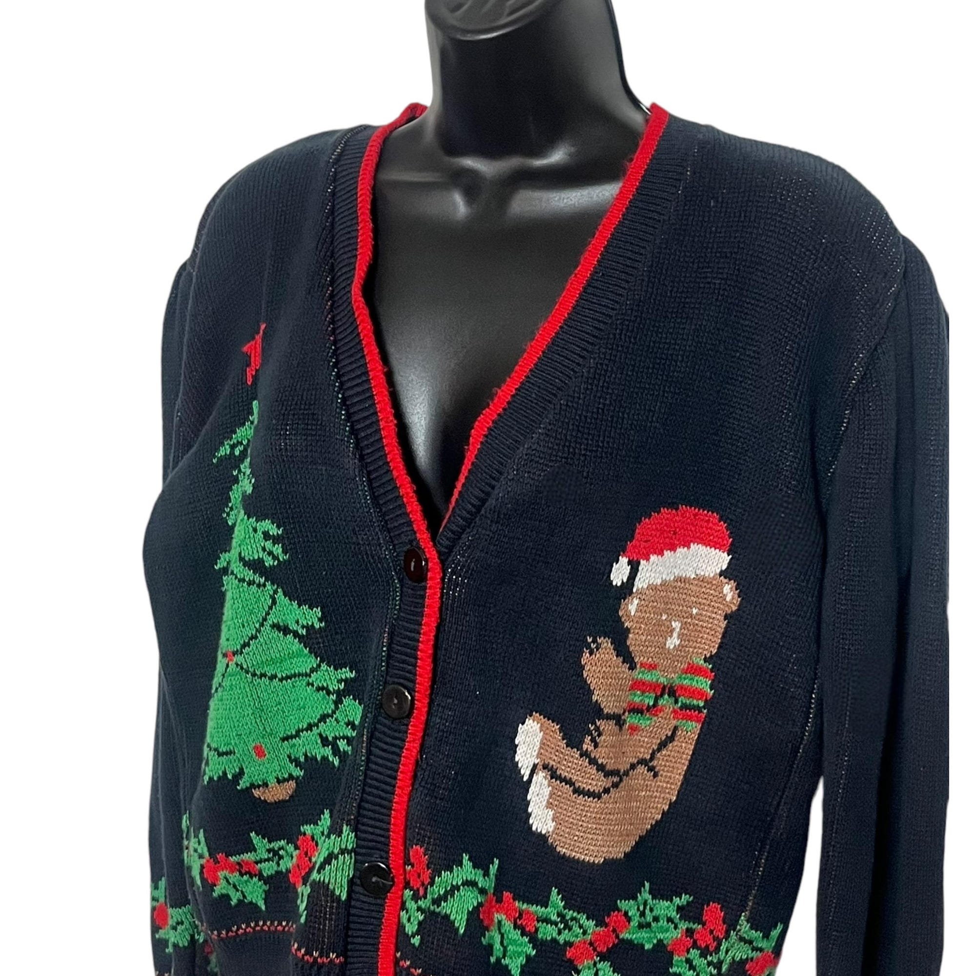 Vintage Christmas Teddy Bear Cardigan: 1990s Novelty Sweater Sz M