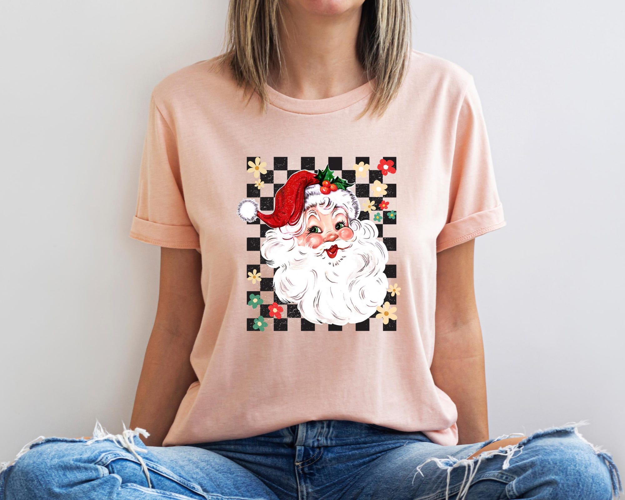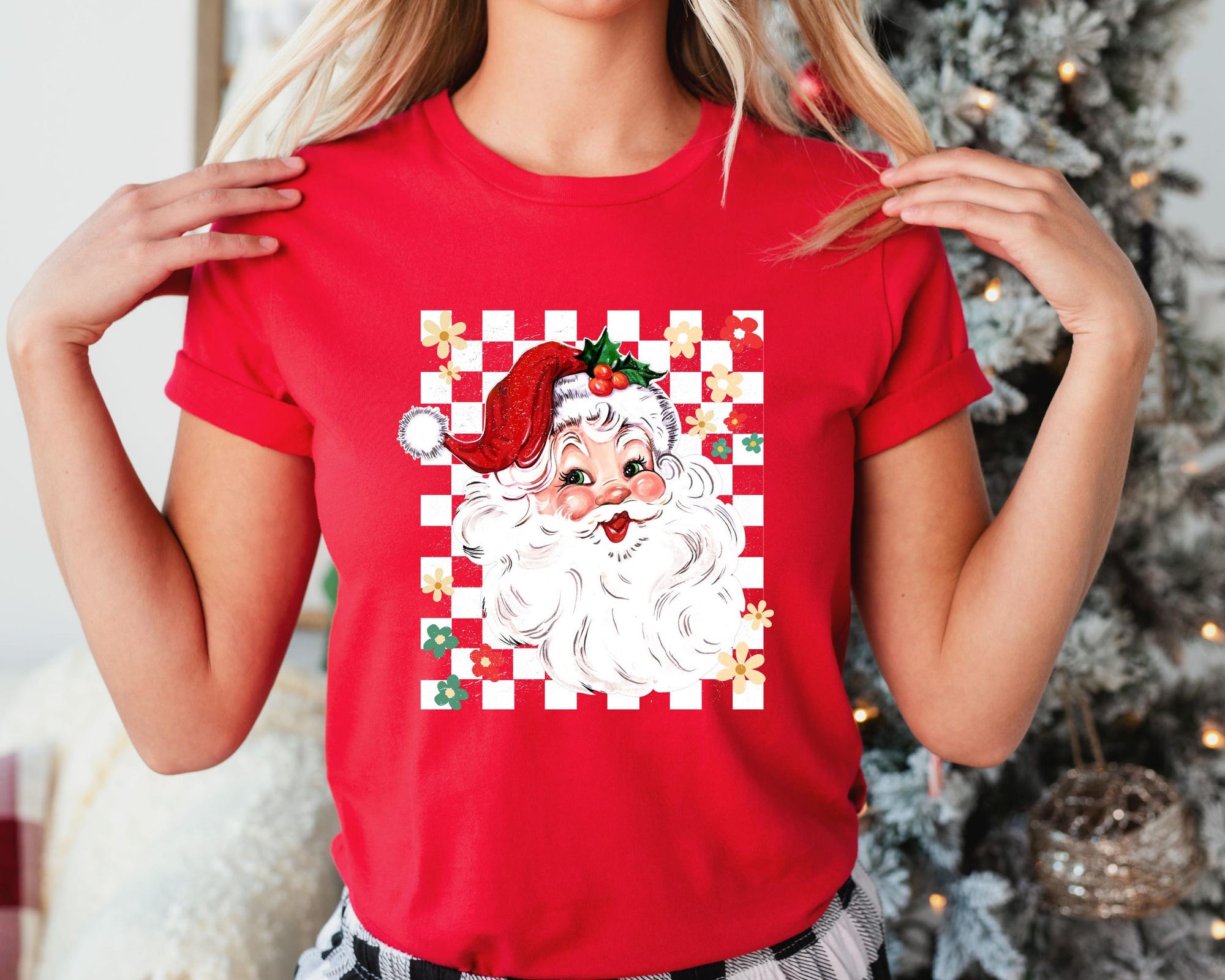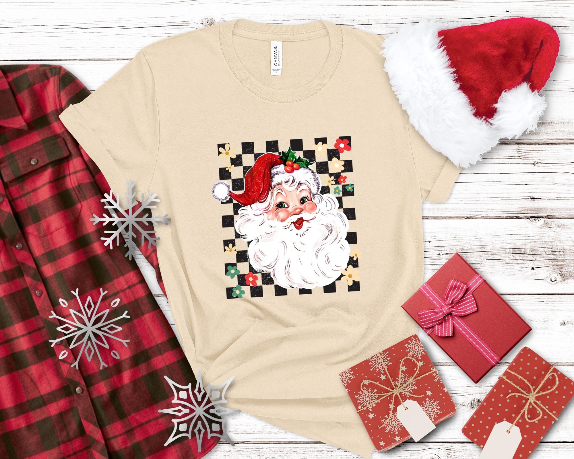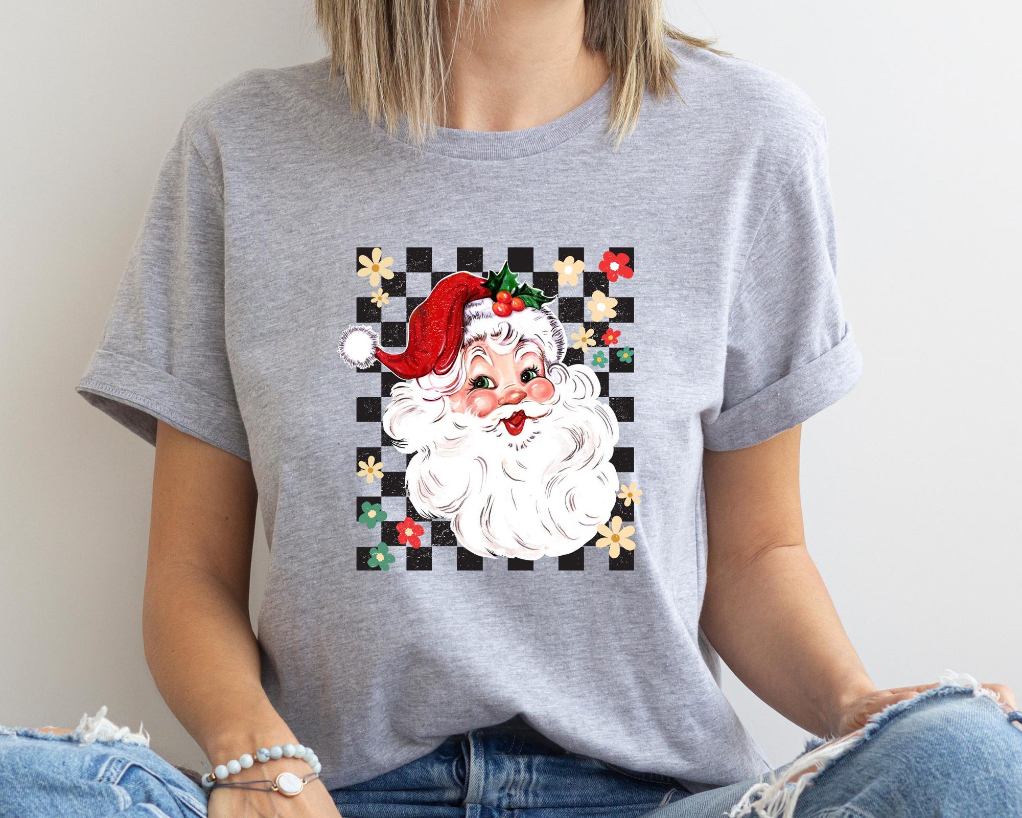Vintage Santa Claus Shirt: Checkered Christmas Family Tee