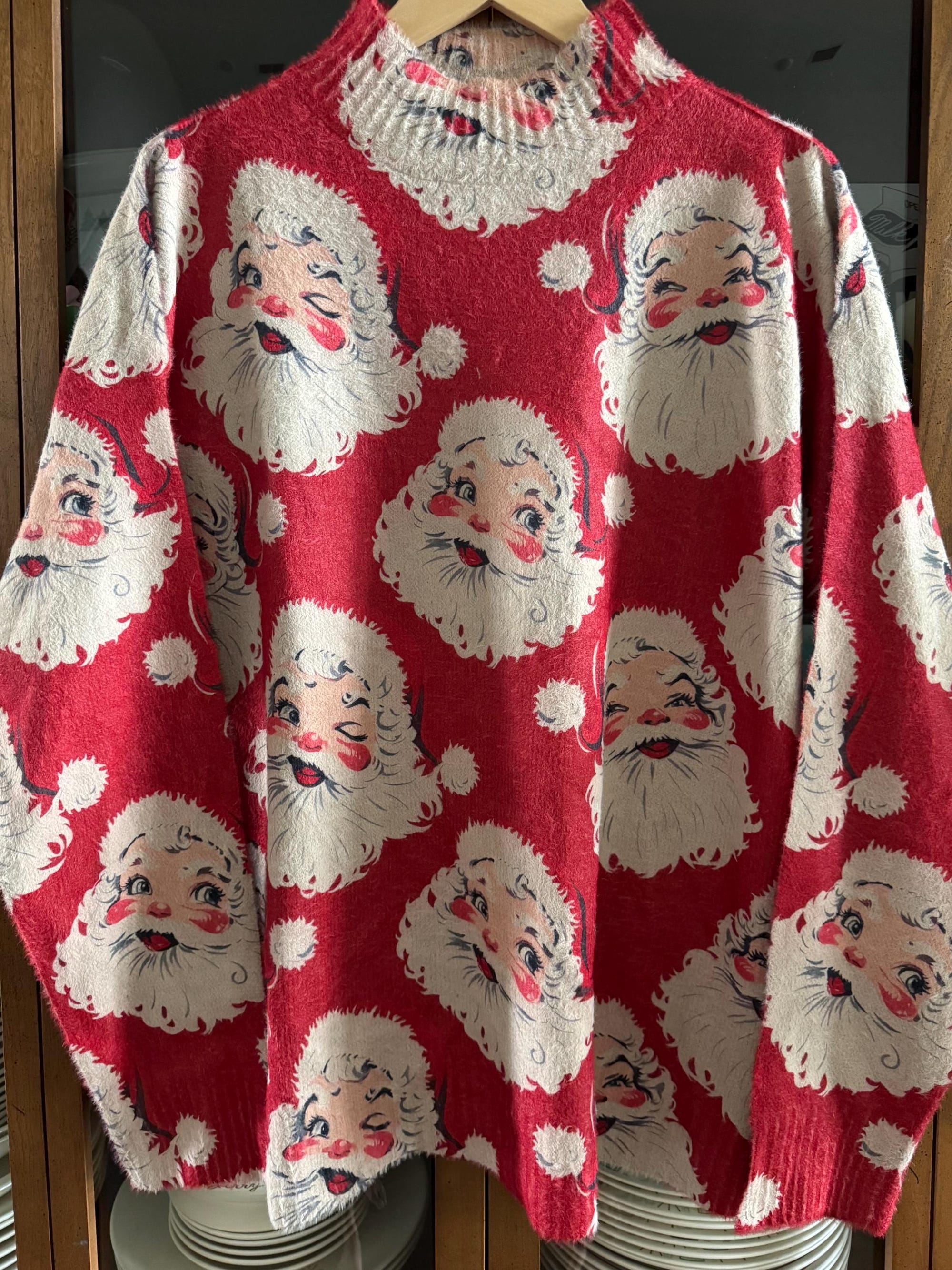 Vintage Santa Sweater / Vintage Christmas Clothing / Plus Size